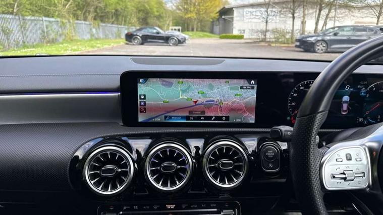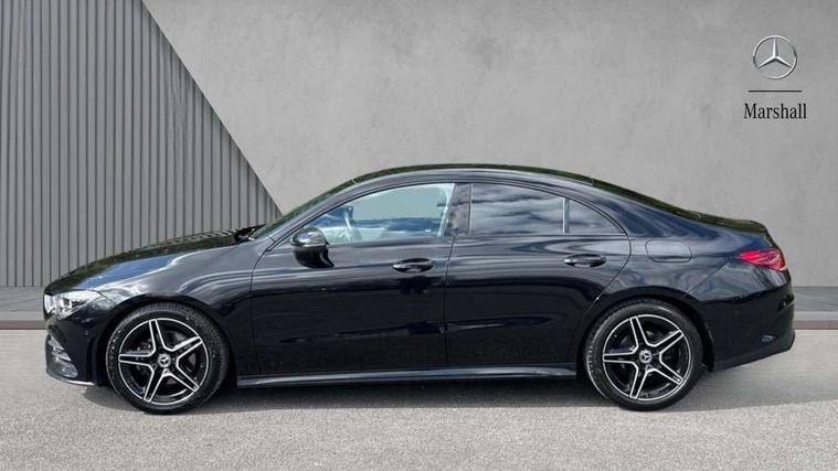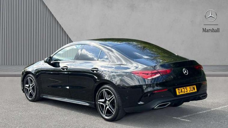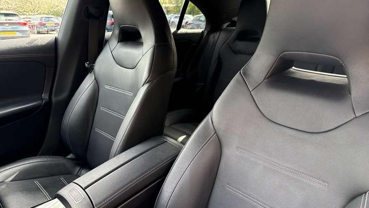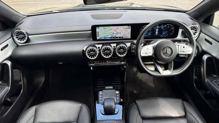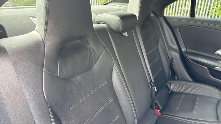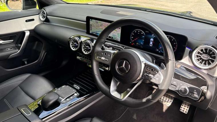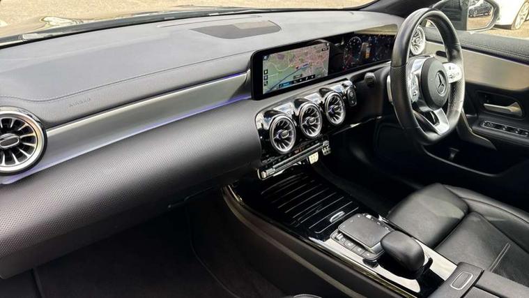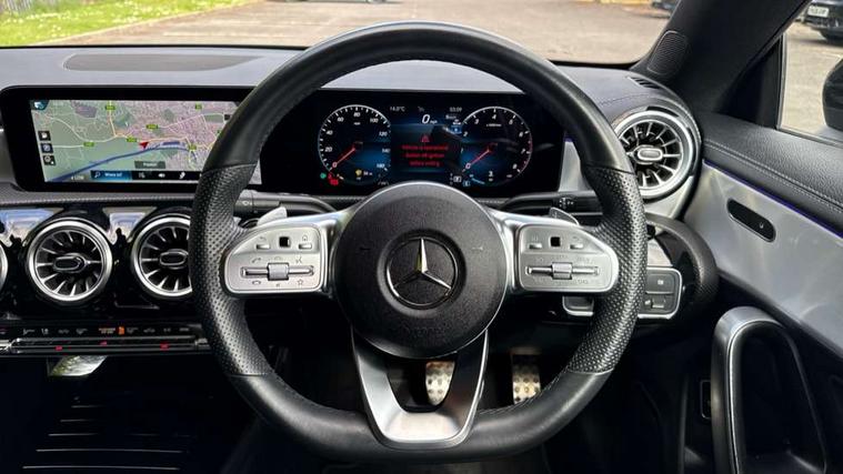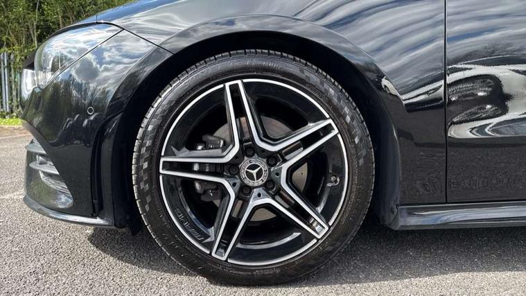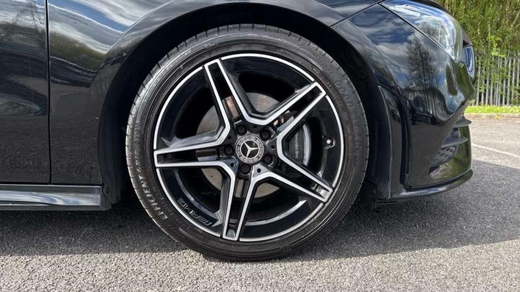 10.25 inch Instrument display with digital cockpit, 10.25 inch touchscreen central media display, Active lane keeping assist, Attention assist - Monitors steering behaviour and long journey fatigue, Bluetooth connection, Car wash mode, Cruise control with limiter, Direct steer system with speed sensitive power steering, DYNAMIC SELECT with a choice of driving modes (ECO, Comfort, Sport and Individual), ECO start/stop function, Fluid level warning indicator for fuel, oil, coolant and washer fluid, Hard-disk navigation, Hey Mercedes Voice activation, Lamp failure indicator, Mercedes me connect including emergency call system, accident recovery, breakdown and maintenance management, Mercedes me remote services, Outside temperature gauge, Owners manual and service booklet in English, Pre-installation of private car share, Preinstallation for Mercedes Benz link, Radio aerial integrated into front and rear windshields, Service indicator (ASSYST), Smartphone integration with Apple CarPlay and Android auto, Speed limit assist, Trip computer in multifunction display with current consumption indicator, Lowered comfort suspension, Rear axle multi-link, DAB digital radio tuner, MBUX multimedia system, Mercedes Benz sound system (100 W) with 6 speakers, USB (type C) ports (2) in stowage compartment and 1 in front of centre console, Adaptive brake lights, AMG body styling with AMG front apron and rear apron and visible exhaust tailpipe in chrome trim elements, AMG bodystyling side skirts, Body colour bumpers, Body colour door handles, Chrome beltline strips, Diamond radiator grille pins in chrome, Electric windows, Electrically adjustable and heated door mirrors with integrated LED indicators, Exhaust system with 2 Visible tailpipe trim elements and rear apron with trim in chrome, Headlamp assist automatic headlamp activation, Heated glass rear windscreen + timer control, High level LED third brake light, Interior mirror with black reading lamps and frameless, LED high performance headlamps with integrated LED daytime running lights, LED tail lamp, Privacy glass with dark tinting on rear side windows and rear window, Rain sensing windscreen wipers with two sensitivity settings, Rear boot, Rear fog lamp, Rear side wing doors, Variable front intermittent wipers, Window line trim strip in chrome, 3 seat bench in 2nd row, 3 spoke flattened bottom nappa leather multifunction steering wheel with perforated leather in grip area, 40:20:40 split folding rear seat backrests, Air condition air vents with surround in silver chrome, Air conditioning - Two zone thermotronic luxury automatic climate control with display, Artico man-made leather upholstery, Automatic child seat recognition sensor, Black roof lining, Brushed stainless steel sports pedals with rubber studs, Floor mats with stitched AMG lettering, Front centre armrest with stowage, Front door sills with Mercedes Benz lettering, Galvanished gear shift paddles on steering wheel, Heated front seats, Illuminated glove compartment stowage, Interior lighting - 64 colour Ambient lighting, Luggage net on driver/front passenger seat backrest, Manually adjustable front seats, Manually height and reach adjustable steering column, Rear head restraints, Single front passenger seat, Sport seats with fixed head restraints, Stowage compartment in centre console with retractable cover, Sunvisors with illuminated vanity mirrors, Touchpad on center console, Twin front cupholders, Two outer rear seat isofix and top tether child seat fixing points, Light and sight pack - CLA, Mirror pack - CLA, Night package - CLA, Parking package - CLA, Seat comfort pack - CLA, Active bonnet pedestrain safety measure which detects an impact and raises bonnet by 65mm, Active brake assist includes forward collision warning system with autonomous braking, Adaptive brake assist with hold function and hill start assist, Anti lock braking system (ABS) with brake assist, Black seat belts, Bonnet with power domes, Brake pad wear warning indicator, Childproof locks manually operated for rear doors and electrically operated for rear power windows, Crash responsive emergency lighting, Driver and front passenger head and sidebags, Driver and front passenger windowbags, Drivers knee airbag, Dual stage driver and front passenger airbags, Electric parking brake, Electronic stability programme with acceleration skid control, ESP curve dynamic assist, Front and rear seatbelt reminder, Front passenger seat occupancy sensor, Three point rear seat belts, Tyre pressure monitoring system, Warning triangle and first aid kit, Guard 360 degree guard vehicle protection system with immobiliser and interior protection, Keyless Go starting function, Remote central locking and crash sensor with emergency opening function, Light aluminium with longitudinal grain interior trim, 18" AMG 5 twin spoke light alloy wheels painted in black with high sheen finish, Summer tyres, Tirefit tyre sealant kit,