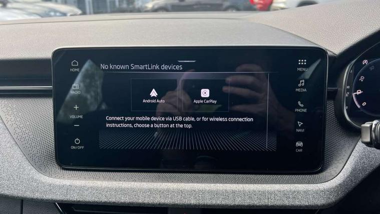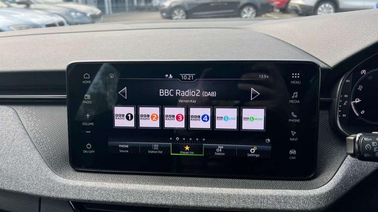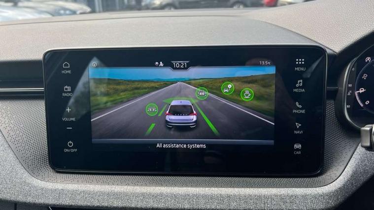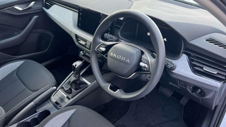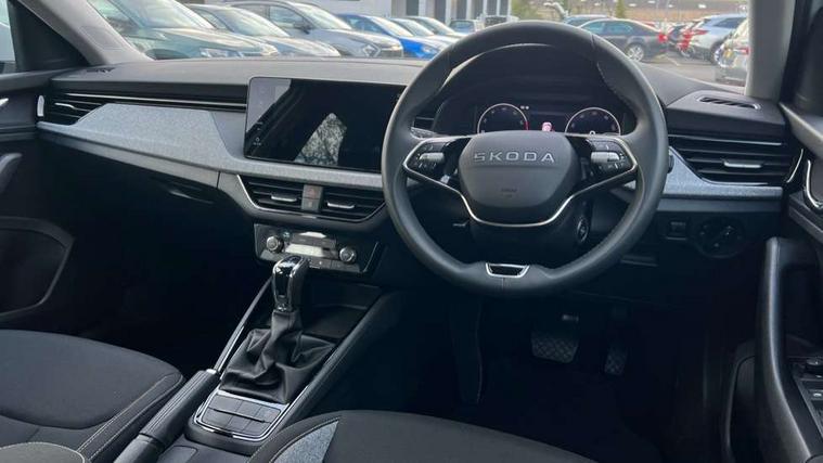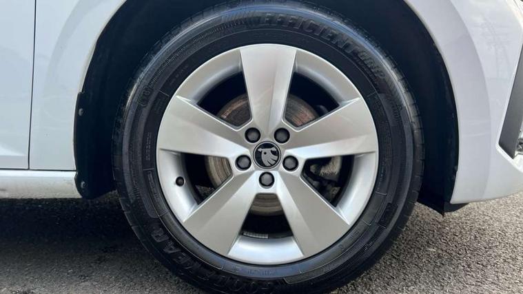 Advanced driver attention and drowsiness monitor, Bluetooth, e-Call (emergency call), Front assist system, PAS, Rear parking sensors, Rear view camera, Speed limiter, Tailgate, Traffic sign recognition, Virtual Cockpit - 10.25" digital display, Voice control system, Wireless smartlink, 4 USB C ports, 8 Speakers, 9.2" Skoda navigation display, DAB radio, Auto dimming rear view mirror, Automatic headlamp activation with Coming home and Leaving home feature, Automatic high/low beam, Body colour bumpers, Body colour door mirrors and handles, Chrome moulding around grille, Front and rear electric windows, Full LED headlights, Heated rear window, LED 3rd brake light, LED brake lights, LED daytime running lights, LED front turning lights, LED high beam, LED low beam, LED taillights, Rear LED fog light, Rear side wing doors, Rear wiper, Tinted windows, Unique dark chrome design logo on alloy wheels, 12V socket in luggage compartment, 3 seat bench in 2nd row, Black / Grey armrest stitching, Black hotstamping, Cargo elements, Chrome inner door handles, Door inserts in satin black, Driver and passenger sun visors with vanity mirror, Dual zone climate control, Front and rear roof lights, Front centre armrest, Front head restraints, Glasses storage in roof liner, Height adjustable driver seat, Height adjustable passenger seat, Ice scraper, Illuminated glove compartment, Inner circulation control with pollen filter, ISOFIX for front passenger seat, Isofix preparation for back seats, Leather gearknob and handbrake lever, Loft cloth upholstery, Luggage net under rear parcel shelf, Manual lumbar support for front seats, Net package and top tether hooks in boot space, Pearl grey ceiling, Pocket on the back of both front seats, incl. mobile phone pockets, Single front passenger seat, Skoda lettering on steering wheel, Textile floor mats, Third rear headrest, Ticket holder, Top tether for front passenger seat, Umbrella in driver's door, 3x3 point rear seatbelts, ABS, Child locks, Curtain airbags and front side airbags, Disc brakes, Driver and front passenger airbags, ESP, Hill hold control, Manual leather parking brake, One tone horn, Passenger airbag switch off function, Seatbelt reminder for driver and front passenger, Tyre pressure monitoring system, Anti theft alarm system with interior monitoring, backup horn and towing protection, Anti-theft wheel bolts, Remote central locking with 2 remote folding keys, SAFE function for remote central locking, Decord pad, door inserts Kota uni,