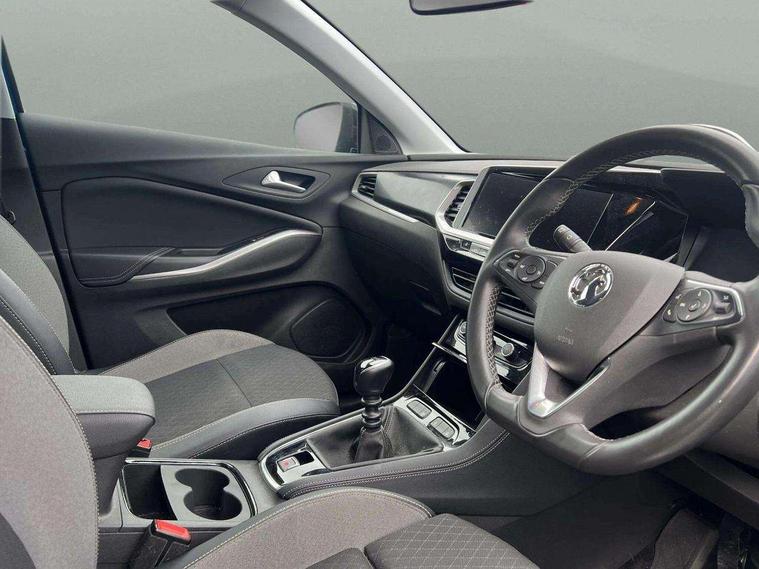 12" colour digital cluster, 180 degree rear view camera, Central facia display with digital clock, outside air temperature and audio information, Cruise control with speed limiter, Digital fuel gauge with low fuel level warning light, Digital rev counter, Digital speedometer, Digital water temperature gauge with warning light, Driver drowsiness alert system, Driver information - Total mileage, service indicator, oil life, Gearshift up/down indication light, Lane departure warning system, Lane keep assist, Lights on audible warning, Multi function trip computer - Trip odometer, vehicle range, average speed and fuel economy, instantaneous fuel economy and driving time, Multimedia navi pro with 10" colour touch+ sat nav+AM/FM/DAB radio, bluetooth audio streaming/mobile phone portal, Apple carplay/Android auto, USB, Speed sensitive electric power assisted steering, Speed sign recognition, Vauxhall connect including Ecall and connected services, Six speaker - four front + two rear, Steering wheel mounted audio/phone/cruise controls, 3rd brake light, Automatic lighting control, Automatically dimming anti dazzle rear view mirror, Black door mirrors, Black side window trim, Body colour door handles, Carbon black door claddings, Collapsible windscreen wipers, Dark tinted rear side and tailgate windows, Door mirror puddle light, Door to door illumination, Electrically operated front and rear windows with safety auto reverse and one touch up/down facility, Front/rear bumper and wheel arches in carbon black exterior color, GRANDLAND Carline name badge in - High gloss black, Hazard warning lights, Heated rear screen with timed cut off, High beam assist, High gloss black protective front and rear skid plates with C shape bumper inserts, High gloss black roof rails, High level centre rear brake light, Intermittent rear window wash/wipe, LED daytime running lights, LED Headlights, LED tail lights, Manual headlight beam levelling, Rain sensor windscreen wipers, Rear side wing doors, Rear spoiler, Reversing light, Shark fin aerial, Side protection mouldings, Side window demist vents, Soundproof insulated windscreen, Tinted windows, Twin electrically adjustable and heated power door mirrors (wide-angle on drivers side) with automatic timed cut-off, Upper and lower bumper design, Vauxhall brand griffin badge in front and rear in high gloss black, Vauxhall plate door sill cover, Vizor front grille, Welcome lighting, Windscreen demist vents, 12V electrical accessory socket in front, 3 bench rear seats in 2nd row, 3 spoke flat bottom leather steering wheel with satin chrome effect bezel, 4 way electric driver lumbar support, 4 way manual adjustable driver seats with height, reach and backrest, 60/40 split folding rear seat, Advanced predictive logic control system using a sun sensor, Ambient centre console downlighter, Anti submarining ramps in front seats, Automatic air direction and fan speed with manual override, Black premium leather-effect side bolsters, Charcoal filter, Chrome effect interior door handles, Cosmo 1 Harlekin curitiba seats, Covered storage compartment in centre console and in driver armrest, Driver ergonomic active front seat, Driver's centre armrest, Dual zone electronic climate control, Four adjustable facia vents, Front door pockets with 2.6 litre capacity, Front passenger seat, Front passenger seat cushion extension, Front passenger sport style seat, Fully carpeted luggage area, Grey headliner, Height adjustable headrests, Illuminated controls, Illuminated driver/passenger sunvisors with vanity mirror, Illuminated luggage area + Ambient lighting in front doors, Interior courtesy light operated by door switches, ISOFIX on front passenger and rear outer seats, Luggage compartment cover, Reach + rake adjustable steering column, Rear centre seat head restraint, Rear door pockets with 1.8 litre capacity, Rear passenger compartment heating ducts, Rear reading lights, Two drinks holders in centre console, Ventilated glovebox with lid, 6 Airbags - Driver and passengers front airbag, two front side impact airbag, full size curtain airbags for driver, Anti-lock braking system (ABS), Automatic emergency braking system, Child proof locks on rear doors, CSC - Cornering stability control, Deactivation switch for front passenger front and side impact airbags, Deflation detection system, Deformation zones front and rear, Dual seatbelt pretensioners on front seats, EBD - Electronic brakeforce distribution, Electronic parking brake, Electronic stability program (ESP) including traction control, Energy absorbing steering column, Engine drag torque control, Hill start assist, Hydraulic Brake Assist (HBA), Inertia reel lap and diagonal seatbelts for all seats, Load limiters on outer rear seatbelt retractors, Rear restraint seat belt pretensioner, Reinforced passenger safety cell, Side impact protection beam, Smart seatbelt reminder for front and rear seats, Tyre pressure monitoring system, Deadlocking system, Electronically protected audio equipment, Engine deadlock immobiliser, Freewheeling door locks, Key left in ignition audible warning, Locking wheel nuts, One rigid one flap-key coloured, Remote control central locking activation switch on driver door, Remote control primary foldable and additional foldable key, Remote security alarm system, Self powered alarm horn, Single horn, Theft deterent body security content and electircal child lock system, Theft deterent electrical, Visible vehicle identification number, Black door panels with black premium leather effect inserts, Dax decor facia panel with palladium medium finish, 18" 5 twin spoke high gloss black alloy wheels, Tyre inflation kit,