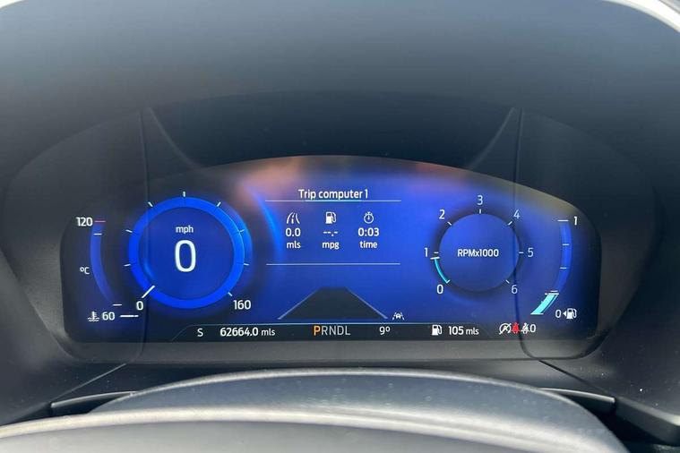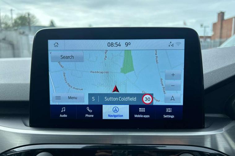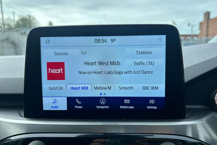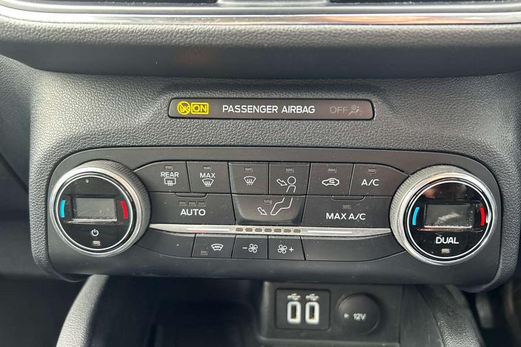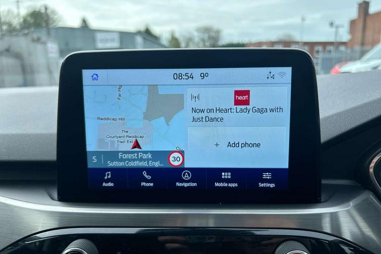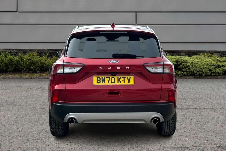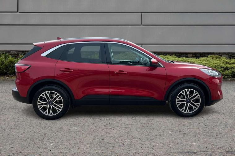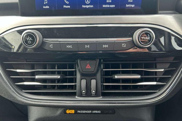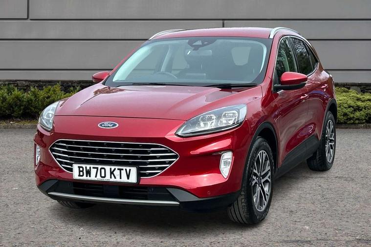 Ford easy fuel, Front and rear parking sensors, Hands free power tailgate, Lane keeping aid with lane departure warning, Mobile phone wireless charging pad, Power assist steering, Rear view camera, Selectable drive modes, Auto dimming rear view mirror, Auto headlamps with high and low beam, Auto wipers, Front LED fog lamps, Front scuff plate, Halogen Projector Headlamps, LED daytime running lights, LED rear lights, Power folding heated door mirrors with puddle lights, Power front/rear windows with global close, Privacy glass, Quickclear heated windscreen, Rear spoiler, Silver roof rails, Twin exhausts, 10 way power adjustable drivers seat, 2nd row sliding seats with 60:40 split, 8 way manual passenger seat including lumbar support and height adjust, Ambient lighting, Centre console with electronic parking brake, Dual electronic automatic temperature control, Front and rear floor mats, Front and rear head restraints, Leather steering wheel and gear knob, Rear charging point, Salerno partial leather upholstery, Sports seats, B&O with large instrument cluster pack - Kuga, 3x3 point rear seatbelts, Airbags - front driver/passenger, front and rear curtain, Drivers knee airbag, Electronic stability control (ESC) and ABS, Ford MyKey Gen 2 safety system, Manual child proof rear door locks, Post collision braking, Pre collision assist with autonomous emergency braking, Tyre pressure monitoring system, Engine immobiliser, Keyless entry, Keyless start with 'Ford Power' starter button, Locking wheel nuts, Remote powered central double locking doors, Thatcham category 1 alarm,