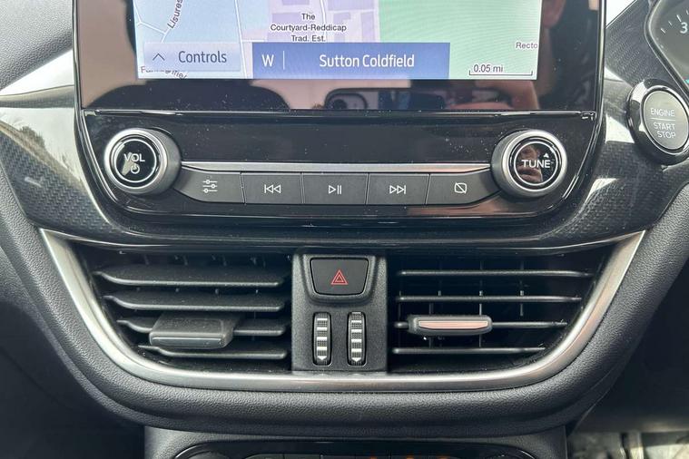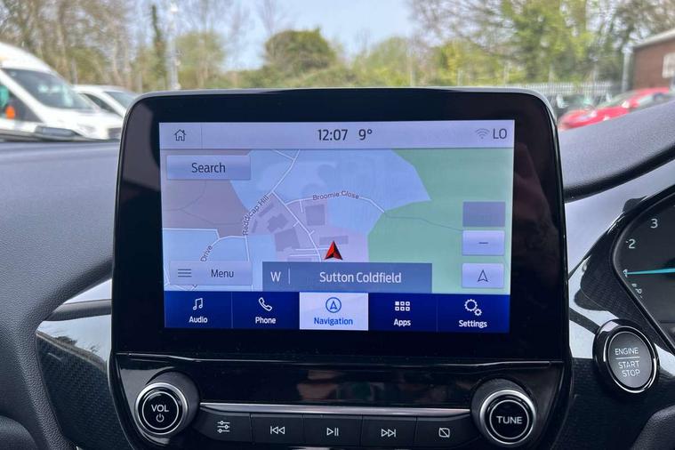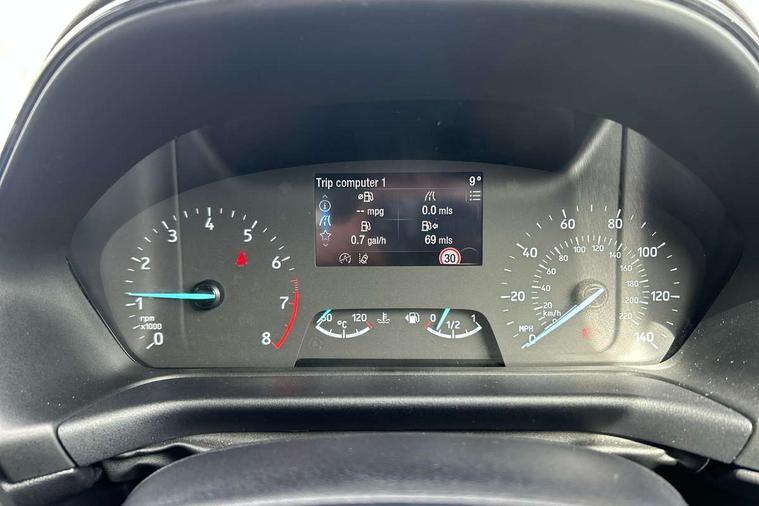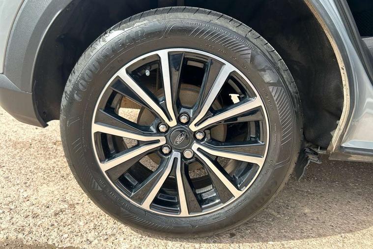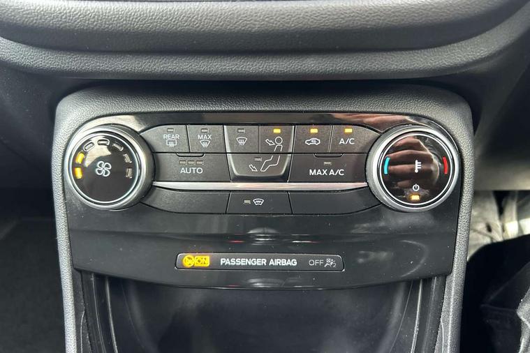 Driver impairment monitor, Emergency call service, Ford easy fuel, Lane keeping aid with lane departure warning, Power assist steering, Power start button, Rear parking sensor, Selectable drive modes(Normal, sport, Eco, trail, slippery), Speed sign recognition, Standard suspension, Automatic headlights with auto high beam, Automatic rain sensing wipers, Body colour rear spoiler, LED rear lamps, Power foldable heated door mirrors with puddle lamps, Projector headlamps with LED day time running lights and front fog lamps, Quickclear heated windscreen, Rear side wing doors, Rear wiper, Third brake light, 3 seat bench in 2nd row, Centre console with armrest and stowage, Electronic automatic temperature control (EATC), Ford megabox extended bootspace, Front and rear head restraints, Front floor mats, Manual 2 way passenger seat adjustment, Manual 4 way driver seat adjust with lumbar adjustment, Sensico leather steering wheel/gear knob/handbrake, Single front passenger seat, Titanium cloth upholstery, Ford SYNC 3 navigation pack - Puma, 3 rear seatbelts, Child safety lock, Electronic stability control (ESC) and hill start assist, Pedestrian/cyclist detection & post-collision braking, Pre collision assist system, Tyre pressure monitoring system (TPMS), Thatcham alarm, 17" 10 spoke absolute black machined finish alloy wheel,