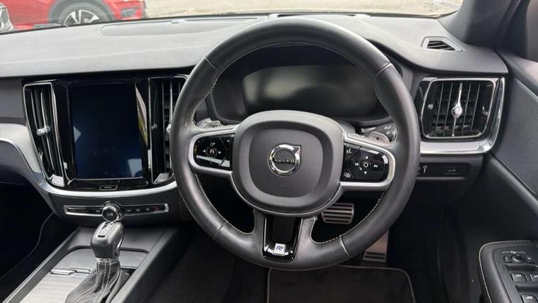 12.3" Active TFT crystal driver's information display, 9" centre console touch screen, Adjustable steering wheel force, Bluetooth handsfree system, Drive mode settings, Driver alert control with lane keeping aid, Hands free boot opening, Oncoming Lane Mitigation, Sensus navigation with European mapping and traffic information, Service interval indicator, Speed limiter, Speed sensitive steering, Trip computer, Voice activated control for key functions, Volvo on call, 8 speed automatic transmission with start/stop + manual change functions, Auxiliary input socket, DAB Radio (Digital Audio Broadcasting), Active high beam, Adaptive brake lights with high level LED brake lights, Auto dimming interior mirror, Automatic active bending LED headlights with adaptive shadow technology incorporating day running lights, Automatic headlight levelling system, Body colour bumpers, Colour coordinated auto folding and heated power door mirrors, Dual integrated exhaust pipes with high gloss black surround, Front and rear power windows, Front LED fog lights with cornering function, Headlight cleaning system, High gloss black door mirrors and window surround, High gloss black mesh front grille with silk metal surround, Home safe and approach lighting, Puddle lights, R Design tread plates, Rain sensor with automatic windscreen wiper activation, Rear diffuser, Roof antenna, Roof spoiler, Visible VIN plate, 2 zone electronic climate control with Clean zone air quality system + pollen filter, A-pillar parking ticket holder, B Pillar ventilation, Black headlining, Centre console cupholders, Contour sports seats with nappa leather/textile upholstery, Driver and front passenger seat cushion extension, Fixed rear seat and headrests, Front and rear footwell and side step illumination, Front and rear reading lights and centre armrest Storage Illumination, Front head restraints, Front/rear door pockets and front cupholder illumination, Glovebox compartment with illumination, Heated front seats, Height/reach adjustable steering column, High gloss black steering wheel remote infotainment controls, Illuminated vanity mirrors + ticket holder, ISOFIX attachment on outer rear seats, Leather sports steering wheel with gearshift paddles, Lockable glovebox, Luggage compartment illumination, Luggage compartment net pocket, Multicolour theatre lighting, Power driver seat with multi directional lumbar support and memory for seat and exterior mirrors, Rear armrest with storage + cupholders, Rear head restraints, Sports floor mats, Sports leather gear knob, Sports pedals, Tailgate illumination and ambient door lighting, Underfloor cargo storage, 5 x 3 point seatbelts, City safety with steering support with Pedestrian + cyclist + large animal detection + front collision warning with full auto brake, Dual stage driver/passenger airbags, First aid kit, Front passenger airbag cut off switch, Front seats SIPS airbags, Hill start assist, IC (Inflatable Curtains) - Full Length, Mechanical child locks on rear doors, Power parking brake with auto hold function, Road sign information display, Run off Road Mitigation, Run off Road Protection, Seatbelt reminder and pretensioners for all seats, SIPS (Side Impact Protection System), Slippery road and hazard light alert, Stability and Traction Control with Spin control, Engine Drag Control and Corner Traction Control, Tyre pressure monitoring system, Vehicle deceleration control with Anti-lock Brake System, Electronic Brake Distribution and Emergency Brake Assist, Warning triangle, WHIPS whiplash protection system - front, Anti-theft alarm including immobiliser/volume sensor + level sensor, Keyless drive (includes keyless entry and keyless start) with remote tag, Locking wheel nuts, Nappa leather key integrated remote control central locking including fuel flap with deadlocking system and auto open/close power windows, Private locking for bootlid, Metal mesh inlays,