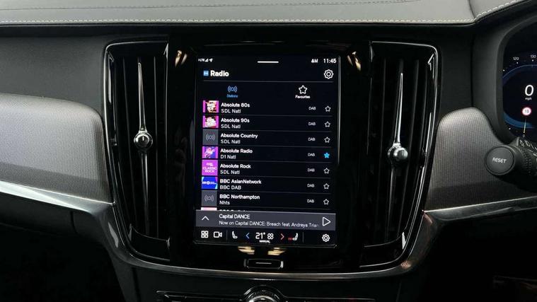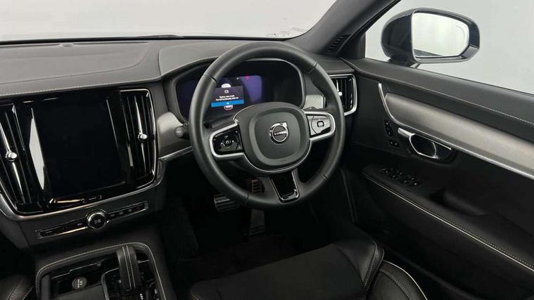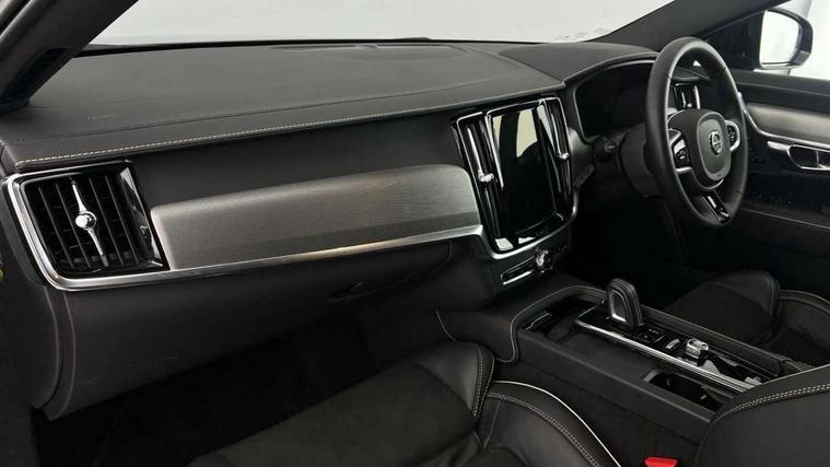 12.3" Progressive Driver Display, 9" centre console touch screen, Adjustable steering wheel force, Bluetooth Handsfree Phone Connection, Drive mode settings, E-call, Google automotive services - Enabled entertainment apps, navigation with google maps, voice recognition with google assistant, Lane keep assist with driver alert control, Oncoming Lane Mitigation, Power operated tailgate, Speed limiter, Speed sensitive steering, Volvo on call, Wireless/Inductive Mobile Phone Charging, 8 speed automatic transmission with start/stop + manual change functions, DAB Radio (Digital Audio Broadcasting), Steering wheel remote infotainment controls, Adaptive brake lights with high level LED brake lights, Auto dimming interior + exterior mirrors, Automatic headlamp levelling, Automatic LED Headlights + Active high beam incorporating daytime running lights, Colour coordinated auto folding and heated power door mirrors, Dark tinted windows for rear side windows and cargo area, Front and rear power windows, High gloss black door mirrors and window surround, High gloss black lower front bumper, High gloss black mesh front grille with silk metal surround, High gloss black rear bumper deco, Home safe and approach lighting, Integrated roof rails in high gloss black, Puddle lights in exterior door handles, Rain sensor with automatic windscreen wiper activation, Rear LED lights with sequential indicators, Rear side wing doors, Rear wiper, Roof antenna, Roof spoiler, Visible VIN plate, 3 seat bench in 2nd row, 3 spoke leather steering wheel with chrome trim, A-pillar parking ticket holder, Ambient door and instrument panel lighting, B Pillar ventilation, Bright metal luggage threshold, Cargo divider with grocery bag holder, Center Console Cupholders and Storage, Charcoal headlining, Driver's side lower dashboard storage compartment, Extended front seat cushions, Front 12V socket tunnel console and cargo area, Front centre armrest storage illumination, Front footwell and side step illumination, Front head restraints, Front/rear door pockets and front cupholder illumination, Front/rear reading lights, Heated front seats, Height/reach adjustable steering column, Illuminated front and rear tread plates, Illuminated glovebox, Illuminated luggage compartment, Illuminated tailgate, Illuminated vanity mirrors + ticket holder, Integrated sun curtains in rear doors, Isofix system on outer rear seats, Load cover, Load protection net, Off-black finish in steering wheel, Power driver seat with memory for seat and exterior mirrors, Power Folding Rear Seat Backrests and Headrests, Rear armrest with storage + cupholders, Rear footwell and side step illumination, Single passenger seat, Ski hatch, Sport pedals, Sports floor mats, Sports leather gear knob, Sports tailored steering wheel, Underfloor cargo storage, Versatile split folding rear seat - 60/40, Driver assist pack - V90, 3x3 point rear seatbelts, Active bonnet, City safety with steering support with Pedestrian + cyclist + front collision warning with full auto brake and rear auto brake, Drivers knee airbag, Dual stage driver/passenger airbags, Front seats SIPS airbags, Hill start assist, IC (Inflatable Curtains) - Full Length, Passenger airbag cut-off device, Power parking brake with auto hold function, Road sign information display, Run off Road Mitigation, Run off Road Protection, Seatbelt reminder and pretensioners for all seats, SIPS (Side Impact Protection System), Slippery road and hazard light alert, Stability and Traction Control with Spin control, Engine Drag Control and Corner Traction Control, Tyre pressure monitoring system, Vehicle deceleration control with Anti-lock Brake System, Electronic Brake Distribution and Emergency Brake Assist, Warning triangle and first aid kit, WHIPS whiplash protection system - front, Anti-theft alarm including immobiliser/volume sensor + level sensor, Care key with user defined top speed, Key integrated remote control central locking + fuel flap with deadlocking system and auto open/close power windows, Keyless drive with Keyless entry and start, Locking wheel nuts, Private locking for tailgate, Metal mesh inlays, Tailored Instrument Panel and Door Tops with Contrast Stitching,