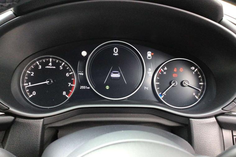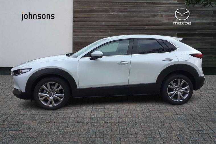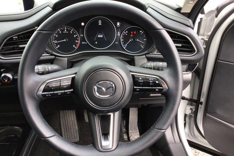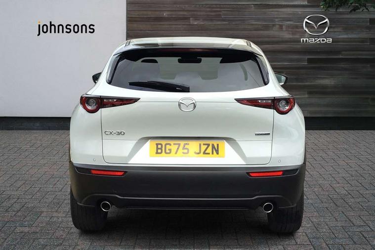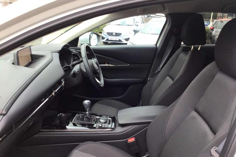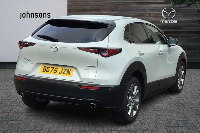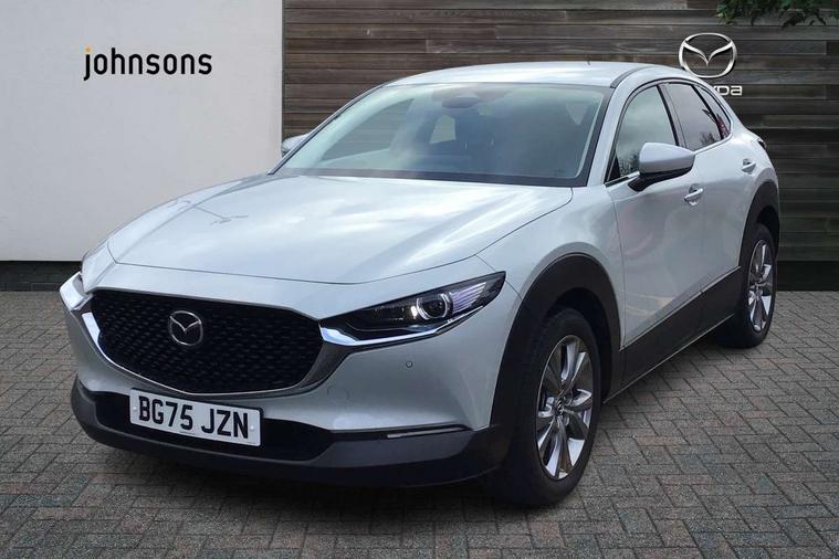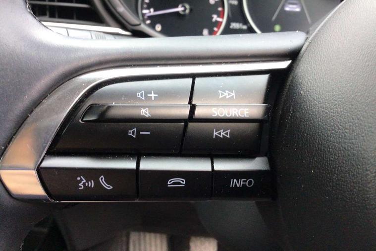 10.25" display with Mazda Connect infotainment, 7" TFT Colour driver instrument panel display, Adaptive cruise control (Mazda radar cruise control), Blind spot monitoring with rear cross traffic alert, Driver attention alert system, E-call with GPS, Emergency stop signalling system, Engine start/stop button, Front and rear parking sensors, Integrated Alexa Voice Assistant, Integrated bluetooth, Integrated Mazda navigation system, Intelligent speed assist, Lane keep assist system (LAS) with Lane departure warning system (LDWS), Mazda connected services, PAS, Power lift gate, Qi wireless charging, Reversing camera, Service indicator, Tailgate, Traffic sign recognition, Trip computer, Windscreen projected colour active driving display (HUD), Wireless Apple CarPlay/Android Auto, Cylinder Deactivation, i-stop, 2 x USB Type-C inputs, AM/FM and DAB radio, Bose surround sound system with 12 Speaker, Bose center point, Bass match and audio pilot technology, Multimedia Commander including separate volume dial, Steering wheel mounted audio/bluetooth controls, Adaptive LED Headlights, Auto dimming driver's door mirror, B-pillar and C-pillar garnishes in gloss black finish, Body coloured, electrically adjustable, heated auto power folding door mirrors with integrated indicators, Chrome finish signature wing in front grille, Coming/leaving home lighting function, Dual bright finish exhaust tip trim, Dusk sensing headlights, Electric front/rear windows with one touch auto up/down, Frameless auto dimming interior rear view mirror, Front kodo turn signal, Gloss black front grille, Gloss black rear roof spoiler, High beam assist, LED auto headlight levelling, LED signature daytime running lights, Privacy glass (rear side windows and rear screen), Rain sensing front wipers with adjustable speed and intermittent wipe, Rear fog lights, Rear side wing doors, Rear wiper, Signature LED rear combination lights, Third brake light, 12V power outlet in centre console, 3 seat bench in 2nd row, 60/40 split fold down rear seats, Bright interior trim accents with steering wheel centre bezel, surround of engine start / stop button and glove box handle, Cloth upholstery with interior accents, Dark cloth door panel inserts, Dashboard, door cards and front centre armrest in black cloth, Driver and front passenger visors with covered vanity mirror and driver ticket holder, Driver seat manual slide, recline, height and seat tilt adjust, Driver, front passenger and two rear door storage, Driver, Front passenger and two rear grab handles with coathooks, Dual zone climate control air conditioning with rear air vents, Folding rear centre armrest with two cup holders, Front and rear (x3) head restraints, Front and rear LED lighting, Front armrest, Front centre storage with two cupholders with lid, Front passenger seatback pockets, Front passengers seat manual slide, recline and height adjustment, Gear shift indicator, Glovebox illumination, Heated front seats with 3 stage setting, ISOFIX child seat anchorage points attached on outer rear seats, Leather wrapped gear shift knob, Leather wrapped steering wheel with telescopic and tilt adjustment, LED luggage compartment lighting, Light roof headlining and pillars, Roof mounted sunglasses holder, Single front passenger seat, 3 point ELR front seat belts x2 with pretensioners, 3 point ELR rear seat belts, Anti-lock braking system (ABS), Drivers knee airbag, DSC - Dynamic Stability Control, Electronic parking brake with auto disengage function and auto hold function, Front and rear curtain airbags, Front dual stage driver and single stage front passenger airbags, Front passenger airbag cut-off switch, Front side airbags, Front smart city brake support, G-Vectoring control plus, Hill launch assist, Manual child lock in rear doors, Mild Hybrid system with regenerative braking, Seatbelt reminder for driver/front passenger and rear seats, Traction control system (TCS), Tyre pressure monitoring system (TPMS), Remote central locking with deadlocking and automatic door lock when driving, Smart keyless entry, Thatcham accredited alarm and immobiliser, 18" Silver metallic alloy wheels, Emergency tyre repair kit,