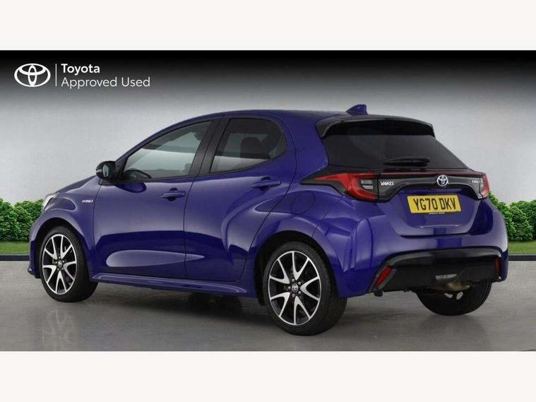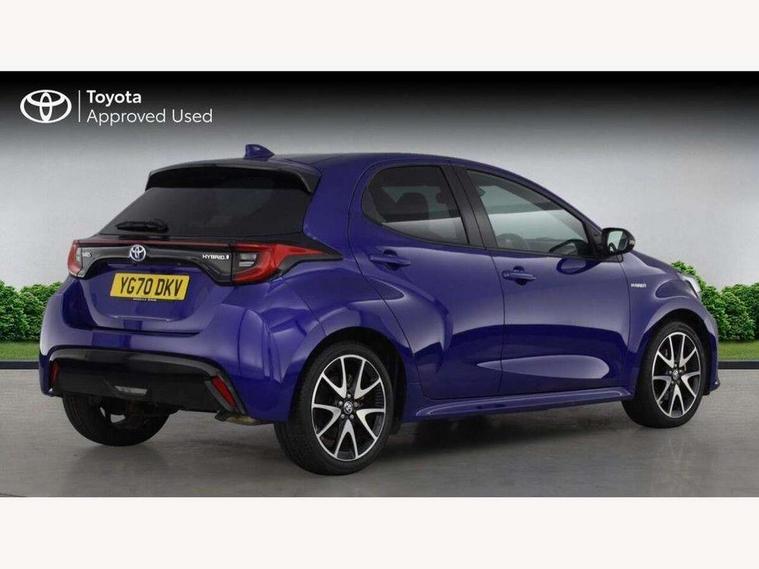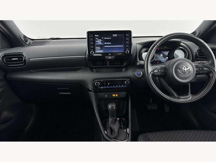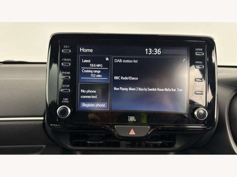 Adaptive cruise control, Adjustable speed limit with speed warning, Bluetooth connectivity, Colour binocular inspired displays with digital speedometer, E-call, Electric power steering, Hybrid energy display, Multi information display switches on steering wheel, Reversing camera, Smartphone integration with Apple CarPlay and Android auto, Vehicle Stability Control (VSC), 8" Multimedia display touch screen, JBL Premium sound system with 8 speakers, Toyota Touch 2 with DAB, USB connection, Acoustic windscreen glass, Auto windscreen wipers, Automatic headlights, Body coloured door mirrors, Electric adjustable heated door mirrors, Follow me home headlights, Front auto power windows with anti jam protection, Full LED rear lights, LED daytime running lights, LED front fog lights, LED Headlights, LED High mounted stop lamp, Painted front grille, Rear auto power windows with anti jam protection, Rear privacy glass, Rear spoiler, Shark fin antenna, Turning signal integrated indicators in door mirrors, 3 adjustable rear headrests, 3 spoke leather steering wheel, 60/40 split folding rear seat, Active headrests, Adjustable boot height, Coat hooks in rear grab handles, Cup holders (2 front & door), Data Communication Module (DCM) connected services, Dual zone automatic air conditioning, Fabric seat with partial synthetic leather upholstery, Front armrest, Front sport seats, Glovebox, Height adjustable driver's seat, Height adjustable passenger seat, Isofix seat fixing, Leather gearshift, Map pockets on the backs of the front seats, Pollen filter, Shopping bag hooks, Tilt/telescopic steering column, 3 point seatbelts on all rear seats, ABS+EBD+Brake assist, Electronic parking brake, Emergency brake light system (EBS), Front passenger airbag on/off switch, Front seatbelt reminder, Hill start assist control (HAC), Rear child proof door locks, Rear seat belt reminder, Supplemental Restraint System (SRS) 8 airbags: Driver & passenger's airbags, dual side curtain airbags, side impact airbags, front centre airbag, Toyota Safety Sense 2, Precollison + Night time Pedestrian & Cyclist Detection, Lane Trace Assist, Auto High Beam, Intelligent ACC & Road Sign Assist, Tyre pressure warning system, Alarm/immobiliser, Keyless smart entry with push button start, Remote powered central double locking doors, Piano black interior trim, Soft touch instrument panel, Space saver spare wheel,