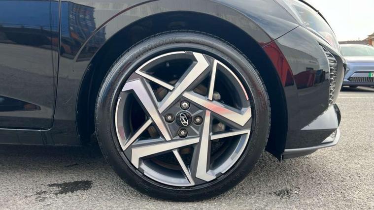 10.25" touchscreen + navigation, 2nd Gen eCall, 8" Touchscreen DAB Radio with android auto and apple carplay, Forward collision assist with car, pedestrian and cycle detection, Front parking sensor, Intelligent speed assist, Intelligent speed limit warning, Lane follow assist, Lane keep assist, MAP OTA updates, PAS, Rear parking sensor, Rear view camera with dynamic guidelines, USB C port front, USB C Port in rear, Automatic headlights with dusk sensor, Electric adjustable heated door mirrors, Electric folding door mirrors, Front grille mesh pattern design, High beam assist, LED 3rd brake light, LED daytime running lights, LED Headlights, LED taillights, Privacy glass - Rear windows and tailgate, Rain sensor, Rear side wing doors, Rear wiper, Repositioned flat metal hyundai emblem, Trailer wiring, 3 seat bench in 2nd row, Adjustable head restraints, Automatic air conditioning, Cloth upholstery, Floor mats, Heated front seats, Heated steering wheel, Leather steering wheel, Multi colour ambient lighting, Single front passenger seat, 3x3 point rear seatbelts, ABS with front and rear diagonally split, Autonomous emergency braking, Child locks on rear doors, Front ventilated disc brakes, Rear solid disc brakes, Tyre pressure monitoring system, 17" Alloy wheels, Tyre repair kit,
