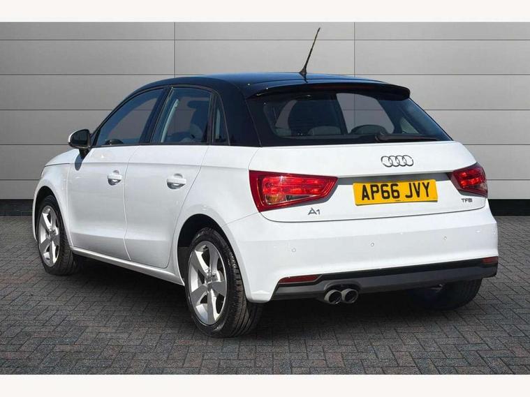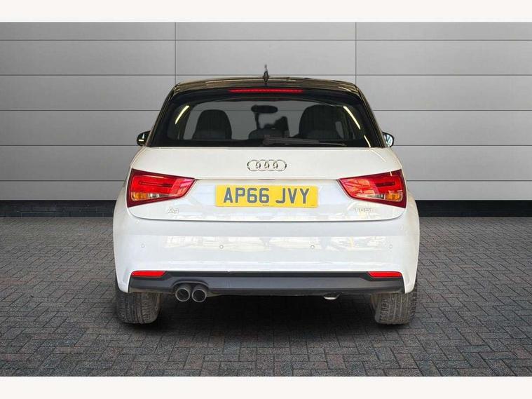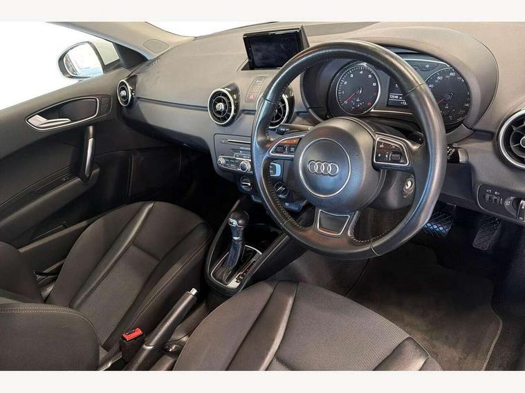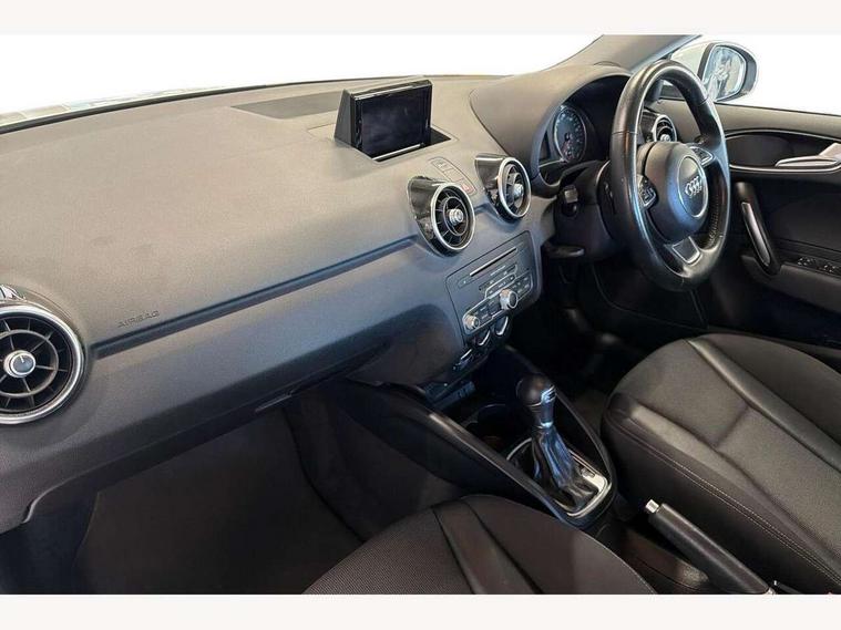 Audi drive select, Electro-mechanical PAS, Low washer fluid indicator, Service interval indicator, Voice control system, Additional SD card reader, Audi music interface, Bluetooth audio streaming, DAB Digital radio, Adaptive brake lights, Electric adjustable door mirrors, Electric front windows, Electric rear windows, Front fog lights, Heat insulating glass, Heated door mirrors, Heated rear windscreen, Rear wiper, 12V Accessory socket in centre console, 3 spoke leather multi-function sport steering wheel including paddle shift, Adjustable rear head restraints, Cupholders in centre console, Door sills trims with aluminium inlays, Front floor mats, Front head restraints, Front sports seats, Height adjustable front seats, Illuminated glovebox, Isofix attachments on outer rear seats, Jack and tool kit, Leather gear knob, Leather handbrake, Lumbar adjustment for front seats, Rake/reach adjustable steering wheel, Split folding rear seats, Connectivity pack - A1, ABS/EBD, Brake assist function, Driver and passenger side airbags, Driver/Front Passenger airbags, EDL, ESP with ASR, First aid kit, Front and rear seatbelt reminder, Front passenger airbag deactivation, Head airbags, Height adjustable front seatbelts, Hill hold assist, Tyre pressure monitor, Warning triangle, Locking wheel bolts, Remote control central locking, Thatcham category 1 alarm + immobiliser, Tyre repair kit,