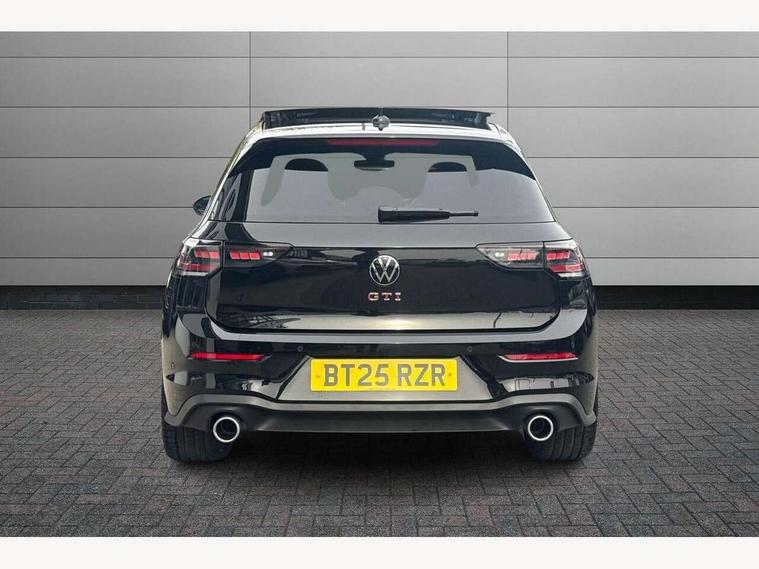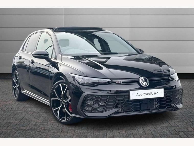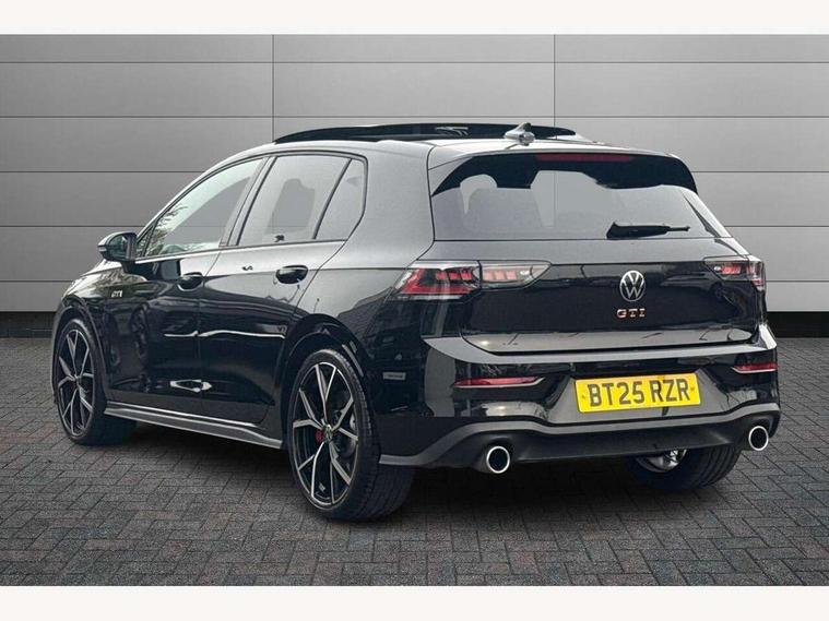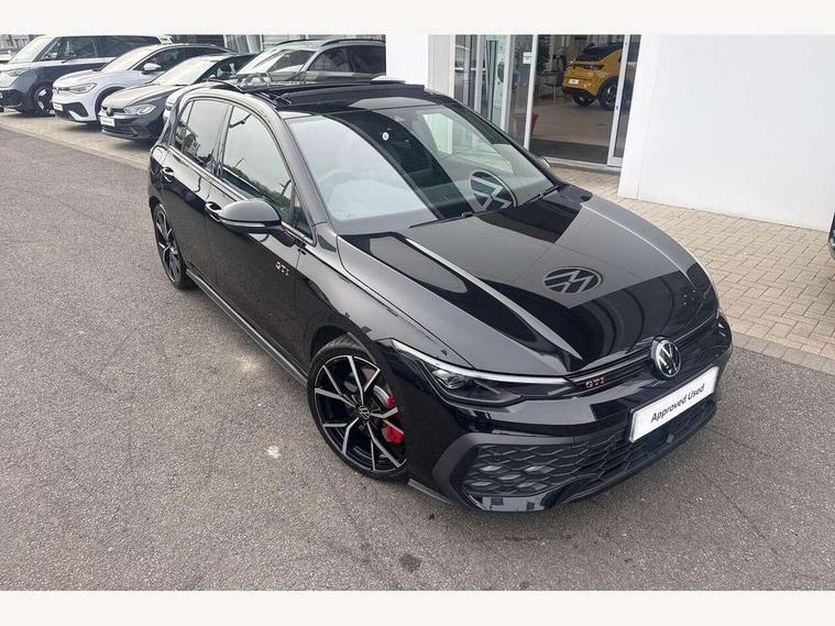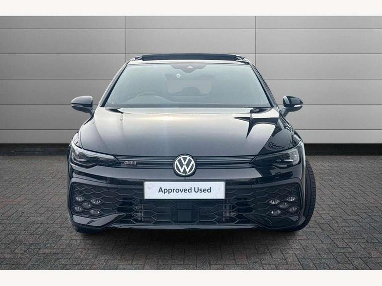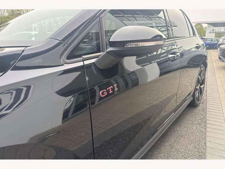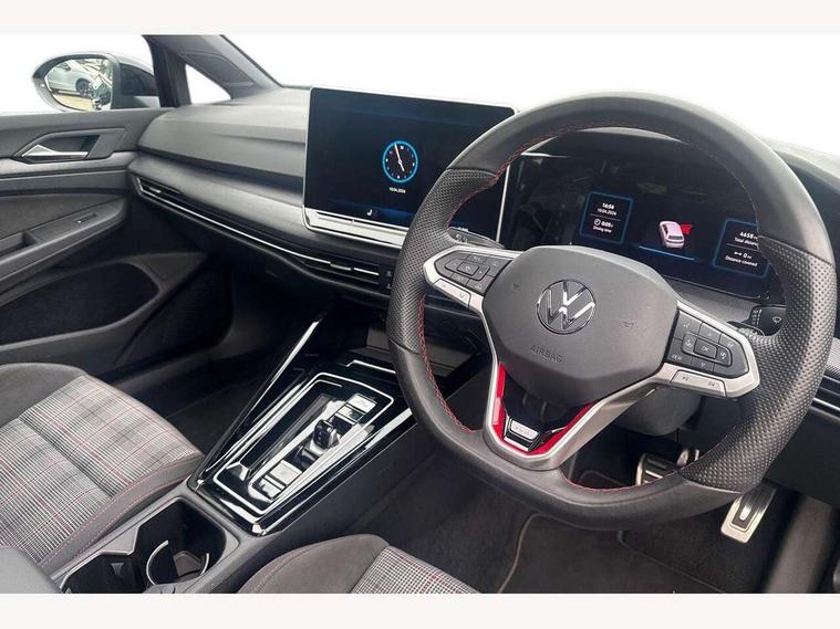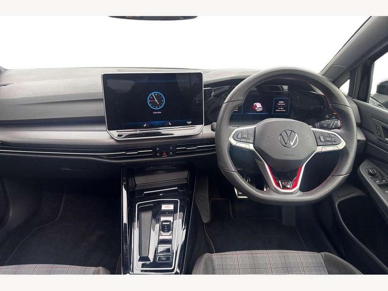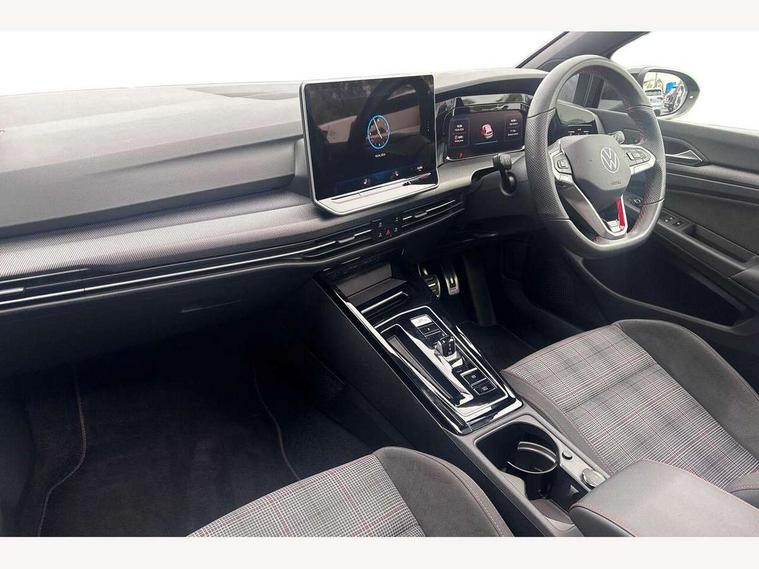 Activated carbon canister, Adaptive cruise control (ACC), Advanced driver attention and drowsiness monitor, Dynamic road sign display, Dynamic steering, E-Sim card for online connectivity, eCall emergency call system, Multi-color Digital cockpit pro, selection of different info profile possible, Multifunction front facing camera for distance control, Navigation system, Oncoming vehicle braking when turning including swerve support, Preparation for light assist system, Side assist blind spot lane change system, rear traffic alert and exit warning system, Speed limiter, Speedo, rev counter, electronic odometer, trip, service interval display, exterior temperature and fuel gauge, Traffic jam assist, Voice enhancer and voice control, Warning signal and warning light for front and rear seatbelts not fastened, We connect plus preparation, We connect preparation, Wireless app connect, Front differential lock, Petrol Particulate Filter, Sports suspension, Start-stop system with battery regeneration (recuperation - energy recovery during braking), 2 USB C ports in front, 2 USB charging sockets on the centre console in the rear charging capacity upto 45W, Comfort telephony + wireless charging, without wireless aerial connection, Digital radio reception (DAB), Diversity antenna for FM reception, Gaming platform via car app, Infotainment system with 12.9" display, Mobile phone interface with inductive charging feature, 3rd brake light, Auto dimming rear view mirror, Auto headlights, Automatic headlamp activation with Coming home and Leaving home feature, Body colour door handles, Body coloured bumpers, air intake in honeycomb structure, Exterior ambient lighting with illuminated lighting animation and wake up/goodbye scenario, Exterior mirrors convex on the left and aspherical on the right, Front and rear electric windows, Front fog lamps and cornering light, Heat insulating windshield made of laminated glass, LED daytime running lights, Nameplate 'GTI' set, Rain sensor, Rear exhaust tailpipe, Rear fog light on one side and reversing lights on both sides, Rear side wing doors, Rear windscreen washer and wiper with interval delay, Remote electrically foldable door mirrors, puddle lights and reverse activated passenger's door mirror, Welcome light with surround lighting, 12V socket in front centre console, 12V socket in luggage compartment, 3 rear head restraints, 3 seat bench in 2nd row, 30 colour ambient lighting, illuminated center console storage compartment in front, Air care climatronic 3 Zone automatic climate control with rear air conditioning control panel, Aluminium gearshift handle, Brushed stainless steel pedals, Carpet mats, front and rear, Chrome plated radiator grille inserts, air vent surrounds and light switch surrounds, Front centre armrest, ISOFIX anchors for child seats on outer rear bench seats and on front passanger seat compatible for i-Size, Luggage compartment lighting, Rear cupholder and loadthough, Single front passenger seat, Soul black instrument panel, Split folding backrest with centre armrest and unsplit rear seat bench, Storm grey roof lining, Sun visors with illuminated vanity mirrors, Driver assistance pack - Golf DSG Estate/Hatchback, Technology park and comfort pro package - Golf Hatchback, 3 point height adj front seatbelts + pretensioners, 3 rear three point seatbelts, ABS, Autonomous emergency braking front assist with pedestrian and cyclist monitoring, Child locks on rear doors, Driver and front passenger airbag with front passenger airbag deactivation, Electronic parking brake with auto hold, ESC (Electronic Stability Control), Extended pedestrian protection measures, Hill start assist, Rear disc brakes, Two tone horn, Tyre pressure loss indicator, Volkswagen roadside assistance, Anti theft wheel bolts, Preparation for alcohol interlock, Decorative inserts carbon grey for dashboard and front door trim panels,