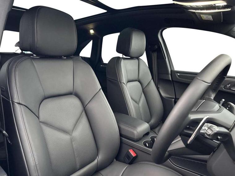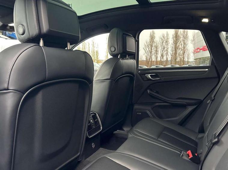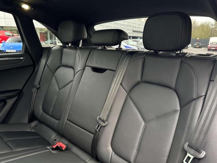 Analogue clock on dashboard, Automatic start/stop system, Automatic tailgate, Cruise control + speed limiter, eCall emergency call system, Instrument cluster with high resolution 4.8-inch TFT display, gear indicator for PDK, service interval display, external temperature indicator, fuel gauge, Off-road button, On board computer, Porsche Communication Management (PCM) including online navigation module, mobile phone preparation, audio interfaces and voice control system, Sports button in centre console, 7-Speed Porsche Doppelkupplung (PDK) with automatic mode and manual controls (gearshift paddles) on steering wheel, Direct fuel injection (DFI), Gasoline particulate filter, VarioCam camshaft control for inlet and exhaust valves, 2 USB sockets in rear centre console, Apple CarPlay with Siri voice recognition, Connect Plus including online navigation, LTE communication module with SIM card reader, wireless internet access, Porsche Car Connect services, DAB Digital radio, Porsche Vehicle Traking System Plus (PVTS Plus), Smartphone compartment with wireless charging, Two USB C charging and connectivity ports in the front centre console storage compartment, Active radiator grille shutters, Automatic headlight activation including welcome home lighting, Bumper system with high strength cross members and two deformation elements + One threaded fixture point for towing eye contained in onboard tool kit, Dynamic cornering lights, speed-sensitive headlight and dynamic range control, adverse weather function, four-point LED daytime running lights, Electric front and rear windows with remote closing function + anti trap + one touch, Electrically folding and heated exterior mirrors, Front light modules with LED position lights and direction indicators, Front windscreen wipers with two speeds, intermittent wipe and rain sensor, Front with integrated cooling air intakes, Fully galvanised body, Heated rear window with automatic switch off, High level 3rd LED brake light integrated into roof spoiler, Loading edge protection in aluminium, Rear side wing doors, Rear window wiper with intermittent function and washer jet, Roof spoiler in high gloss black, Towbar preparation, 3 adjustable rear headrests, 3 rear seats, 3 zone auto climate control separate temperature setting+air recirculation include quality sensor, airflow regulation+AC MAX button+humidity sensor, 4 way adjustable front head restraints, 40:20:40 split folding rear bench seat, Cloth hook b-pillar, Fold up centre console armrest with fore/aft adjustment, Front and rear bottle holders in door panels, Front passenger seat, Glove compartment, Isofix fastening system for child seats on outer rear seats, Luggage compartment cover, Particle/pollen filter with active carbon filter, Rear armrest with 2 cupholders, Storage bin in centre console, Storage compartment in side of luggage compartment and storage compartment in spare wheel recess, Storage pocket in front and rear doors, Two integrated cup holders in front with variable diameter, Two socket 12V power outlets in front console and luggage compartment, Uncovered storage compartment in centre console, Ambient comfort lighting pack - Macan, Lower exterior trim package in black - Macan, 3-point automatic seatbelts with front and outer rear seats pretensioners and force limiter + manually height adjustable seatbelt + reminder warning, Auto hold function, Black painted brake calipers, Child locks on rear doors, Curtain airbags along entire roof frame and side windows from A pillar to the C pillar, Electronic parking brake, Front passenger airbag deactivation facility for installation of child seats indicator in overhead console, Front side airbags integrated into seat, Full size driver and passenger airbags, Internally vented brake discs with diameter of 350mm at front and 330mm at rear, Multi-Collision braking, Porsche hill control (PHC), PTM(Porsche Traction Management) and All-wheel drive with map-controlled multi-plate clutch, Roll over sensor for curtain airbag and seatbelt pretensioners, Side impact protection in doors, Tyre pressure monitoring system, Vehicle stability system, Porsche stability management (PSM) including ABS, ASR, ABD, MSR and trailer stability management, Vented discs brake with 4 piston aluminium monobloc fixed caliper at front, Vented discs brake with combination floating calipers at rear, Alarm system with ultrasonic interior surveillance, Dashcam preparation, Engine immobiliser with key transponder, Remote control central locking, Accent trims with silver coloured finish,