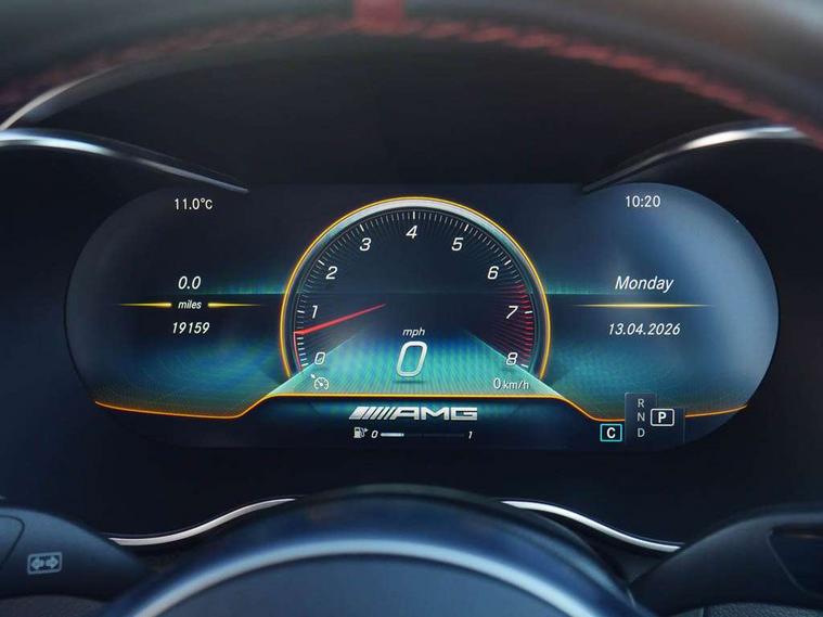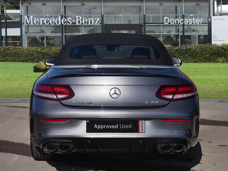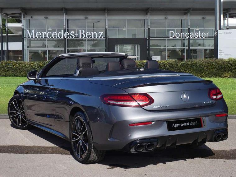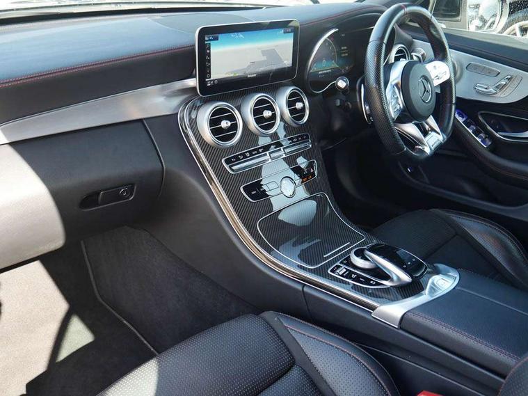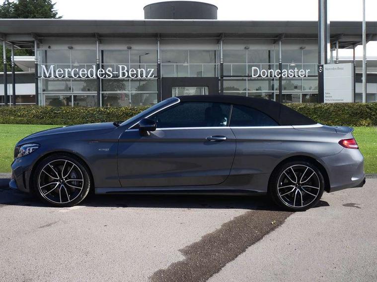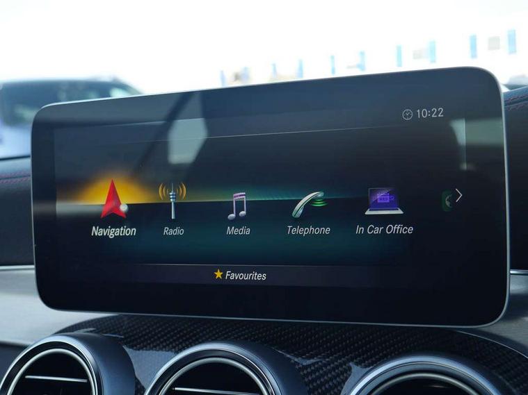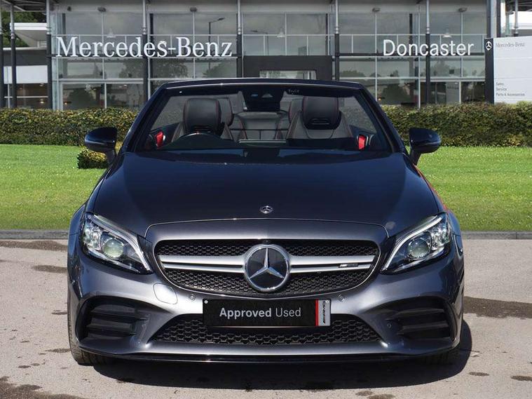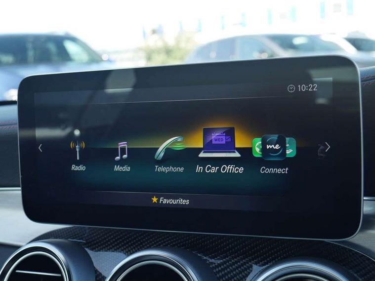 12.3" digital instrument cluster display, 2 stage speed sensitive sport steering, 360 degree camera, Active park assist with parktronic system, AMG boot logo in central screen, Attention assist, Bluetooth interface for hands free telephone, Collision prevention assist plus, Comand Online HDD Nav with media interface, radio/CD/DVD/MP3, 10.25 screen, linguatronic voice control, DYNAMIC SELECT with a choice of driving modes (ECO, Comfort, Sport, Sport+ and Individual), ECO start/stop function, High resolution 10.25" multimedia colour display, Instrument cluster with 5.5-inch TFT multi-function display, Mercedes me connect including emergency call system, accident recovery, breakdown management and maintenance, Multi function trip computer, Outside temperature display, Pre-wiring for SD navigation system, Remote boot release, Reversing camera, Service indicator (ASSYST), Status display for rear seat belts in instrument cluster, 66l fuel tank with increased capacity, 9G Tronic plus 9 speed automatic, AMG performance 4MATIC with torque control distribution, AMG Ride Control sports suspension, Petrol Particulate Filter, Audio 20 with integrated media interface and bluetooth handsfree function, Burmester surround sound system, DAB digital radio tuner, Frontbass loudspeakers, SD card slot, Two USB ports and one SD Card slot in centre console, Acoustic soft-top with enhanced climate and noise comfort, Adaptive brake lights, AIRCAP wind deflector and draught stop, AMG bodystyling - front apron with distinctive air intakes and AMG rear apron with diffuser look, AMG boot lid spoiler in body colour, AMG design radiator grille with double louvre in matt iridium silver with AMG lettering, AMG performance exhaust system, Automatic headlights, Body coloured bumpers, Electric windows with one touch opening/closing and obstruction sensors, Exterior mirrors heated and electronically adjustable, Front door sill panels with AMG lettering, Full LED tail lamps, Green tinted glass, LED daytime running lights, LED Indicators, LED third brake light, Multi beam LED headlights, Radio aerial integrated into rear window, Rain sensor windscreen wipers, Rear boot, Semi-automatic boot separator, Side windows surround in polished aluminium, V8 Bi-Turbo 4Matic badge on front wings, 2 cupholders in front centre console, 2 rear head restraints, 2 seat bench in 2nd row, 3 spoke AMG performance flat bottom leather steering wheel in black, heavily embossed central grip area silver chrome and contrast topstitching in red, 40:20:40 split folding rear seats, Airscarf - neck level heating, AMG sports seats, Auto Mercedes-Benz child seat recognition sensor, Electrical height and back adjustment front seat, Floor mats with black leather edging, red piping and AMG logo, Front centre armrest with storage compartment, Front head restraints, Front LED reading lights, Heated front seats, Height/reach adjustable steering column, Illuminated glove compartment stowage, Interior lighting - 64 colour Ambient lighting, Leather upholstery, Single front passenger seat, Sports pedals with stainless steel surfaces and rubber studs, Sports seats with integrated head restraints, Steering wheel gearshift paddles, Steering wheel touch control buttons for audio and onboard settings, Sunvisors with illuminated vanity mirrors, THERMATIC 2 zone automatic climate control, AMG night package - C Class, Interior lighting package - C Class, Memory pack with steering column memory - C Class, Mirror package - C Class, Seat comfort pack - C Class, Stowage space pack - C Class, 2 rear seatbelts, 3 point automatic seatbelts, Active bonnet, Adaptive brake system with hold function and brake drying function, Anti-lock braking system (ABS), Automatic seatbelt pretensioner for driver and front passenger, Brake calipers with AMG lettering + perforated brake discs, Dual stage airbags - driver and front passenger, front sidebags, driver kneebag, pelvis bag and windowbags for driver, front and rear passengers, Electronic parking brake, Electronic Stability Programme (ESP), ISOFIX child seat attachment points with top tether in rear, Red seat belts, Sports braking system with larger brake discs, Tyre pressure monitoring system, Warning triangle and first aid kit, Anti-theft alarm system/interior protection with tow-away protection and interior monitoring systems, Central locking with interior switch, automatic locking and crash sensor with emergency opening function, Chrome surround electric key, Immobiliser, KEYLESS-GO starting function, AMG carbon fibre/light longitudinal grain aluminium trim, Artico man-made leather dashboard with red contrast stitching, Light longitudinal grain aluminium trim painted, 19" AMG 5 twin-spoke light alloy wheels with aerodynamically optimised and painted in black with a high-sheen finish, TIREFIT with tyre inflation compressor,