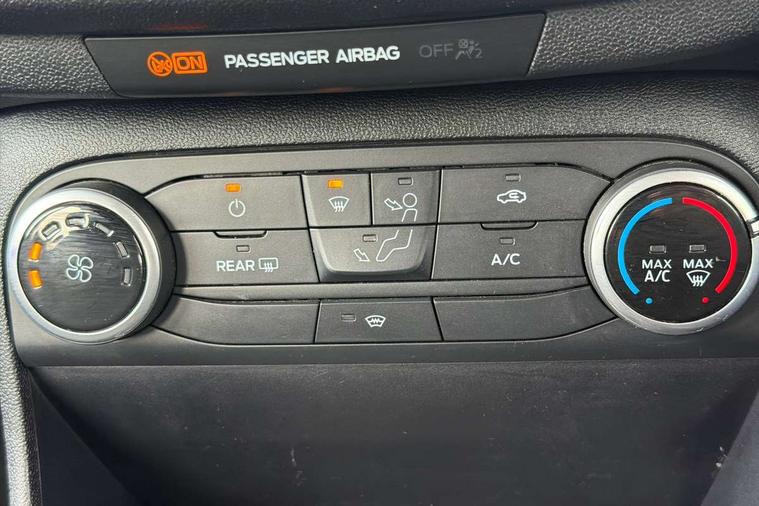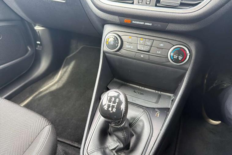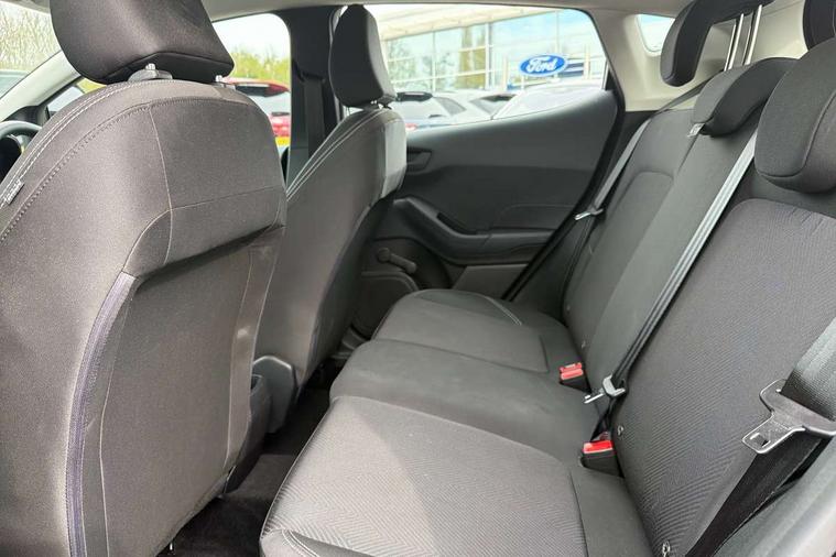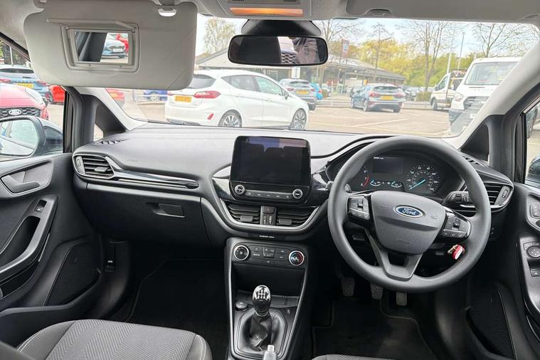 Bluetooth system, Electric power steering, Ford easy fuel, Trip computer, 2 USB ports, Auxiliary input socket, DAB Digital radio, Ford SYNC includes 8" touchscreen, 6 speakers, apple carplay, android auto and emergency assistance, Steering wheel mounted controls, Body colour bumpers, Body colour door handles, Body colour rear spoiler, Chrome beltline trim, Electric front windows/one touch facility, Electric rear windows, LED projector low beam headlamps with LED daytime running lights, Mesh design front grille with chrome surround, Quickclear heated windscreen, Rear wiper, 12V Accessory socket in centre console, 60/40 split folding rear seat, Adjustable head restraints, Ambient lighting, Boot carpet, Chrome inner door handles, Cloth upholstery, Footwell illumination, Front floor mats in velour, Front map reading lights, Front seat and rear pockets, Illuminated glovebox, Load area light, Luxury woven headliner, Manual 2 way passenger seat adjust, Manual 4-way driver seat adjust, Manual air conditioning, Overhead console with sunglasses holder, Pollen filter, Rake/reach adjustable steering wheel, NCAP Pack - Fiesta, 3 point seatbelts on all rear seats, ABS+EBA, Curtain airbags, Driver and passenger airbags, Drivers knee airbag, Electronic stability control with hill start assist, Front passenger airbag deactivation, Front side airbags, Tyre pressure monitoring system, MyKey system, Remote central locking & engine immobiliser, Thatcham Cat.1 alarm, 16" 8 spoke alloy wheels with rock metallic machined finish, Tyre repair kit,