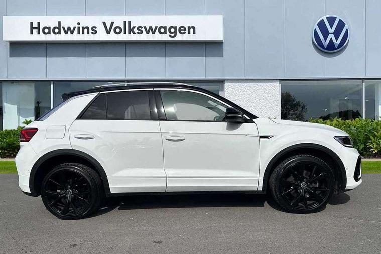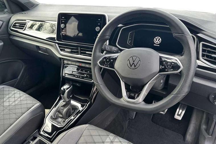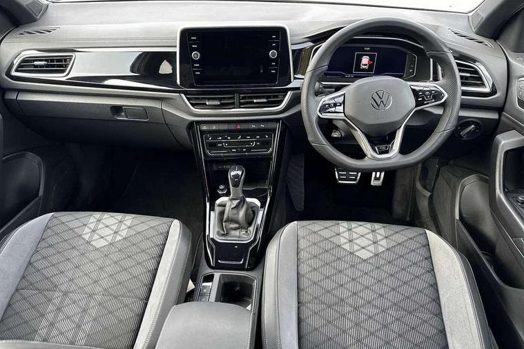 10.25" Digital cockpit pro, Bluetooth mobile phone interface, Driver alert system with fatigue detection, Driver tips and journey analysis, Emergency call service, Lane keeping system Lane Assist, Modified key software - reduce switch off time for key status change to Long no motion, Online services, Park assist including front and rear parking sensors, Service interval indicator, Tailgate/trunk lid release from outside, Think blue trainer driver tips and journey analysis, Warning sound and light for front seatbelts unfastened, Wireless app connect, Battery regeneration during braking, Start/stop function with battery regeneration, Diversity antenna for FM reception, Front and rear 6 speakers, Music playback - MP3, WMA and AAC files, Premium USB cable in choice of either Apple or Android smartphone compatibility, SD card slot, Simultaneous pairing of 2 compatible mobile devices, Title and cover art display, We Connect and We Connect Plus functionality, 3rd brake light, Auto dimming interior rear view mirror, Automatic hazard lights activation under emergency braking, Automatic headlight control with LED separate daytime running lights with coming/leaving home function, Extended roof spoiler, Exterior mirrors aspherical on driver side, convex on front passenger side, External USB type C socket and charging sockets, Front windscreen wiper with intermittent wipe and 4 position delay, Heated rear window, LED Plus headlamps, LED rear combination lamps, LED rear number plate lights, LED tail lamp rear comination lamps, Power windows with comfort operation and circuit breaker, R-Line design body coloured bumpers, Rain sensor, Rear exhaust tailpipe, Rear fog light on one side and reversing lights on both sides, Rear side wing doors, Rear wash/wipe with intermittent wipe setting, Remote electrically foldable door mirrors, puddle lights and reverse activated passenger's door mirror, 12V power socket in centre console, 3 rear head restraints, 3 seat bench in 2nd row, 4 load lashing points in luggage compartment, Air care climatronic air conditoning system with active combination filter and 2-zone temperature control, Black roof lining, Chrome plated radiator grille inserts, air vent surrounds and light switch surrounds, Door and side trim panel with leatherette insert, Drawer under drivers seat, Front + rear carpet mats, Front centre armrest, Front cupholders x 2, Front footwell illumination, Front reading light, Front scuff plates with R logo, Instrument lighting, white adjustable panel illumination, Interior ambient lighting and surround lighting, Interior light delay, Isofix child seat preparation, Leather gearshift handle, Load-through provision with cup holder when folded down ('Unsplit rear seat bench, split folding backrest, with centre armrest), Luggage compartment lighting, Single front passenger seat, Stainless steel pedals, Storage compartment in left and right luggage area, Storage compartment in rear doors, Storage compartments in driver and front passenger doors, Sunvisors with illuminated vanity mirrors, Variable boot floor, height adjustable and removable, Driver assistance pack without proactive passenger protection - T-Roc, 3 point height adj front seatbelts + pretensioners, 3 point seatbelts in outer rear with ECE label, ABS, Child locks on rear doors, Driver and front passenger airbag with front passenger airbag deactivation, Driver and front passenger safety-optimised head restraints, Drivers seatbelt reminder, Electronic parking brake, Electronic Stability Control (ESC) inc EDL (Electronic Differential Lock) and ASR (Traction Control), Front and rear passengers curtain airbag system including front side airbags, Front assist with city emergency braking and pedestrian monitoring, Front seat side impact airbags, Hill start assist, Predictive pedestrian protection, Rear disc brakes, Single tone horn, Tyre pressure loss indicator, Volkswagen roadside assistance, Alarm with interior protection, Anti-theft alarm system with interior monitoring, backup horn, and towing protection, Remote central locking with SAFELOCK, radio remote control with 2 remote control folding keys, Trims for alloy wheels,