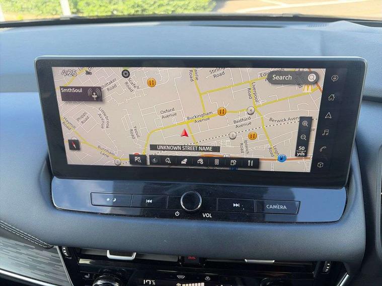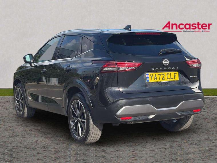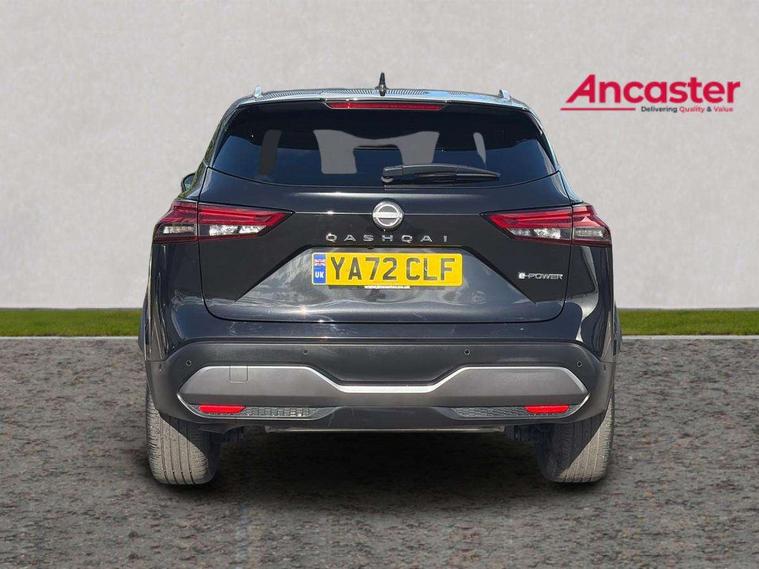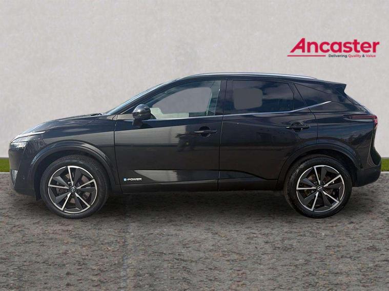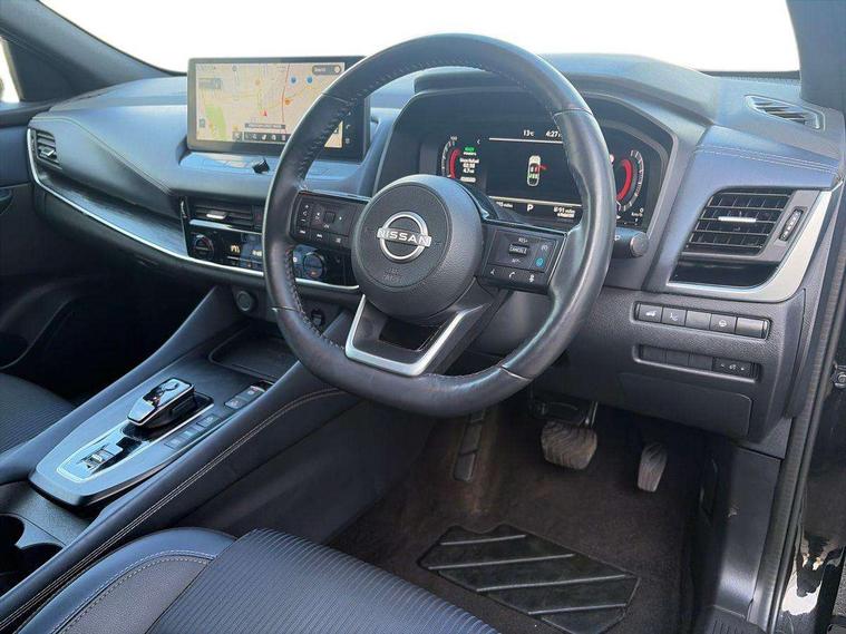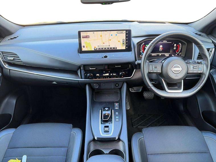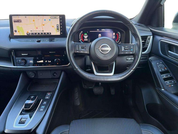 Advanced windscreen head up display, Android auto/Apple CarPlay (Wired), Blind spot warning, Drive modes (sport, normal, eco), Electric speed sensitive power steering, Emergency and breakdown call, Front and rear parking sensors, Full Digital 12.3" TFT Digital Combimeter, Google maps services - search, weather, 3D maps and Google street view, Hands free power tailgate, Idle stop/start system, Intelligent around view monitor, Intelligent Cruise control (ICC), Intelligent driver alert system, Intelligent forward collision warning, Intelligent lane intervention, Lane departure prevention, Lane departure warning system, Lane keep assist, Moving object detection, Nissan connect 12.3 inch touchscreen infotainment system, Nissan connect navigation, ProPILOT with Navi-Link, Push button starter, Rear cross traffic alert, Rear view camera, Remote control services - door locks, lights, horn and car locator, Telematics - notifications and connectivity services, TomTom live traffic services, Traffic sign recognition with legal speed adjustment, Trip computer, Virtual personal assistant and firmware over the air capability, Wireless apple carplay, Wireless charging pad, 6 speakers, AM/FM audio system with DAB, Bluetooth audio streaming, Front USB connections (Type-A and Type-C), Rear USB charging only ports (Type-A and Type-C), Auto dimming rear view mirror, Auto rear wiper when reversing, Automatic hazard signal with emergency stop signal, Body colour mirror caps, Body coloured door handles, Bodyside mouldings, Chrome side window finisher, Door handle with button, e-POWER badging, Electric auto folding door mirrors, Electrically adjustable and heated door mirrors with LED turn indicator, Follow me home headlights, Front and rear LED turning signals, Headlights auto levelling system, Intelligent auto headlights, LED daytime running lights, LED headlights with adaptive driving beam, LED rear lights, One touch front and rear electric windows with remote opening and closing, Partially body coloured bumpers, Privacy glass, Rear bumper with graphite insert, Rear reversing light (bulb lighting), Rear roof spoiler, Rear side wing doors, Rear styling plate, Shark fin antenna, Splash free rain sensing wipers, Super UV and infrared cut glass, Thermaclear heated windscreen, Three blink turn signal, 12v power socket in dashboard and luggage, 2x Rear coat hooks, 3 bench rear seats in 2nd row, 3 rear headrests, 4 folding assist grip, 6 Luggage hooks - 4 on floor, 2 on side, 60/40 split folding rear seat bench, Ambient lighting around centre console, Ambient lighting in front doors, Centre console storage tray, Chrome interior door handles, Cloth/syntech leather monoform upholstery, Dark black/blueish PVC wrapping, Dark headlining, Driver and front passenger sunvisors with illuminated vanity mirrors, Driver seat back pocket, Dual zone automatic climate control with pollen filter, e-POWER shifter, Electrically adjustable driver seat, Electrically adjustable lumbar support for driver, Front and rear door storage, Front centre console and armrest, Front cupholders x 2, Front door with bottle holders, Glovebox with light, Hard trunk cover, Heated front seats, Heated steering wheel, Height adjustable driver's seat, Height adjustable front headrests, Height adjustable passenger seat, Leather steering wheel, Luggage board system, Luggage space lighting, Manual lumbar support on passenger seat, Manually adjustable passenger (slide recline + lifter), Multifunction steering wheel, Passenger seat back pocket, Rear armrest with 2 cupholders, Rear door bottle holders, Single front passenger seat, Soft PVC kneepad, Steering wheel switches, Tilt/telescopic adjustable steering wheel, Two rear isofix child seat anchorage points with top tether, Welcome light and doors with console tray ambient lighting, Glass roof pack with roof rails - Qashqai, 3x3 point rear seatbelt pretensioners + load limiters, ABS with EBD and brake assist, Active brake limited slip, Auto hold function, Child locks on rear doors, Curtain and front side, far side airbags, Driver and passenger airbags, Driver, passenger and 2nd row rear seat belt reminder, Electronic parking brake, Front seatbelt pretensioners + load limiters, Height adjustable front seatbelts, Hill start assist, Intelligent blind spot intervention, Intelligent front emergency braking with pedestrian, cyclist recognition and junction assist, Intelligent rear automatic braking, Tyre pressure monitoring system, Vehicle dynamic control, Capless fuel filler, Engine immobiliser, Intelligent Key, Remote central door locking with deadlocking, Thatcham Cat.1 alarm, Interior instrumental panel C finisher, 19" Diamond cut alloy wheels, Tyre puncture repair kit,