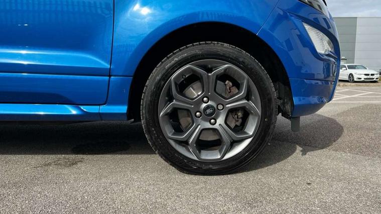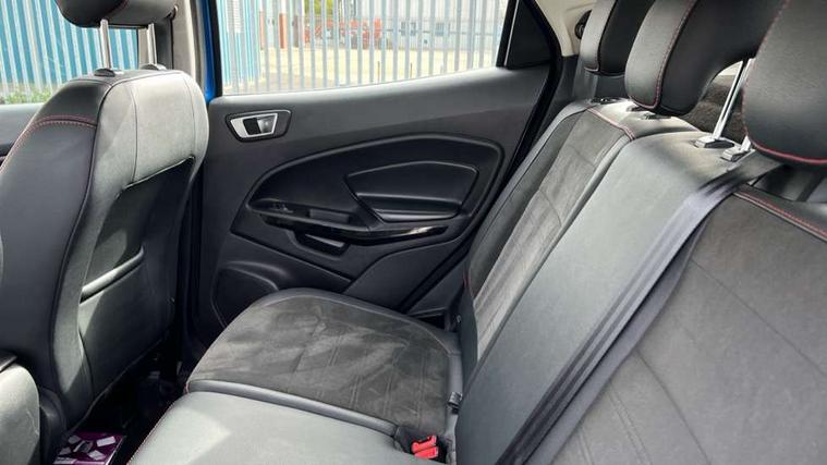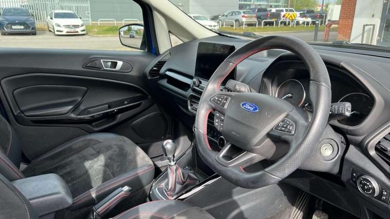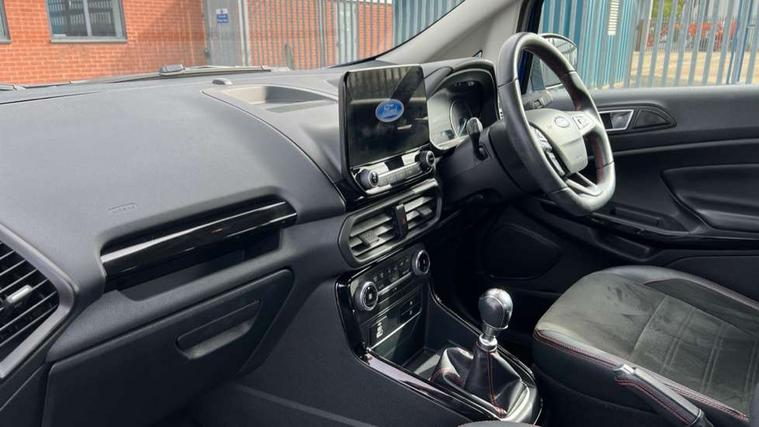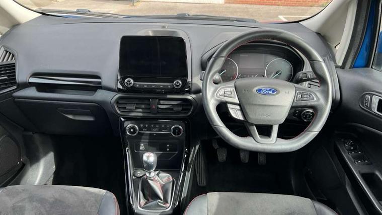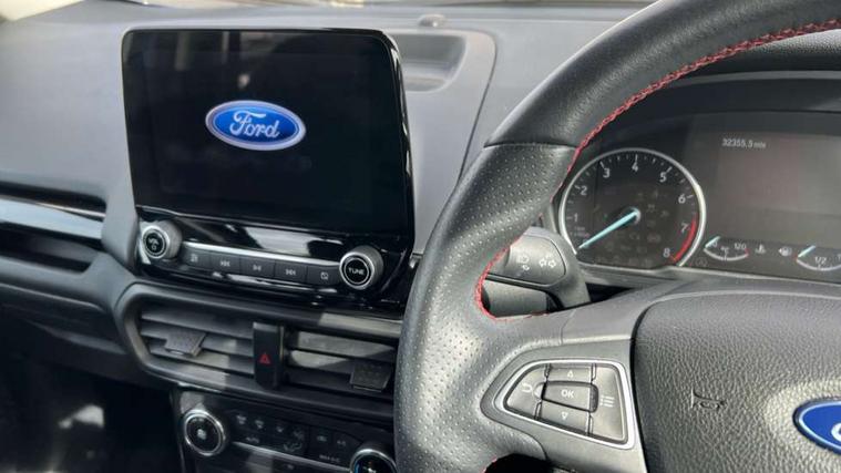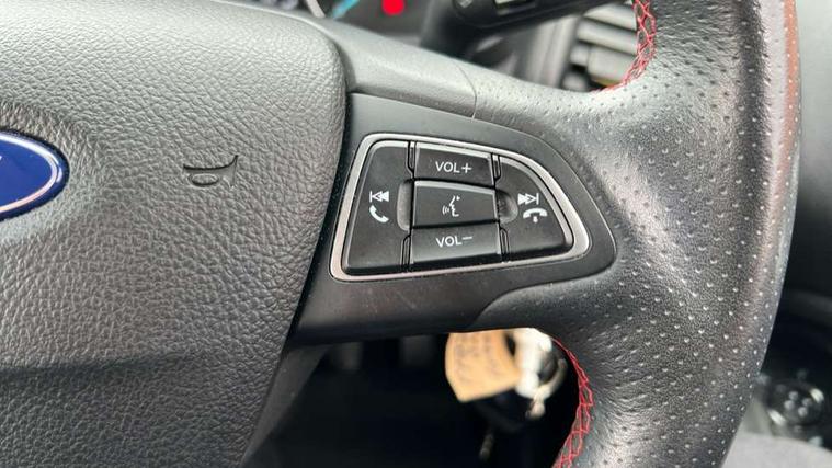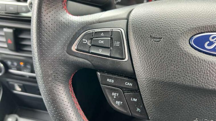 Cruise control, e-Call (emergency call), Easy fuel capless refuelling system, Ford SYNC 3 nav system with DAB radio, 8" screen, emergency assistance, Apple car play/Android auto, 2x USB, 6 speakers, Ford pass connect, Intelligent speed limiter, PAS, Rear parking sensors, Rear view camera, Traffic sign recognition, Trip computer, Sports suspension, Steering wheel mounted audio controls, Auto dimming rear view mirror, Automatic front wipers, Automatic headlights, Black roof rails, Body colour door handles, Body coloured bumpers, Chrome lower window surround, Electrically adjustable and heated door mirrors, Front fog lights, Headlight levelling control, Large rear spoiler, LED day running lights, LED third brake light, Power front and rear windows, Puddle lights, Quickclear' heated windscreen, Rear wiper, ST Line body styling kit - Black headlamp bezel, front and rear sport bumpers, body colour lower door claddings, ST-Line front grille, 12V socket in front and rear, 60/40 split rear seats, Ambient lighting, Centre console with sliding front armrest, Cooled glovebox, Courtesy lights with map reading light, Driver height adjust, Driver seat height/lumbar adjust, Driver's side glovebox, Driver/passenger sunvisors and lidded vanity mirrors, EATC - Electronic Auto Temperature control, Folding grab handles, Front head restraints, Front seat back map pockets, Illuminated glovebox, Illuminated luggage compartment, Isofix system on outer rear seats, Luggage compartment carpet, Neosuede/Partial sensico leather upholstery, Overhead console with sunglasses holder, Rake adjustable rear seats, Reach + rake adjustable steering column, Rear headrests, Sensico trimmed steering wheel, handbrake and gearshift gaiter with red stitching, ST-Line Front floor mats with red stitching, Stainless steel sports pedals, Storage drawers under front seats, Tie down hooks, Variable boot floor, 3x3 point rear seatbelts, ABS, Autonomous emergency braking, Child locks on rear doors, Curtain airbags, Driver airbag, Drivers knee airbag, Electronic Stability Programme with hill launch assist, Front passenger airbag deactivation, Front side airbags, Passenger airbag, Pre collision assist system with AEB, Seatbelt reminder for driver and front passenger, Traction control, Tyre pressure monitoring system, Immobiliser, MyKey system, Remote central locking, Thatcham 1 volume sensing alarm, Low rolling resistance tyres, Tyre inflation kit,