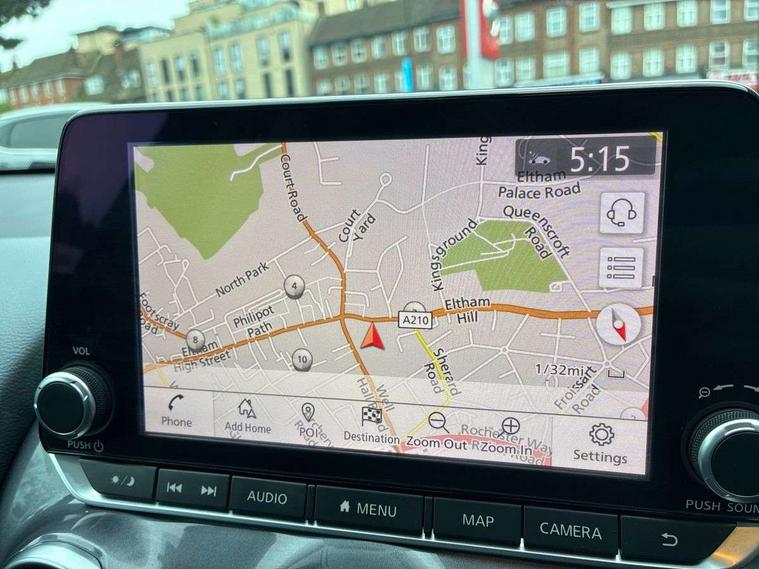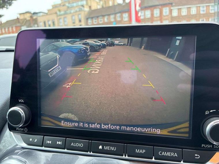 7" full colour TFT screen combimeter, 8" infotainment colour display with touch screen, Apple CarPlay and Google Android auto, Drive modes select (Eco, normal and sport), Emergency and breakdown call, Front parking sensor, Idle start/stop system, Intelligent lane intervention, Lane departure warning system, Nissan connect nav with TomTom traffic, Nissan connect services and Wifi connection, Outside temperature sensor, Power Steering, Rear parking sensor, Traffic sign recognition, Trip computer, Gasoline particulate filter, 6 speakers, Bluetooth system, USB, Aux-in and 12V socket, DAB Digital radio, Rear console USB port, Auto dimming interior rear view mirror, Automatic hazard signal with emergency stop signal, Body colour bumpers, Body colour door handles, Electrically adjustable door mirrors with integrated indicators, Follow me home headlights, Front and rear electric window with one touch driver and passenger window, Heated and auto folding door mirrors, High beam assist, LED daytime running lights, LED front fog lights, LED headlamps, LED rear fog lamp, LED rear lamps, Rain sensor windscreen wipers, Rear privacy glass, Rear spoiler, Rear wiper, Three blink turn signal, 3 height adjustable rear headrests, 60/40 split folding rear seat, Automatic climate control, Card holder on driver sunvisor, Cloth upholstery, Door ambient lighting, Driver and passenger sliding and reclining seats, Driver seat back pocket, Driver side rear coat hanger, Driver/passenger sunvisors and illuminated vanity mirrors, Front and rear cabin lights, Front armrest, Front door pockets with bottle holders, Front head restraints, Front/rear passenger grab handles, Gear console ambient circle lighting, Grey synthetic leather kneepad, Height adjustable driver's seat, Internal chrome door handles, Leather gearshift knob, Leather steering wheel, Luggage board, Luggage space lighting, Monoform sporty seats, Multifunction steering wheel, Passenger seat back pocket, Rear door bottle holders, Steering wheel mounted gearshift paddles, Telescopic steering wheel adjustment, Two cupholders in front centre console, Two rear isofix child seat anchorage points with top tether, Voice recognition switch on steering wheel, Welcome light and console tray ambient lighting, ABS with EBD and brake assist, Active ride control, Active Trace Control, Driver and passenger airbags, Driver and passenger side airbags, Electric handbrake with auto hold function, Electronic Stability Programme (ESP), Front and rear curtain airbags, Height adjustable seatbelts, Hill start assist, Intelligent emergency braking with pedestrian and cyclist recognition, Seatbelt reminder for driver/front passenger and rear seats, Single tone horn, Three 3 point rear seatbelts, Traction control, Tyre pressure monitoring system, VDC Dynamic Vehicle Control, Ventilated rear brake discs, Alarm, Immobiliser, Intelligent Key with push button starter, Remote central locking,