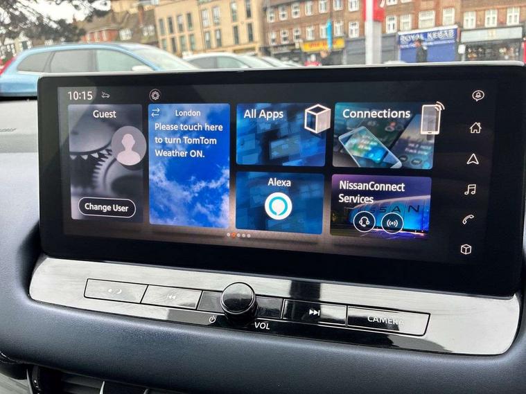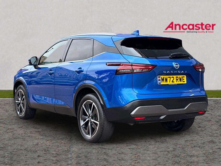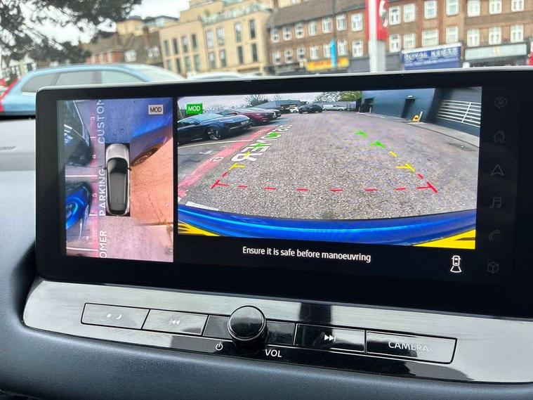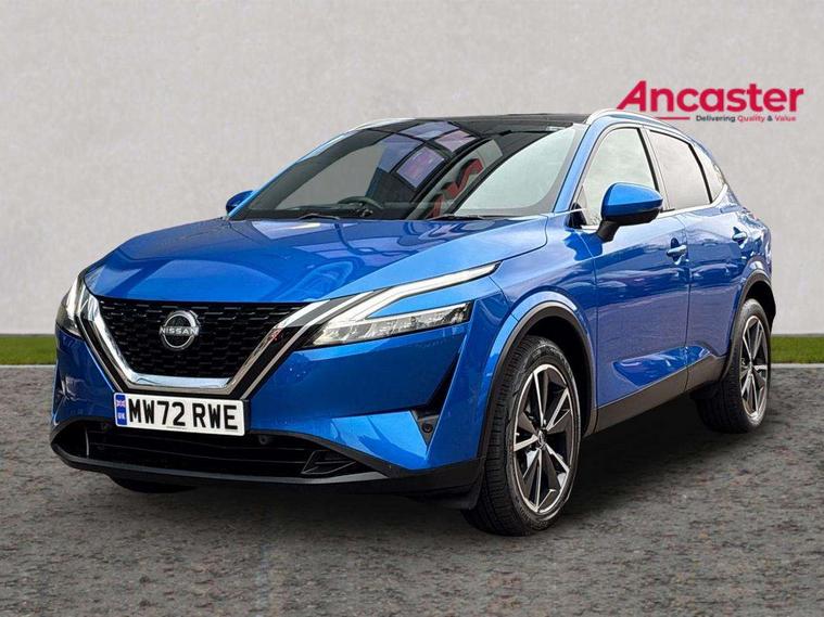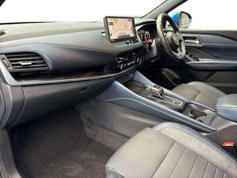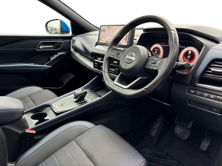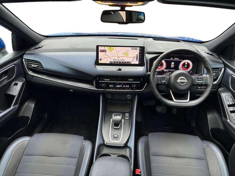 Advanced windscreen head up display, Android auto/Apple CarPlay (Wired), Blind spot warning, Drive modes (sport, normal, eco), Electric speed sensitive power steering, Emergency and breakdown call, Front and rear parking sensors, Full Digital 12.3" TFT Digital Combimeter, Google maps services - search, weather, 3D maps and Google street view, Hands free power tailgate, Idle stop/start system, Intelligent around view monitor, Intelligent Cruise control (ICC), Intelligent driver alert system, Intelligent forward collision warning, Intelligent lane intervention, Lane departure prevention, Lane departure warning system, Lane keep assist, Moving object detection, Nissan connect 12.3 inch touchscreen infotainment system, Nissan connect navigation, ProPilot, Push button starter, Rear cross traffic alert, Rear view camera, Remote control services - door locks, lights, horn and car locator, Telematics - notifications and connectivity services, TomTom live traffic services, Traffic jam pilot, Traffic sign recognition with legal speed adjustment, Trip computer, Virtual personal assistant and firmware over the air capability, Wireless apple carplay, Wireless charging pad, 6 speakers, AM/FM audio system with DAB, Bluetooth audio streaming, Front USB connections (Type-A and Type-C), Rear USB charging only ports (Type-A and Type-C), Auto dimming rear view mirror, Auto rear wiper when reversing, Automatic hazard signal with emergency stop signal, Body colour mirror caps, Body coloured door handles, Bodyside mouldings, Chrome side window finisher, Door handle with button, Electric auto folding door mirrors, Electrically adjustable and heated door mirrors with LED turn indicator, Follow me home headlights, Front and rear LED turning signals, Headlights auto levelling system, Intelligent auto headlights, LED daytime running lights, LED headlights with adaptive driving beam, LED rear lights, One touch front and rear electric windows with remote opening and closing, Partially body coloured bumpers, Privacy glass, Rear bumper with graphite insert, Rear reversing light (bulb lighting), Rear roof spoiler, Rear side wing doors, Rear styling plate, Shark fin antenna, Splash free rain sensing wipers, Super UV and infrared cut glass, Thermaclear heated windscreen, Three blink turn signal, 12v power socket in dashboard and luggage, 2x Rear coat hooks, 3 bench rear seats in 2nd row, 3 rear headrests, 4 folding assist grip, 6 Luggage hooks - 4 on floor, 2 on side, 60/40 split folding rear seat bench, Ambient lighting around centre console, Ambient lighting in front doors, Centre console storage tray, Chrome interior door handles, Cloth/syntech leather monoform upholstery, Dark black/blueish PVC wrapping, Dark headlining, Driver and front passenger sunvisors with illuminated vanity mirrors, Driver seat back pocket, Dual zone automatic climate control with pollen filter, Electrically adjustable driver seat, Electrically adjustable lumbar support for driver, Front and rear door storage, Front centre console and armrest, Front cupholders x 2, Front door with bottle holders, Glovebox with light, Hard trunk cover, Heated front seats, Heated steering wheel, Height adjustable driver's seat, Height adjustable front headrests, Height adjustable passenger seat, Leather steering wheel, Luggage board system, Luggage space lighting, Manual lumbar support on passenger seat, Manually adjustable passenger (slide recline + lifter), Multifunction steering wheel, Passenger seat back pocket, Rear armrest with 2 cupholders, Rear door bottle holders, Single front passenger seat, Soft PVC kneepad, Steering wheel gearshift paddles, Steering wheel switches, Tilt/telescopic adjustable steering wheel, Two rear isofix child seat anchorage points with top tether, Welcome light and doors with console tray ambient lighting, Glass roof pack with roof rails - Qashqai, 3x3 point rear seatbelt pretensioners + load limiters, ABS with EBD and brake assist, Active brake limited slip, Auto hold function, Child locks on rear doors, Curtain and front side, far side airbags, Driver and passenger airbags, Driver, passenger and 2nd row rear seat belt reminder, Electronic parking brake, Front seatbelt pretensioners + load limiters, Height adjustable front seatbelts, Hill start assist, Intelligent blind spot intervention, Intelligent front emergency braking with pedestrian, cyclist recognition and junction assist, Intelligent rear automatic braking, Tyre pressure monitoring system, Vehicle dynamic control, Capless fuel filler, Engine immobiliser, Intelligent Key, Remote central door locking with deadlocking, Thatcham Cat.1 alarm, Interior instrumental panel C finisher, 19" Alloy wheels, Tyre puncture repair kit,
