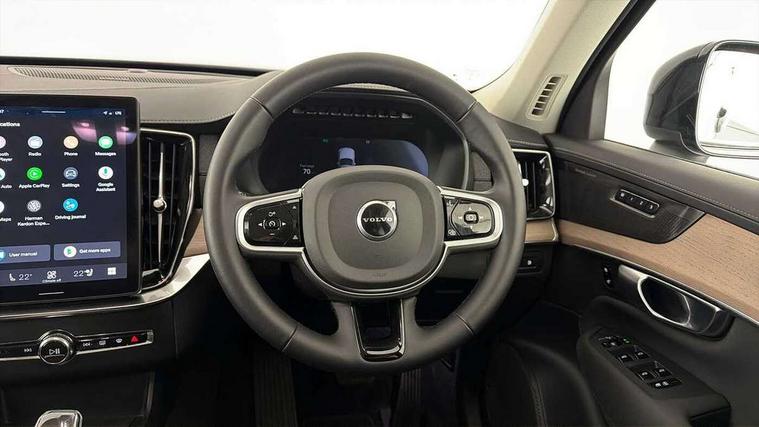 11.2" centre console touch screen, 12.3" Progressive Driver Display, 360 degree surround view parking camera with side proximity sensors, Adjustable steering wheel force, Apple carplay (wired), Bluetooth handsfree system, Drive mode settings, Driver alert control with lane keeping aid, Driver assistance (pilot assist and adaptive cruise control), Driver awareness - Blind spot information system with steer assist, cross traffic alert with autobrake and rear collision warning and mitigation, Driver monitoring system, Emergency call service, Front and rear park assist, Google Automotive Services - Navigation with Voice recoginition and google assistant, Handsfree power tailgate opening and closing, Intelligent speed assistance, Oncoming Lane Mitigation, PAS, Power operated tailgate, Service interval indicator, Speed sensitive steering, Trip computer, Volvo on call, Wireless/Inductive Mobile Phone Charging, 6m 3 phase 16amp Type 2 / mode 3 charge cable, 8 speed automatic transmission with start/stop + manual change functions, Active four C chassis - four corner adaptive dampers with electronic air suspension, Electric rear axle drive, Lithium-ion battery, On board charger - 6.4 kW 2 phase/3.7kW single phase, Recharging port located in nearside front wing, DAB Radio (Digital Audio Broadcasting), Low speed exterior sound speaker, Premium Sound by Harman Kardon, dirac unison, dolby pro logic II surround sound, 13 speakers/600W output and fresh air subwoofer, Steering wheel remote infotainment controls, Adaptive brake lights with high level LED brake lights, Auto dimming interior + exterior mirrors, Auto folding and heated power door mirrors, Automatic headlight levelling system, Automatic matrix LED headlights with Adaptive shadow technology and Active high beam, incorporating Day running lights, Body colour bumpers, Front and rear power windows, Headlight cleaning system, Heated front windscreen, High gloss black door mirrors and window surround, High gloss black front and rear bumper deco, High gloss black front grille and deco, Home safe and approach lighting, Integrated roof rails in high gloss black, Power glass tilt and slide panoramic sunroof with sun curtain, Puddle lights, Rain sensor with automatic windscreen wiper activation, Rear side wing doors, Rear wash/wipe with intermittent wipe setting, Roof antenna, Roof spoiler, Visible VIN plate, 12V socket in luggage compartment, 2nd Row centre armrest with and cupholders, 3 Spoke tailored sport steering wheel with chrome trim, 4 zone electronic climate control with Clean zone air quality system + pollen filter, A-pillar parking ticket holder, Air conditioning for 3rd row of seats, Air purifier PM2.5, Ambient door and instrument panel lighting, B Pillar ventilation, Bright metal luggage scuff plate, Centre console cupholders and storage, Floor mats, Front and rear courtesy lights, Front and rear door pocket illumination, Front footwell and side step illumination, Front headrests, Front reading lights, Front seat cushion extensions, Front tunnel storage illumination, Glovebox compartment light, Heated front seats, Heated rear seats, Heated steering wheel, Height/reach adjustable steering column, Illuminated front and rear aluminium tread plates, Illuminated luggage compartment, Illuminated tailgate, Illuminated vanity mirrors + ticket holder, Inner door release handle illumination, Isofix outer rear child seat preparation in 2nd row, Load cover, Load protection net, Lockable glovebox compartment, Luggage compartment divider with grocery bag holder, Nordico quilted upholstery, Outboard armrest with cupholder and storage for third row passengers, Power driver seat with multi directional lumbar support and memory for seat and exterior mirrors, Power folding 2nd row headrests, Power passenger seat with multi directional lumbar support and memory, Rear footwell and side step illumination, Rear headrests, Rear reading lights, Second row integrated child seat for centre seat, Single front passenger seat, Textile headlining, Three 2nd row individual folding passenger seats with fore/aft adjustment, Two 3rd row individual folding passenger seats, Underfloor luggage compartment storage, 7 three point seatbelts, City safety with steering support includes pedestrian, cyclist detection, front collision warning with full auto brake and rear auto brake, Driver and passenger airbags, Drivers knee airbag, First aid kit, Front seats SIPS airbags, Hill descent control - off drive mode, Hill start assist, IC (Inflatable Curtains) - Full Length, Passenger airbag cut-off switch, Power child locks on rear doors, Power parking brake with auto hold function, Road sign information display, Run off Road Protection, Seatbelt reminder and pretensioners for all seats, SIPS (Side Impact Protection System), Slippery road and hazard light alert, Stability and Traction Control with Spin control, Engine Drag Control and Corner Traction Control, Tyre pressure monitoring system, Vehicle deceleration control with Anti-lock Brake System, Electronic Brake Distribution and Emergency Brake Assist, Warning triangle, WHIPS whiplash protection system - front, 2x Key integrated remote control central locking + deadlocking system and auto open/close windows, Anti-theft alarm including immobiliser/volume sensor + level sensor, Keyless drive includes keyless entry and keyless start, Locking wheel nuts, Tailored instrument panel and door tops, Tyre sealant kit and compressor,