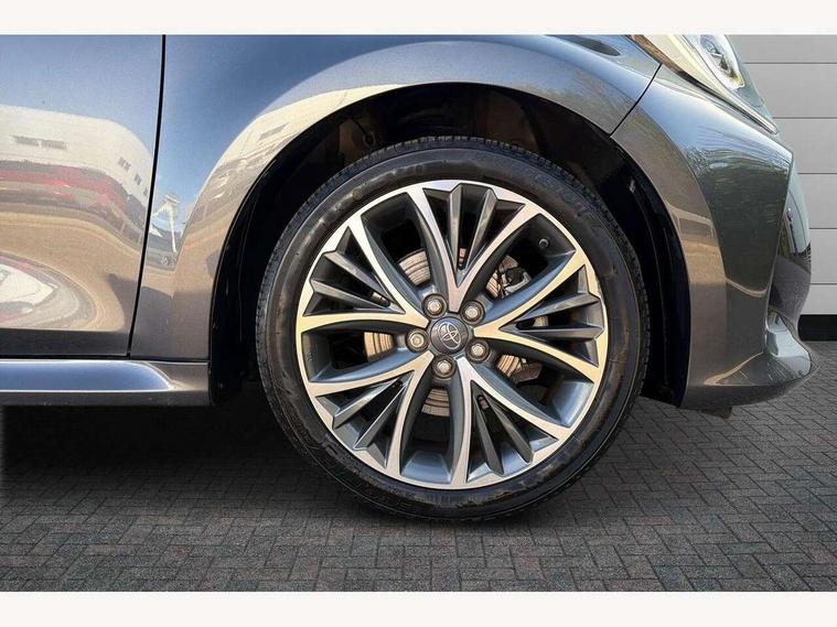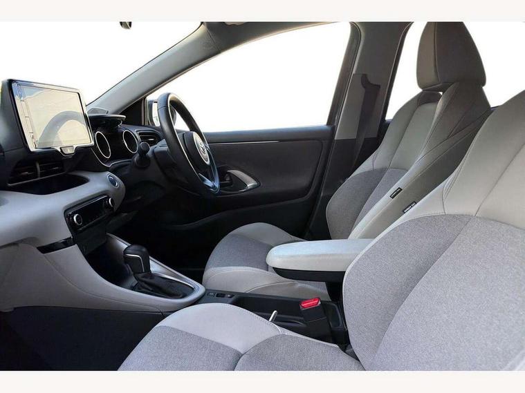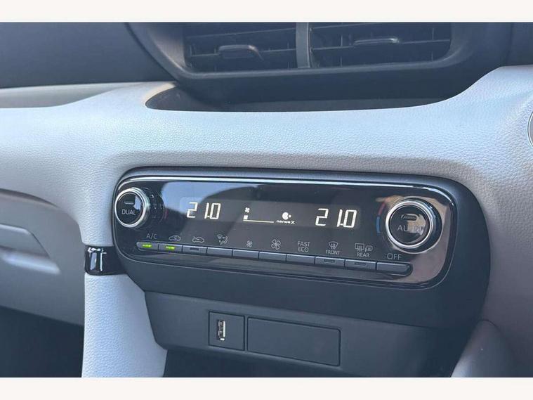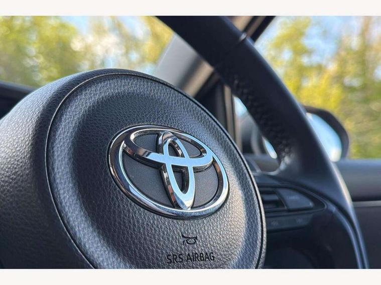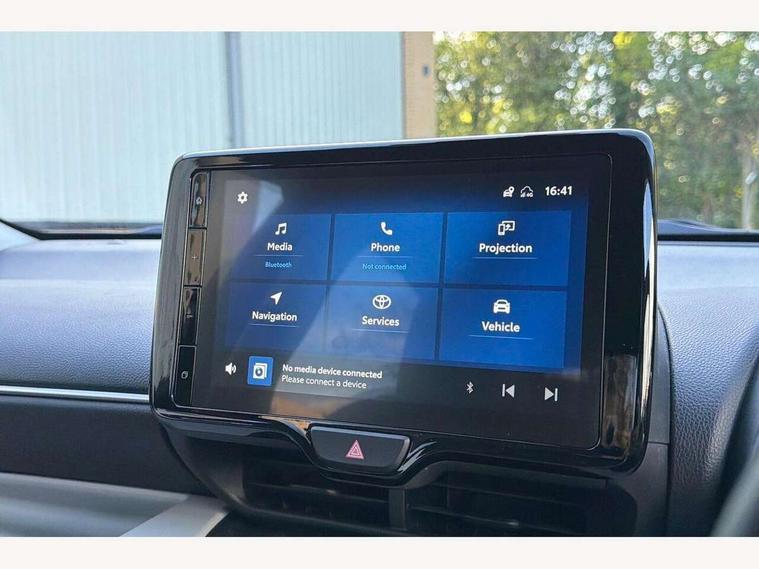Adaptive cruise control, Adjustable speed limit with speed warning, Blind spot monitoring, Bluetooth connectivity, Colour binocular inspired displays with digital speedometer, E-call, Electric power steering, Hybrid energy display, Multi information display switches on steering wheel, Reversing camera, Smartphone integration with Apple CarPlay and Android auto, Tailgate, Touch 2 navigation system, Voice recognition, Vehicle Stability Control (VSC), 6 speakers, 9" HD multimedia display touch screen with Toyota smart connect, USB connection, Acoustic windscreen glass, Auto windscreen wipers, Automatic headlights, Automatically retractable door mirrors, Body coloured door mirrors, Electric adjustable heated door mirrors, Follow me home headlights, Front auto power windows with anti jam protection, Full LED rear lights, LED daytime running lights, LED front fog lights, LED front light guide, LED Headlights, LED High mounted stop lamp, LED Indicators, LED rear light guide, Manual headlight levelling, Painted chequered front grille, Rain sensor, Rear auto power windows with anti jam protection, Rear privacy glass, Rear side wing doors, Rear spoiler, Rear wiper, Satin lower front grille, Shark fin antenna, Turning signal integrated indicators in door mirrors, Variable front intermittent wipers, 3 adjustable rear headrests, 3 seat bench in 2nd row, 3 spoke leather steering wheel, 60/40 split folding rear seat, Active headrests, Adjustable boot height, Coat hooks in rear grab handles, Cup holders (2 front & door), Data Communication Module (DCM) connected services, Dual zone automatic air conditioning, Fabric seat with partial synthetic leather upholstery, Front armrest, Front sport seats, Glovebox, Grey roof lining, Height adjustable driver's seat, Height adjustable passenger seat, Isofix seat fixing, Leather gearshift, Map pockets on the backs of the front seats, Pollen filter, Shopping bag hooks, Single front passenger seat, Tilt/telescopic steering column, Parking pack - Yaris, 3 point seatbelts on all rear seats, ABS+EBD+Brake assist, Electronic parking brake, Emergency brake light system (EBS), Front passenger airbag on/off switch, Front seatbelt reminder, Hill start assist control (HAC), Rear child proof door locks, Rear seat belt reminder, Supplemental Restraint System (SRS) 8 airbags: Driver & passenger's airbags, dual side curtain airbags, side impact airbags, front centre airbag, Toyota Safety Sense 2, Precollison + Night time Pedestrian & Cyclist Detection, Lane Trace Assist, Auto High Beam, Intelligent ACC & Road Sign Assist, Tyre pressure warning system, 2x Master key, Alarm/immobiliser, Keyless smart entry with push button start, Remote AC via MyT, Remote locking via MyT, Remote powered central double locking doors, Satin chrome interior styling, Soft touch instrument panel, Space saver spare wheel,