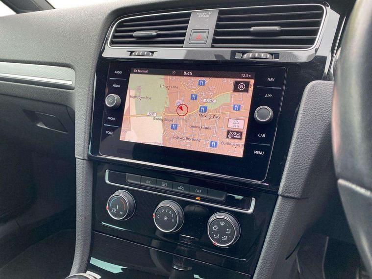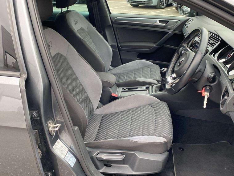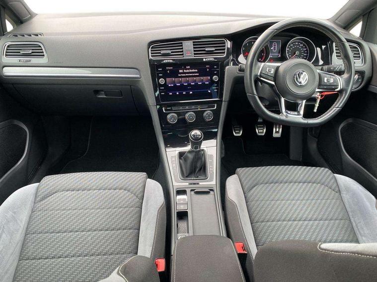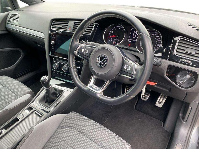 'Lights On' Reminder warning buzzer, 8" touch screen, Adaptive Cruise Control with pedestrian detection and speed limiter, App-Connect, Bluetooth hands free telephone connection, Brake pad wear indicator warning light, Driver alert system, Driver profile selection, Exterior temperature gauge, Front assistant collision mitigation, Instrument cluster in white, Multifunction computer, PAS - speed related, Rev counter, Trip and service interval display, Ultrasonic front and rear optical and audible parking sensors, Warning buzzer and light for front seatbelts unfastened, Lowered sports suspension, XDS electronic differential lock, CD/MP3/WMA, USB and SD card reader, aux-in, Composition media system, DAB Digital radio, Auto dimming rear view mirror, Automatic coming/leaving home lighting function, Automatic headlights, Black front air intake and radiator grille with chrome insert, Black sports rear diffuser, Body colour bumpers, Body colour door handles, Body colour door mirrors, Body colour rear roof spoiler, Chrome grille surround, Chrome trapezoidal exhaust, Electric front windows, Electric rear windows, Electrically adjustable and heated door mirrors, Heat insulated tinted glass 65% light absorbing from B pillar back, Heated rear windscreen, LED daytime running lights, LED rear lights, Rain sensor, Rear windscreen washer and wiper with interval delay, Stainless steel door sill protection, 12V socket in luggage compartment, 3 rear headrests, 3 spoke steering wheel, 60/40 split folding rear seat, Bag hook in luggage compartment, Black headlining, Boot lashing points, Cooled glovebox, Courtesy light delay, Cover for storage compartment in centre, Dust/pollen filter, Front + rear carpet mats, Front centre armrest with storage box and rear air vents, Front passenger seat height adjust, Front reading lights, Front seat back storage pockets, Grab handles, Height/reach adjust steering wheel, Illuminated vanity mirrors, Isofix preparation for 2 rear child seats, Leather gear knob and handbrake grip, Load through provision with rear centre armrest and cupholders x2, Luggage compartment cover, Luggage compartment lighting, Multifunction leather steering wheel with grey stitching leather trimmed gear knob including paddle shift, Overhead storage box, Stainless steel pedals, Storage box in luggage compartment, Storage compartments in doors, Sun visors, Variable boot floor, height adjustable and removable, Ambient lighting pack - Golf, Mirror pack - Golf, 3 point height adj front seatbelts + pretensioners, 3 rear 3 point seatbelts, ABS, Automatic post collision braking, Child locks on rear doors, Driver/Front Passenger airbags, Driver/Passenger whiplash optimised head restraints, Drivers knee airbag, Electronic parking brake with auto hold, ESP with EDL + ASR, Front and rear curtain airbags, Front passenger airbag deactivation, Front side airbags, Pre crash system, Tyre pressure monitor, Alarm with interior protection, Electronic engine immobiliser, Remote central locking with 2 remote folding keys, Chrome-plated light switch surround, Dark Diamond decorative inserts in dash and door panels, Piano black centre console with aluminium inlay, Steel space saver spare wheel,