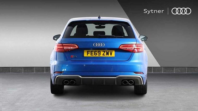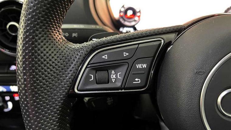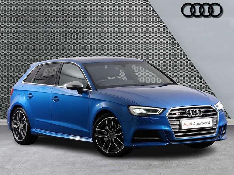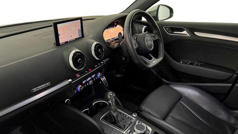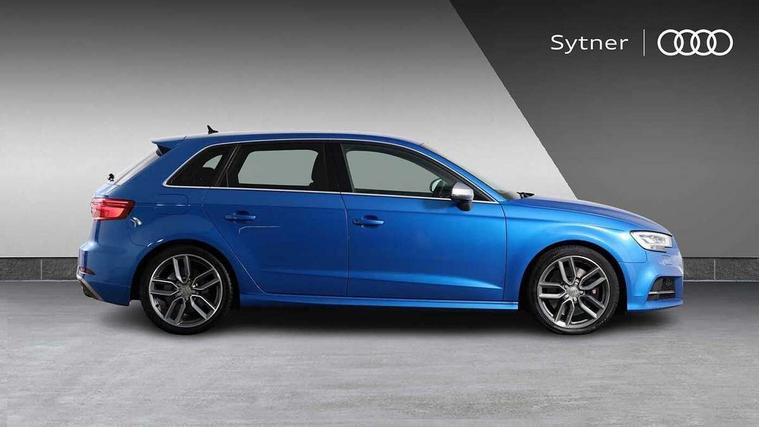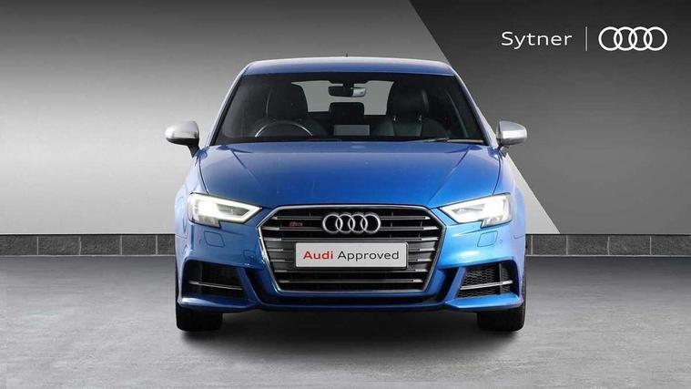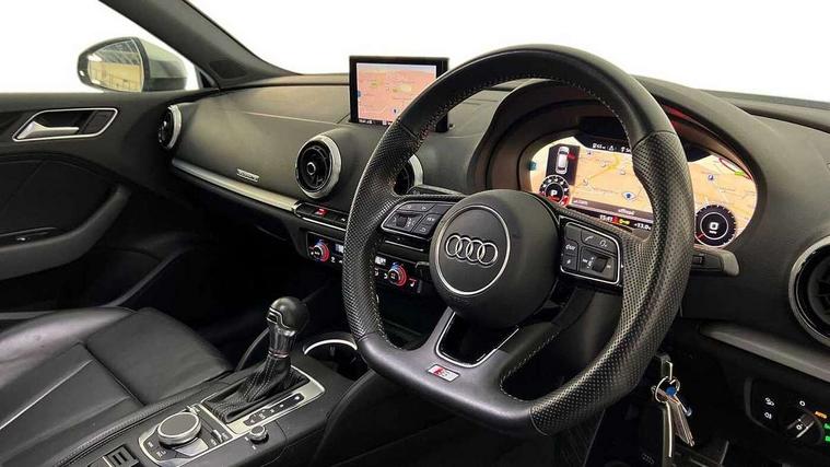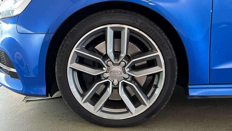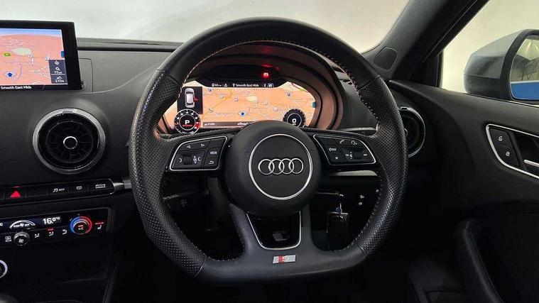 Audi connect, Audi smartphone interface, Automatic start/stop system, Colour driver's information system display, Instrument dials with S3 logo, Mobile telephone preparation - bluetooth interface, Progressive power assisted steering, SD card based MMI navigation, Service interval indicator, Speed limit display, Voice control system, Voice recognition for navigation system, Quattro permanent four wheel drive, S sports suspension, 2 USB interfaces and Aux-In jack, Audi music interface, CD player, DAB Digital radio, MMI radio plus with 7" colour MMI screen and MMI controller, Online entertainment, Aluminium door mirror housings, Aluminium window trim, Audi Beam uses LEDs to project the Audi Sport logo, Auto dimming interior rear view mirror, Electric front windows, Electric rear windows, Electrically adjustable and heated door mirrors with integrated LED side indicators, Headlight washers, Heated windscreen washer jets, LED daytime running lights, Light and rain sensors, Matt black radiator grille, Rear wiper, S body styling with front bumper 'S' specific air intake grille, rear diffuser with platinum grey insert, roof spoiler, Sport specific side air inlet grille and diffuser insert, Twin oval chrome trimmed exhaust tailpipes, 3 adjustable rear headrests, 3 spoke leather multifunction sports steering wheel with paddle shift gear change controls, 4 lashing points to secure luggage, 60/40 split folding rear seat, Adjustable front centre armrest, Aluminium door sill trims, Black cloth headlining, Dual zone electronic climate control, Front and rear interior lights with delay, Front/rear floor mats, Height and reach adjustable steering wheel, Illuminated door sill trims with S logo, Isofix child seat preparation for front passenger/outer rear seats inc passenger airbag deactivation, Manual height adjustable front seats, Stainless steel pedals, Storage compartments in doors side trims, centre console and under front drivers seat, LED interior light pack - A3/RS3, Non smoking pack - A3, Storage and luggage pack - A3/RS3, 3 point seatbelts on all seats, ABS/EBD, Active bonnet, Active front headrests, Airbags - front driver/passenger, front & rear side, curtain, drivers knee, ASR, EDL, Electromechanical parking brake, ESC - Electronic Stability Control + traction control, Front passenger airbag deactivation, Hill hold assist, Manual rear child locks, Multi-Collision braking, Seatbelt warning, Tyre pressure warning, Warning triangle and first aid kit, Anti theft alarm, Anti-theft wheel bolts, Remote control central locking, Thatcham category 1 alarm + immobiliser, Aluminium air vent surrounds, Aluminium trim elements, Matt brushed aluminium inlays, Tool kit, Tyre repair kit,