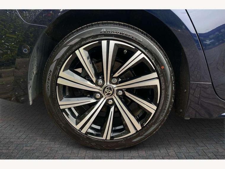 7" Multi information display screen, Bluetooth telephone connectivity, Connected car functionality upgrade, tracker, remote status and e-care, Door trim and centre console material, Dynamic radar cruise control (with RSA) including switch on steering wheel, E-call, Electrically assisted power steering, EV drive indicator, Intelligent park assist, Lane Departure Alert (LDA) switch on steering wheel, Memory on adjustable speed limiter, Push button start, Reversing camera, Smartphone integration with Apple CarPlay and Android auto, Gasoline particulate filter, Vehicle Stability Control (VSC), 6 speakers, 8" Touchscreen with MM19 Multimedia system and voice recognition, AM/FM radio, DAB Digital radio, Toyota touch 2 with go navigation system, USB and Aux in connectors + 12V front outlet, USB charging port in centre storage box, Aluminium roof rails, Anti-jam protection on power windows, Auto dimming inside rear view mirror, Auto up and down function on all power windows, Automatic folding mirrors, Automatic headlights with high beam assist, Black metallic surround on lower front grille, Black toyota logo in front, Body colour rear spoiler, Body coloured bumpers, Body coloured door mirrors, Body coloured outside door handles, Follow me home headlights, LED daytime running lights, LED front fog lights, LED Headlights, LED High mounted stop light, LED rear combi lights with LED lightguide, Noise reduction layer on front windows, Power adjustable heated door mirrors, Power front windows, Power rear windows, Privacy glass, Rain sensing wipers, Rear side wing doors, Rear window defogger, Rear window wiper, Reverse tilting door mirrors, Shark fin antenna, Time adjustment on intermittent wiper, Turning signal integrated indicators in door mirrors, Unique lower skirt, Unique side rocker with black insert, UV-filter on driver and passenger windows, 12v power outlet - luggage side, 3 rear headrests, 3 seat bench in 2nd row, 3 spoke leather steering wheel + gear knob, 60/40 split folding rear seat, Adjustable speed limiter switch on steering wheel, Audio, multimedia and telephone switches on steering wheel, Blue ambient interior illumination to centre tray, front cup holders and front door trim, Boot light, Boot underfloor storage, Clean air filter, Driver and front passenger personal light, Driver and passenger assist grip, Driver and passenger sun visor with mirror and light, Dual sided deck board in boot, Dual zone automatic air conditioning with ECO mode switch, Fabric/synthetic leather upholstery, Front and rear cup and bottle holders, Front and rear door pockets, Front head restraints, Front passenger seat, Heated driver and front passenger seats, Illuminated entry system in room lamp, ISOFIX seat fixing (2 fixings on rear outer seats), Leather gear shift with satin chrome on gear shift console, Leather style armrests, Manual height adjustable for driver and front passenger seat, Passenger seat back pocket, Pollen filter, Power adjustable lumbar support on driver seat, Power window switches with satin chrome inserts, Rear armrest with 2 cupholders, Rear passenger air vents, Rear passenger coat hooks (2), Rear passenger personal lights, Retractable tonneau cover with luggage partition net, Satin chrome inside door handles, Shopping bag hooks in luggage compartment, Side storage in boot, Sliding armrest on centre console box, Slow opening glovebox with lights, Tilt/telescopic steering column, Tonneau cover with under floor storage, Voice recognition switch on steering wheel, Whiplash Injury Lessening (WIL) feature (active headrest) for seats, Parking pack - Corolla, Toyota safety sense 2 pack - Corolla, 3x3 point rear seatbelts, Adjustable driver and front passenger seat belt extender to top anchor point, Anti lock braking system + Electronic brake force distribution, Brake assist function, Child locks on rear doors, Downhill Assist Control (DAC), Electronic parking brake, Emergency brake light signal (EBS), Front passenger airbag on/off switch, Front seatbelt reminder, HAC - Hill start assist control, Rear seat belt reminder, Seatbelt pretensioners and force limiters, Supplemental restraint system (SRS) 7 airbags - dual driver, dual side curtain, side impact and driver knee airbags, Traction control, Tyre pressure warning system, Acoustic vehicle alert system (AVAS), Alarm with motion sensor and immobilizer, Remote central locking + deadlocks, Smart entry, Satin chrome dash trim, Soft touch texture on upper dashboard, Stitching on lower dashboard, Tyre repair kit, Unique wheel finish with red wheel cap,