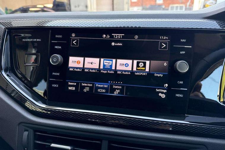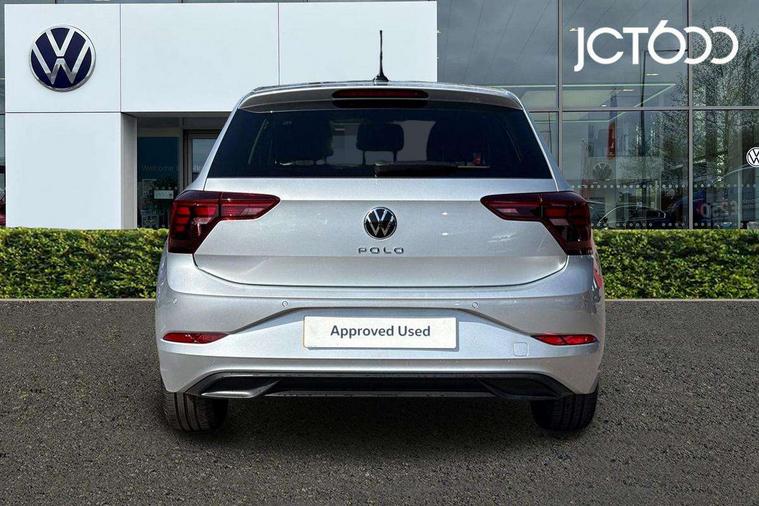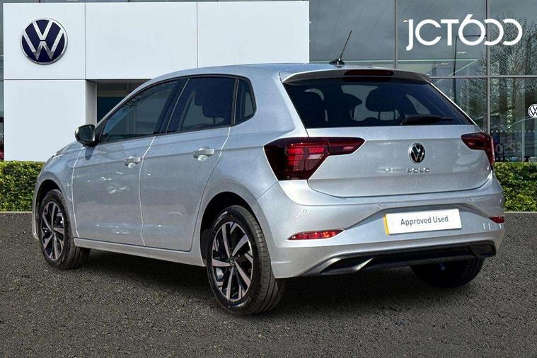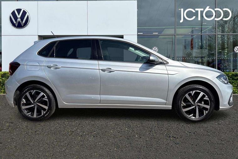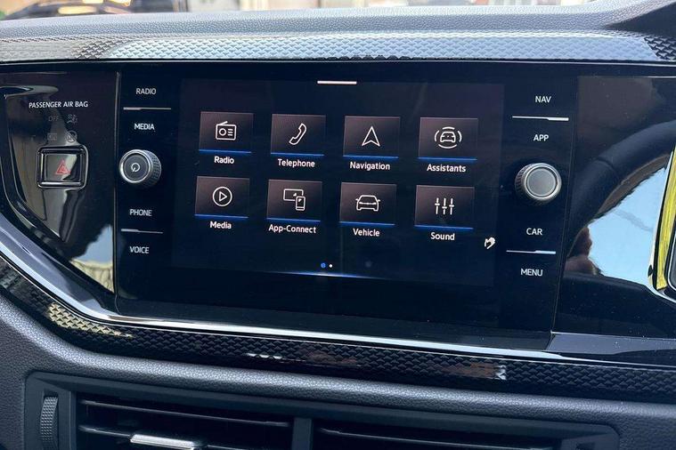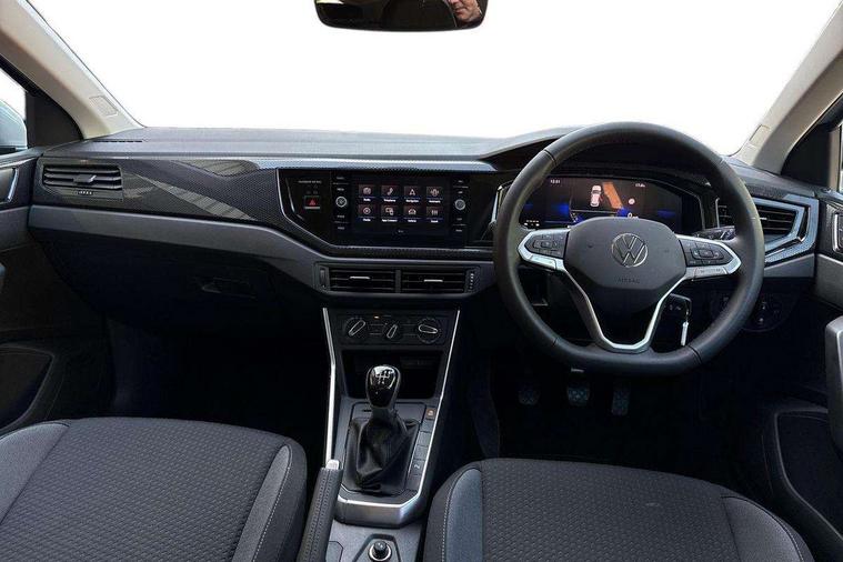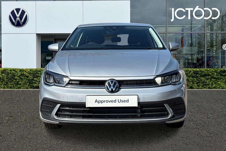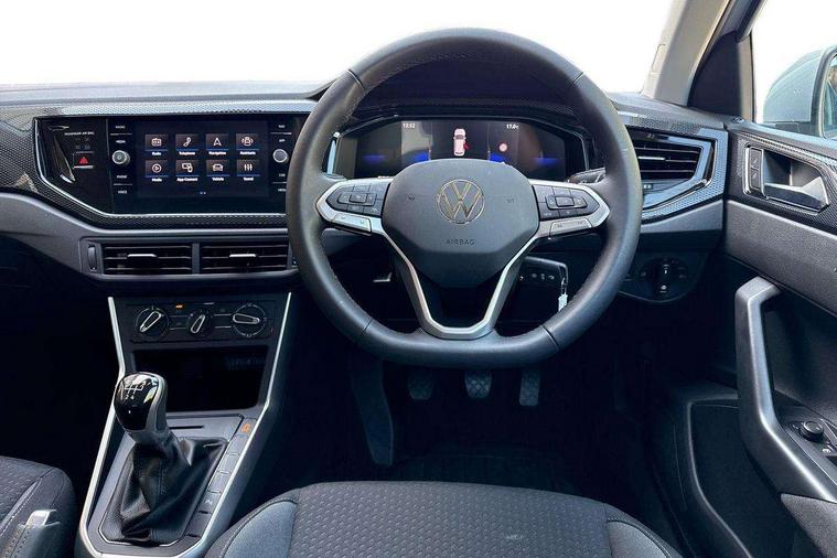 Bluetooth mobile phone interface, Driver attention monitor driver alert system, Dynamic road sign display, Emergency call service, Mobile phone preparation with inductive charging function, Multifunction front facing camera for distance control, Park distance control, Power assisted speed sensitive steering, Predictive adaptive cruise control, Preparation for navigation system with media and internet package, Preparation for We connect and We connect plus, Rear view camera, Speedo and rev counter, electronic odometer, trip, service interval display and exterior temperature gauge, Standard rear axle, Travel Assist - Lane keeping system and traffic jam assist, Travel assist including emergency assist, Trip computer, Warning signal and warning light for front and rear seatbelts not fastened, Washer fluid level indicator, Wireless app connect, Front wheel drive, Rear shock absorpion, Start-stop system with battery regeneration (recuperation - energy recovery during braking), DAB Digital radio, Diversity antenna for FM reception, Body colour bumpers with chrome inserts, Body colour door handles, Body colour door mirrors, Electric front windows, Engine badge deletion, Headlight range adjustment, Heat insulating and laminated safety glass windshield, LED 3rd brake light, LED Headlights, LED rear combination lamps, Power folding adjustable/heated exterior mirrors and front passenger exterior mirror lowering function, Rear electric windows, Rear fog light, Rear side wing doors, Rear tinted glass from B-pillar backwards approx 65% tinted, Rear windscreen washer and wiper with interval delay, 12V power socket in centre console, 2 front and 2 rear reading lights with switch off delay and dimmer, 2 USB-C ports in the front, 2 USB-C charging sockets on the center console in the rear, 3 rear head restraints, 60/40 split folding rear seat and rear seat bench not split, Carpet mats, front and rear, Ceramique roof lining, Chrome plated radiator grille inserts, air vent surrounds and light switch surrounds, Door and side trim panel, Driver and front passenger seat height adjustment, Driver/passenger sunvisors with illuminated vanity mirrors, Front centre armrest, Front seat backrest storage pockets, Front standard seats, Handbrake lever handle in leather, Hartley/Thomas cloth upholstery, Headliner in recycled material, Isofix child seat preparation easy-fit (for two outer rear seats, and front passenger seat) compatible with I-size, Leather trimmed gear knob, Luggage compartment lighting, Removable luggage compartment cover, Removable luggage compartment floor, Single front passenger seat, Standard climatic zones, Standard pedal cluster, Three spoke leather wrapped multifunction steering wheel, Carpet mats pack - Polo, Light and vision pack - Polo, 3 point height adj front seatbelts + pretensioners, 3 point seat belt for centre rear seat, 3 point seatbelts, outer rear with ECE lable, ABS, Driver and front passenger airbag with front passenger airbag deactivation, Drivers and front passengers safety optimised head restraints, ESC (Electronic stability control) + EDL (Electronic Differntial lock) and ASR (Traction control), Extended and predictive pedestrian/ cyclist protection, Front assist with autonomous emergency braking (for Adaptive Cruise Control ACC up to 130 mph), Front curtain and side airbags with center airbag, Front disc brakes, Hill start assist, Manual child lock in rear doors, Rear drum brakes, Single tone horn, Tyre pressure loss indicator, Alarm with interior protection, Anti-theft alarm system with interior monitoring, backup horn, and towing protection, Anti-theft wheel bolts, Electronic engine immobiliser, Lava stone black gloss/matt decorative inserts in dash and front door panels, 16" Torsby alloy wheels, Low rolling resistance tyres,