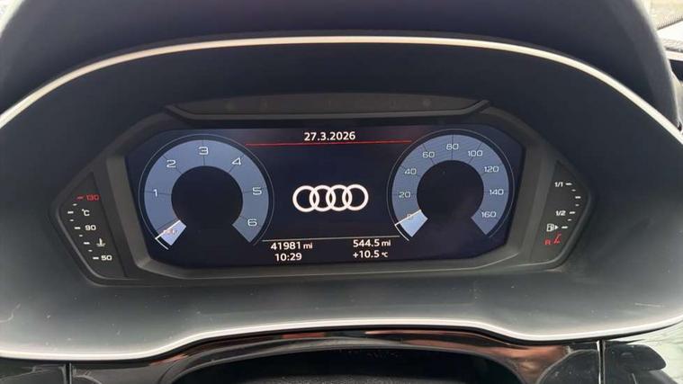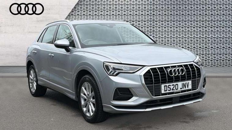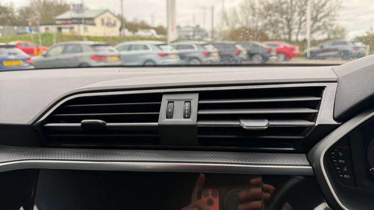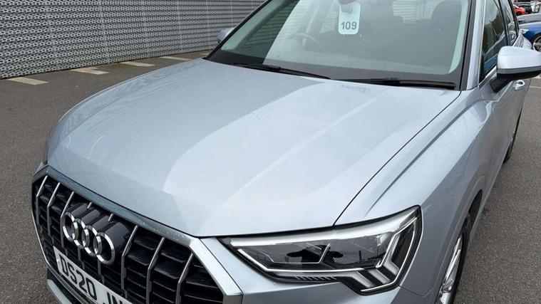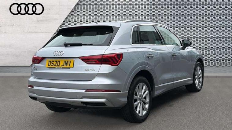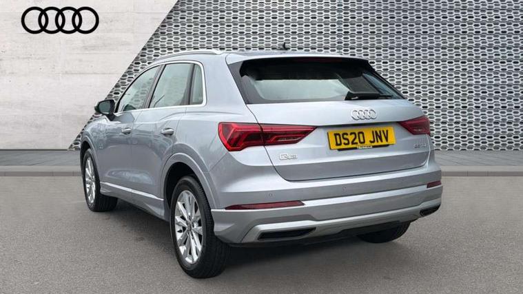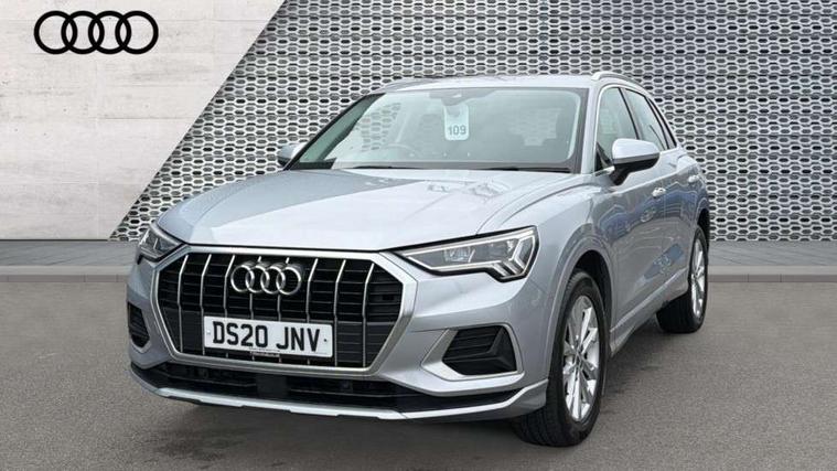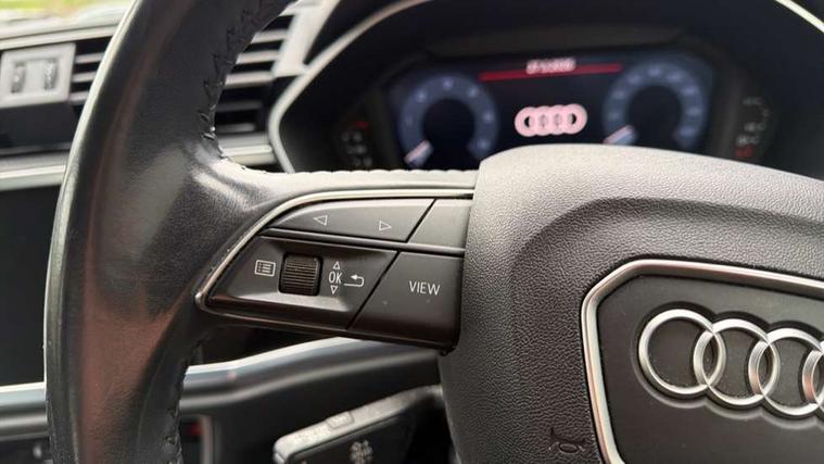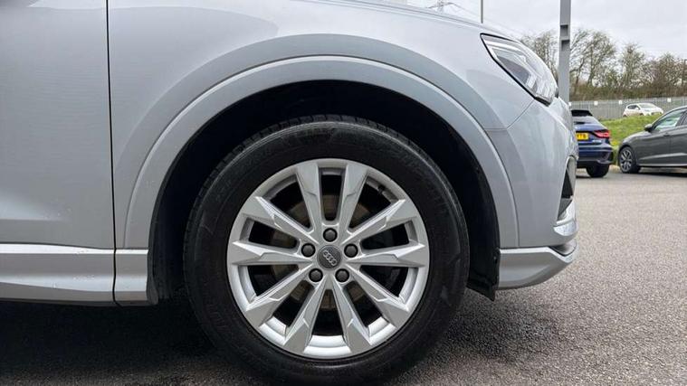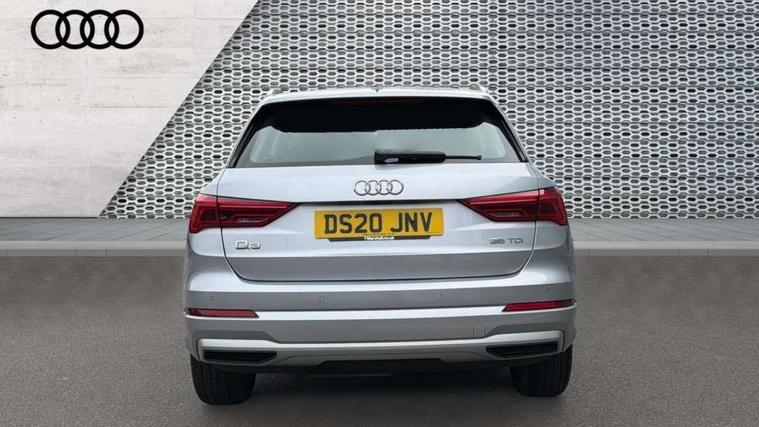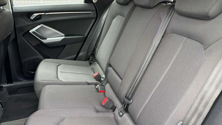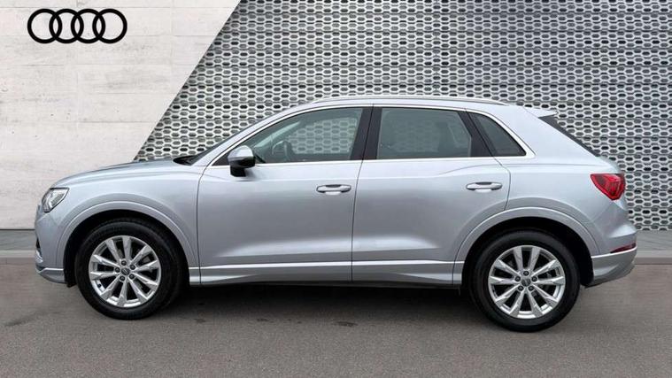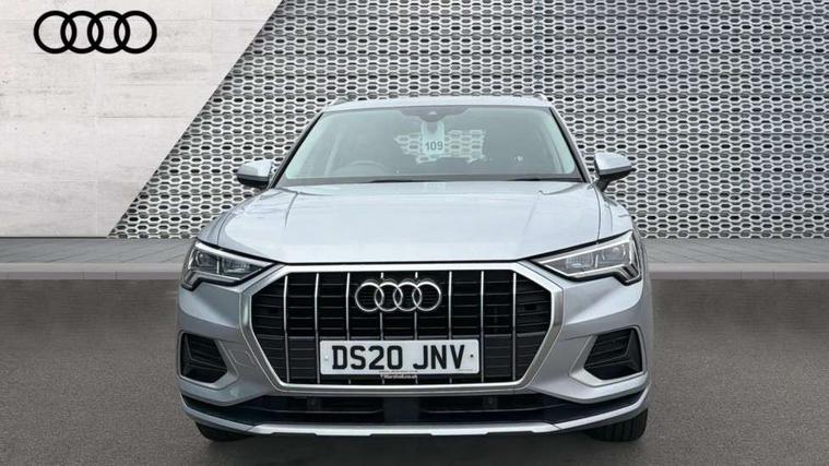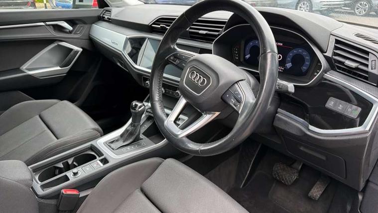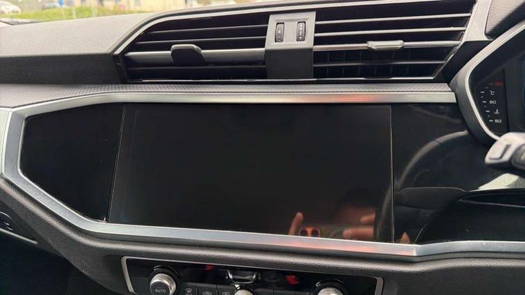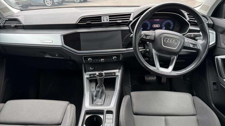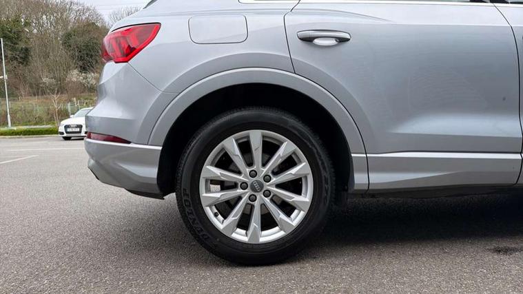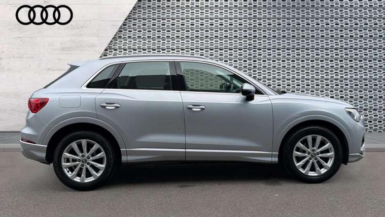 Audi connect safety and service (e-call), Audi drive select, Audi lane departure warning, Audi side assist, Audi smartphone interface includes wireless Apple carplay/Android Auto, Audi Virtual Cockpit - 10.25" display, Bluetooth interface, Camera based traffic sign recognition, MMI Navigation Plus with high resolution 10.1 inch touchscreen colour display, Power operated tailgate, Progressive steering, Service interval indicator, Start stop system with recuperation, Voice control system with natural language interaction, Diesel particulate filter, Standard suspension, 1 x USB type C and 1 USB type A charging points, 6 passive loudspeakers, DAB digital radio module, Acoustic windscreen, Aluminium roof rails, Aluminium window trim, Auto dimming frameless rear view mirror, Body coloured bumpers, Electrically folding, adjustable and heated door mirrors with integrated LED side indicators and kerb view function for passenger side, Front and rear electric windows, Front fog lights, Front side air inlets in matt selenite silver, Front spoiler in matt selenite silver, Grille vertical bars in aluminium silver/Matt, High gloss black finish B and C pillars, LED headlights with LED daytime running lights and dynamic rear indicator, LED rear lights, Rain and light sensors, Rear diffuser strip in matt selenite silver, Silver chrome grille surround, Titanium black radiator grille, 12V socket in rear centre console, 40:20:40 folding with manual adjustment for 60:40 forwards/backwards position and backrest angle, Adjustable rear seat bench/backrest, Aluminium door sill trims, Dual zone electronic climate control, Front and rear floor mats, Front and rear headrests, Front and rear roof module including reading lights, Front centre armrest, Glove compartment lighting, Height and reach adjustable steering wheel, ISOFIX child seat mounting for front passenger with airbag deactivation and outer rear seat including top tether attachment point for outer rear seats, Luggage compartment light, Lunar silver cloth headlining, Manual front seats with height adjustment, Stainless steel luggage compartment sill finisher, Non smoking pack - Q3, 3x3 point rear seatbelts, 6 airbags - Driver, front passenger, curtain and side windows, Electrically operated child locks on rear doors, Electromechanical parking brake, Electronic stabilisation control including ABS, ASR and EDL, Hill descent control, Hill hold assist, Pre sense basic, Seatbelt monitoring, Tyre pressure warning, Warning triangle and first aid kit, Anti theft alarm, Anti theft wheel bolts, Audi pre-sense front with pedestrain and cyclist recognition, Remote central locking, Micrometallic silver inlay, MMI touch colour display in glass look, black with surround in aluminium look,