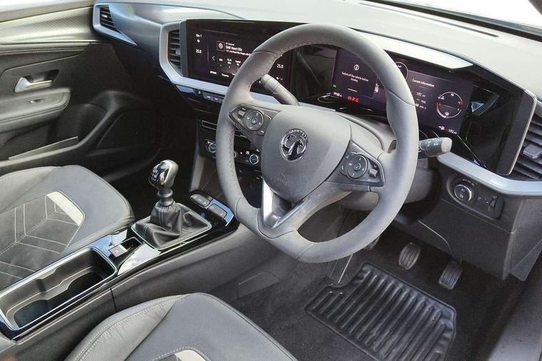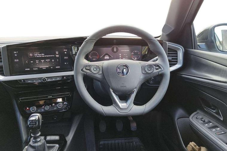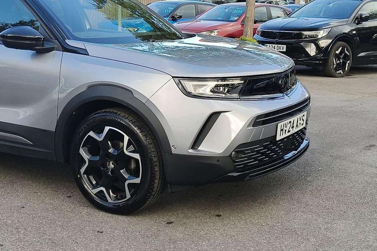 12" digital instrument cluster, Adaptive cruise control with speed limiter, Digital instrumentation with digital speedometer, rev counter, fuel and water temperature gauge, Driver drowsiness alert system, Driver information display with multi function trip computer, audio info, digital clock and outside air temperature with ice warning function, Engine start/stop button, EV information display, Extended traffic sign recognition, Front and rear parking distance sensors, Front camera and radar system, Gearshift up/down indication light, Lane keep assist system (LAS) with Lane departure warning system (LDWS), Lights on audible warning, Panoramic rear view camera, Power assisted speed sensitive steering, RDS with traffic programme, Side blind spot alert and flank guard, Smartphone integration compatible with Apple CarPlay and Android Auto, Sports switch with engine sound enhancement, Start/stop system, Vauxhall connect with e-Call, 6 speed manual transmission, 6 speakers, AM/FM stereo radio with 36 station presets, DAB Digital radio, Flexible Roof Mounted Radio Aerial, Front USB connection, Mobile phone portal - bluetooth connect, vehicle microphone, handsfree calls, SMS read out and reply, phone book access, Multimedia Navi Pro with 10" colour touchscreen, Steering wheel mounted controls, Two rear USB sockets, Adaptive brake lights, Auto high beam assist, Automatic headlamp levelling, Automatic lighting control with tunnel detection, Automatically dimming anti dazzle rear view mirror, Black door mirror housings, Black front and rear bumper inserts, Black Griffin logo and vizor frame, Black upper window moulding, Body colour door handles, Body colour front and rear bumpers, Dark tinted rear side windows + tailgate window, Electric adjustable/heated/folding door mirrors + puddle lights, Electrically operated front and rear windows with safety auto reverse and one touch up/down facility, Hazard warning lights, Heated rear window+rear wash/wipe, Integrated black tailgate spoiler, IntelliLux Matrix LED headlights with adaptive forward lighting with anti glare beam, LED 3rd brake light, LED daytime running lights, LED front fog lamps, LED side repeat indicators, LED tail lights, Rear foglight, Rear side wing doors, Reversing light, Solar heat absorbing windscreen and windows, Two speed rain-sensitive windscreen wipers with variable intermittent wipe, Windscreen and side window demist vents, 12V Accessory socket, 3 seat bench in 2nd row, 3 spoke flat bottomed leather effect steering wheel with satin chrome effect bezel, 4 speed fan with illuminated controls, 4 Way driver seat with lumbar and massage function, 6 way manual adjustable driver fore/aft, up/down with reclining seatback, 6 way manual adjustable front passenger fore/aft, up/down with reclining seatback, 60/40 split folding rear seat, Air recirculation system, Alcantara/leather upholstery, Black headliner, Cabin particulate filter - removes dust, airborne particles and pollen, Centre console with two cup holders at front and one in rear, Chrome effect interior door handles, Door pockets with two litre capacity, Driver and passenger sun visors with vanity mirror, Electronic climate control (ECC), Four adjustable facia vents, Four load restraint lashing eyes, Front centre armrest with storage, Front head restraints, Front map reading lights, Front seat back storage pockets, Fully carpeted load area, Heated front seats, Heated steering wheel, Interior courtesy light, Interior tailgate handle, Luggage compartment cover, Luggage compartment lighting, Movable boot floor, Reach + rake adjustable steering column, Single front passenger seat, Three height adjustable rear seat head restraints, Twin gas assisted tailgate struts, Black Pack with badge - Mokka, 2x Isofix child seat fitting on outer rear seats, 3x3 point rear seat belts, Anti-lock braking system (ABS), Child proof locks on rear doors, Cornering brake control, Deactivation switch for front passenger front and side impact airbags, Drag torque control, Driver and front passenger airbags, front seat side impact airbags, full size curtain airbags, Electronic brake force distribution, Electronic Stability Programme (ESP), Emergency brake assist, Enhanced automatic emergency braking with pedestrian detection, Forward collision alert at all speed, Hill start assist, Inertia reel lap and diagonal seatbelts for all seats, Seatbelt unfastened audible warning and warning light, Straight line stability control, Traction control, Tyre pressure monitoring system, Electronically protected audio equipment, Engine deadlock immobiliser, Freewheeling door locks, Key left in ignition audible warning, Keyless entry and start, Locking wheel nuts, Remote control central locking, Remote control ultrasonic security alarm system, Visible vehicle identification number, Black facia with silver trim insert, Instrument panel bar in polar silver, Light grey trim inserts on front doors, 18" bi colour alloy wheels,