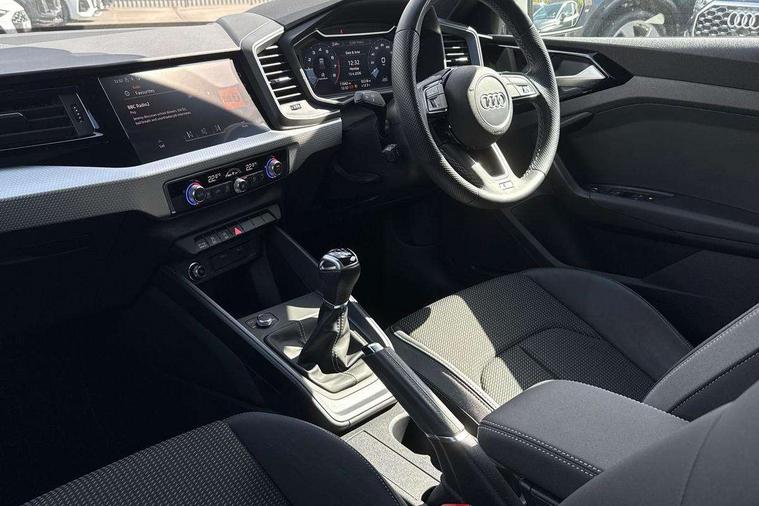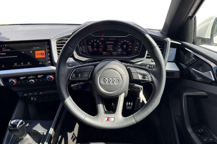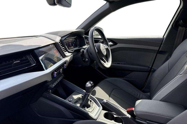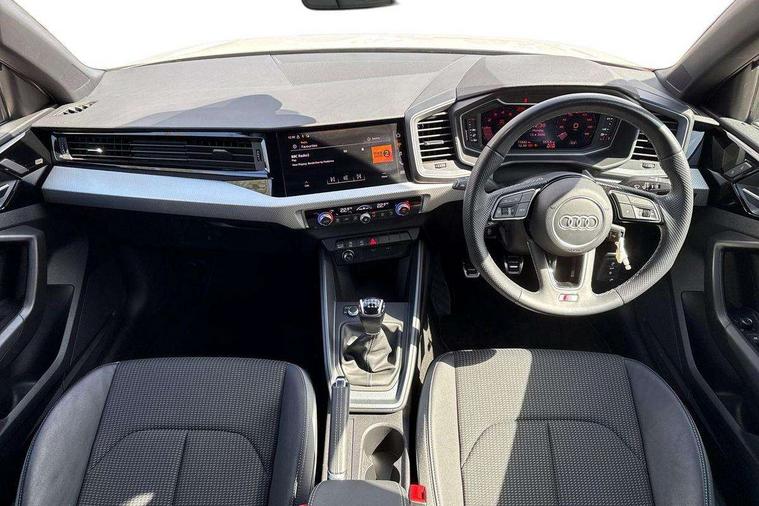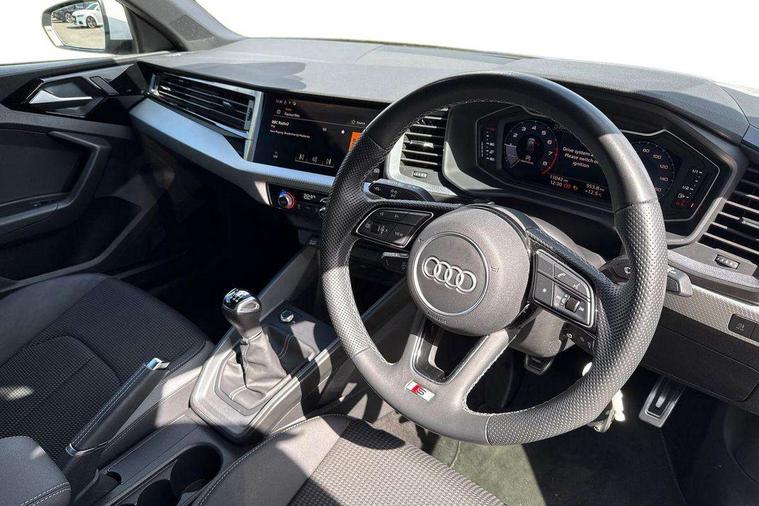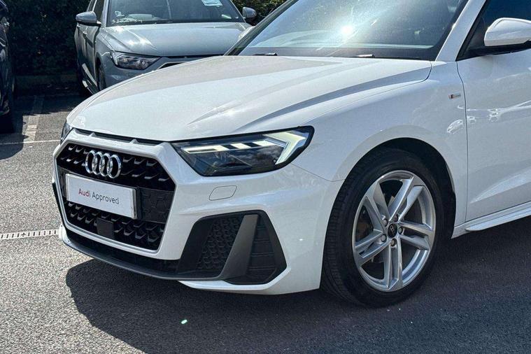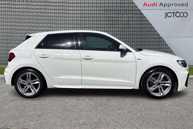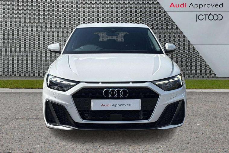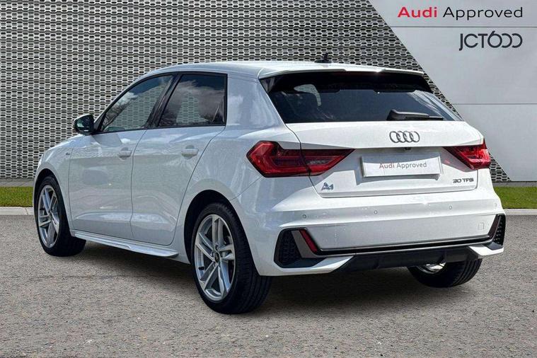 10.25" Digital instrument cluster display classis style instrument dials + speed, odometer, time, outside temperature, telephone menu + fuel level warning, Audi drive select - power steering assistance + engine, Audi smartphone interface with connect compatible smartphone via USB directly MMI display + Nav, music, third party apps controlled via MMI controller, Automatic start/stop system, Bluetooth interface, Cruise control, Driver's information system, Electromechanical power steering, Emergency e-call, Emergency services call system, Lane departure warning system, Service interval indicator, Speed limiter, Voice control system, Washer fluid level indicator, Sports suspension, 1 x SDXC card reader, 2 x USB type C connection points, DAB Digital radio, MMI radio plus with 8.8" colour MMI display screen and MMI touch, Auto dimming rear view mirror, Body coloured door mirrors, Door sills with aluminium inlays and S Line logo, Electric front and rear windows, Electrically adjustable, heated, folding door mirrors with integrated LED side indicator, Front side air inlets in grained matt black and C frame in anthracite black, Heat insulating glass windscreen and side windows, Heated rear windscreen, High level LED brake light, LED headlights with LED rear lights + dynamic rear indicators + headlight adjustment and high beam, turning light + LED daytime running lights, Radiator grille and rear diffuser in matt anthracite black, Radiator protective grille frame in matt aluminium silver, Rain and light sensors, Rear fog lights, Rear side wing doors, Rear wing door, Rear wiper, S line badges on front wings, Side front spoiler lips in grained matt black, 12V socket in centre console with two cup holders, 3 rear seats with headrests, 3 seat bench in 2nd row, 3 spoke leather multi-function plus steering wheel features S badging and grips in perforated leather with contrast stitching, 40:60 Split folding rear seat or folded fully, Black cloth headlining, Driver and passenger seat with manual height adjust with forward and backwards adjustment, Front and rear black floor mats with contrast stitching in fine silver, Front head restraints, Front passenger seat, Height and reach adjustable steering wheel, ISOFIX child seat mounting for front passenger and outer rear seats including top tether attachment point of outer rear seats, Leather gear knob with aluminium trim, Luggage compartment light with front and rear reading lights, Manually adjustable lumbar support in front seats, Stainless steel pedals, LED interior lighting pack - A1, Luggage compartment pack - A1, S line exterior styling pack - A1 Sportback, 3x3 point rear seatbelts, Audi pre-sense front with pedestrain and cyclist recognition, Brake assist function, Driver and front passenger airbag with front side and head airbags, Electronic Stability Control including ABS, EBD, ASR and EDL, Front passenger airbag deactivation switch, Hill hold assist, Manual rear child locks, Seatbelt height adjustment for front seats, Seatbelt monitoring, Tyre pressure warning light, Warning triangle and first aid kit, Anti theft alarm, Anti theft wheel bolts and loose wheel warning, Immobiliser, Remote central locking with 2 foldaway keys, Aluminium trim for control switches, air vents and digital instrument cluster, Silver grey inlays polygon structure in diamond paint finish, Structured grey accent areas including air vents, door handle recesses and centre console in quartz paint finish,