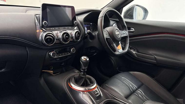 7" full colour TFT screen combimeter, Apple CarPlay and Google Android auto, Drive modes select (Eco, normal and sport), Emergency and breakdown call, Front parking sensor, Idle start/stop system, Intelligent lane intervention, Lane departure warning system, Nissan connect 8" touch screen entertainment system, Nissan connect nav with TomTom traffic, Nissan connect services and Wifi connection, Outside temperature sensor, Power Steering, Rear parking sensor, Traffic sign recognition, Trip computer, Voice recognition, Gasoline particulate filter, 10 Bose speakers 6 speakers and 2 headrest speakers for driver/passenger seats, Bluetooth system, USB, Aux-in and 12V socket, Bose personal sound stage control, DAB Digital radio, Rear console USB port, Auto dimming interior rear view mirror, Auto headlights, Automatic hazard signal with emergency stop signal, Body colour bumpers, Body colour door handles, Electrically adjustable door mirrors with integrated indicators, Follow me home headlights, Front and rear electric window with one touch driver window, Heated and auto folding door mirrors, High beam assist, LED daytime running lights, LED front fog lights, LED headlamps, LED rear fog lamp, LED rear lamps, Rain sensor windscreen wipers, Rear privacy glass, Rear side wing doors, Rear wiper, Thermaclear heated windscreen, Three blink turn signal, 3 height adjustable rear headrests, 3 seat bench in 2nd row, 60/40 split folding rear seat, Automatic climate control, Card holder on driver sunvisor, Door ambient lighting, Driver and passenger sliding and reclining seats, Driver seat back pocket, Driver side rear coat hanger, Driver/passenger sunvisors and vanity mirrors, Front and rear cabin lights, Front armrest, Front door pockets with bottle holders, Front head restraints, Front passenger isofix child seat anchorage point, Front/rear passenger grab handles, Gear console ambient circle lighting, Grey synthetic leather kneepad, Heated front seats, Height adjustable driver's seat, Height adjustable passenger seat, Internal chrome door handles, Leather gearshift knob, Leather steering wheel, Luggage board, Luggage space lighting, Monoform sporty seats, Multifunction steering wheel, Passenger seat back pocket, Rear door bottle holders, Single front passenger seat, Synthetic leather upholstery, Telescopic steering wheel adjustment, Two cupholders in front centre console, Two rear isofix child seat anchorage points with top tether, Welcome light and console tray ambient lighting, Advanced safety shield pack - Juke, ABS with EBD and brake assist, Active ride control, Active Trace Control, Driver and passenger airbags, Driver and passenger side airbags, Electric handbrake with auto hold function, Electronic Stability Programme (ESP), Front and rear curtain airbags, Height adjustable seatbelts, Hill start assist, Intelligent emergency braking with pedestrian and cyclist recognition, Rear door child safety locks, Seatbelt reminder for driver/front passenger and rear seats, Single tone horn, Three 3 point rear seatbelts, Traction control, Tyre pressure monitoring system, VDC Dynamic Vehicle Control, Ventilated rear brake discs, Alarm, Immobiliser, Intelligent key and start push button with walk away lock and approach unlock functions, Remote central locking,