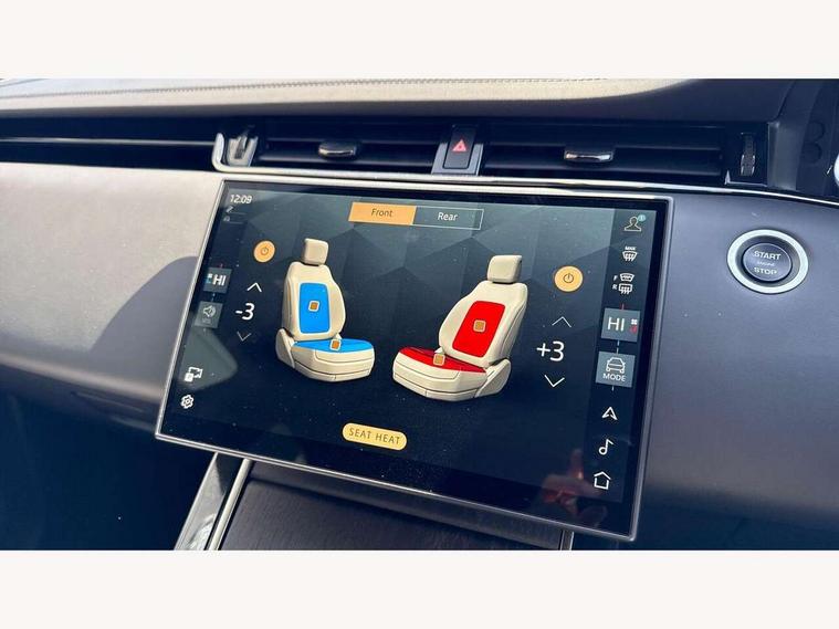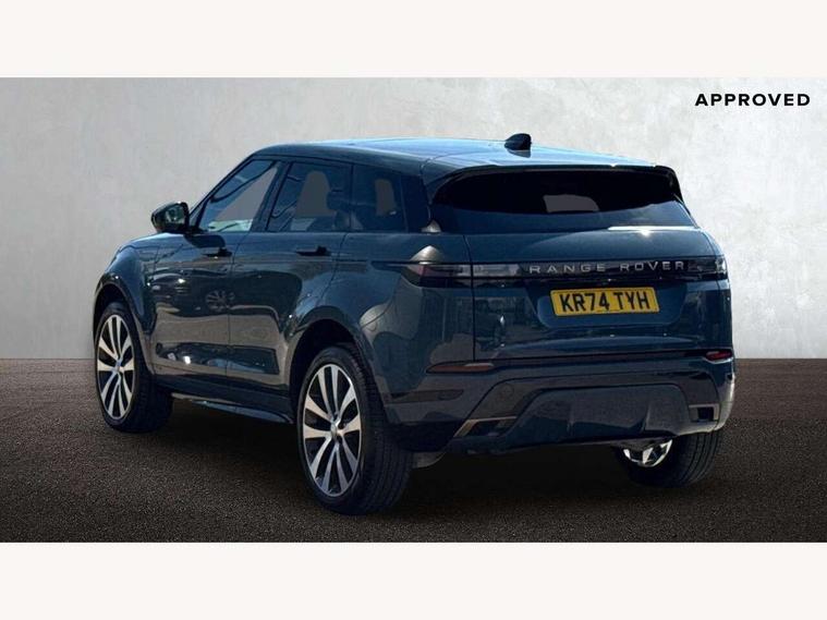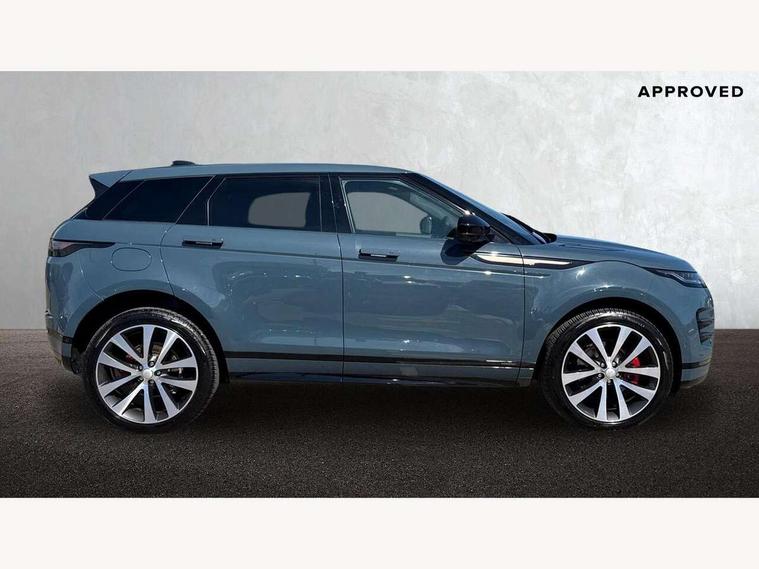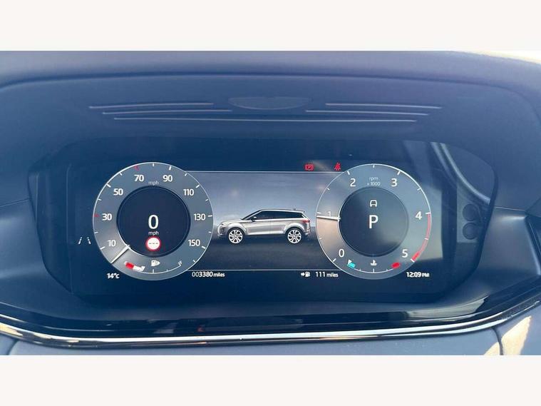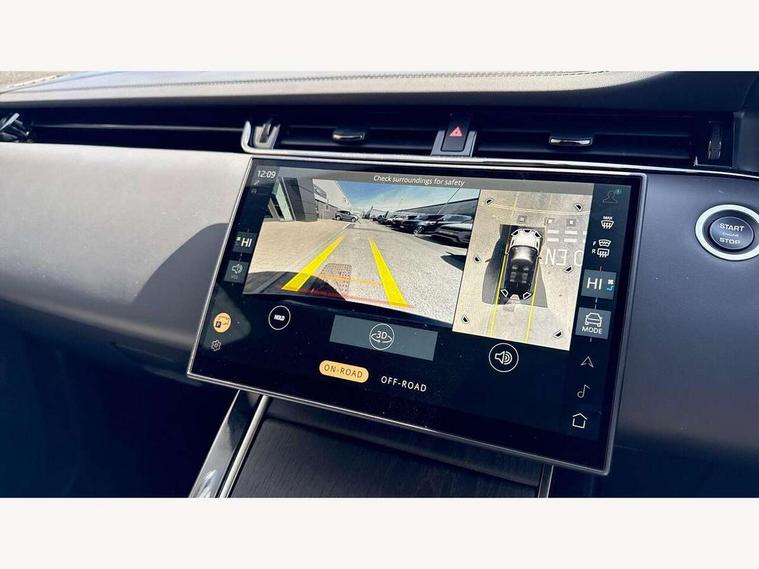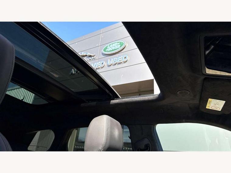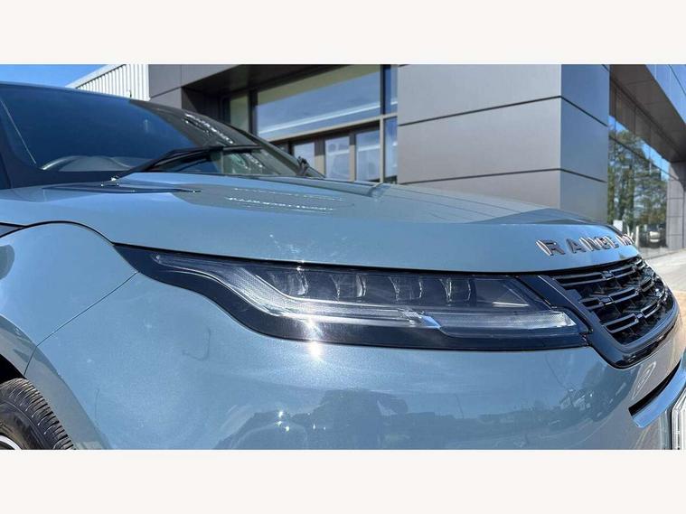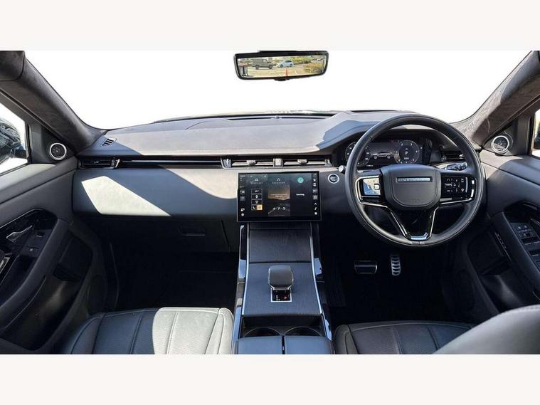 11.4" touch screen, 3D 360 degree surround camera with wade sensing, Adaptive cruise control, Android Auto, Apple car play, Blind spot assist, Bluetooth connectivity, Brake pad wear indicator warning light, Driver condition monitor, eCall emergency system, Eco mode, Electronic power assisted steering (EPAS), Front and rear parking aid, Head up Display, InControl remote, Interactive driver display, Land Rover InControl apps, Lane keep assist, Pivi pro connected includes diamond pivi variant, smart settings, connected navigation pro, nuance speech licence, Powered tailgate/boot lid, Rear collision monitor, Rear traffic monitor, Traffic sign recognition with adaptive speed limiter, Voice control system, Wireless device charging, Adaptive dynamics, All terrain progress control, Configurable dynamics, Diesel exhaust fluid (DEF) large tank, Efficient Driveline, Large fuel tank, Terrain Response 2, Digital Audio Broadcast radio-DAB, Steering wheel mounted controls, Acoustic laminated windscreen, Auto headlights, Automatic headlight levelling, ClearSight interior rear view mirror, Electric windows with one touch open/close and anti trap, Flush deployable exterior door handles, Front and rear recovery eyes, Front fog lights, Heated rear window with timer, Heated washer jets, Heated windscreen, Pixel LED headlights with signature DRL and LED tail Lights, Power fold, auto-dimming, heated door mirrors with approach lights and auto dimming driver side, Rain sensing windscreen wipers, Range rover branding illuminated metal tread plates in loadspace and row 1 with brand name script and metal in row 2, Rear animated directional indicators, Rear fog lights, Rear side wing doors, Rear wiper, Side repeater indicators in mirror, Sliding panoramic roof with powered sunblind, Tailgate spoiler, Third brake light, Winter wiper park position, 14 way driver memory electric front seats with 2 way manual headrests + 4 way lumbar support, bolsters, 40:20:40 split folding rear seats with centre headrest and armrest, Ambient interior lighting, Bright metal pedals, Cabin Air Purification plus, Configurable cabin lighting, Customer configurable single point entry, Electrically adjustable steering column with memory function and easy entry/exit, Front and rear cupholders, Heated and cooled front seats, Heated rear seats, Heated steering wheel, Isofix system on outer rear seats, Overhead lighting console, Overhead stowage for sunglasses, Passive front head restraints, Premium carpet mats, Rear air vents, Rear head restraints, Satin chrome gearshift paddles, Single passenger seat, Sunvisors with illuminated vanity mirrors, Twin sliding front centre armrest, Online pack with data plan - Evoque, Power socket pack 2 - Evoque, 3 rear 3 point seatbelts, Anti-lock braking system (ABS), Brake hold function, Customer configurable autolock, DSC - Dynamic Stability Control, Electronic brake force distribution, Electronic parking brake, Electronic traction control, Emergency braking, Front and rear seatbelt reminder, Hill descent control, Hill launch assist, Low traction launch, Occupant protection assist, Passenger seat occupant detector, Power operated child locks, Roll stability control, Six airbags - Driver and passenger airbags/driver knee airbag/front side airbag and curtain airbags, Torque vectoring brake, Tyre pressure monitoring system, Alarm, Immobiliser, Intrusion sensor, Keyless entry, Locking wheel nuts, All season tyres,