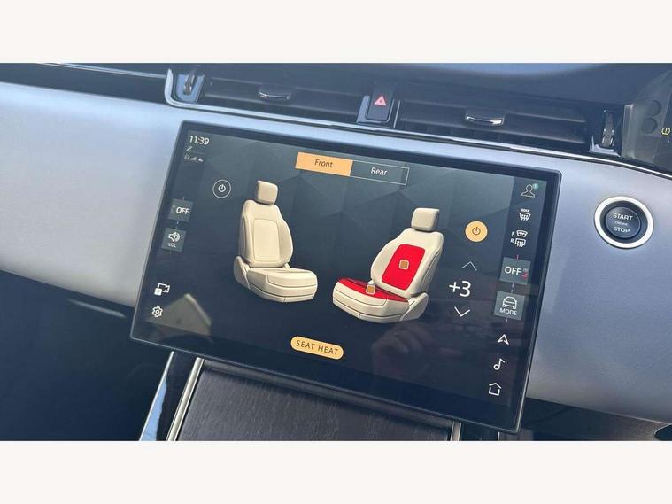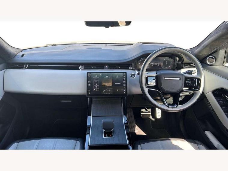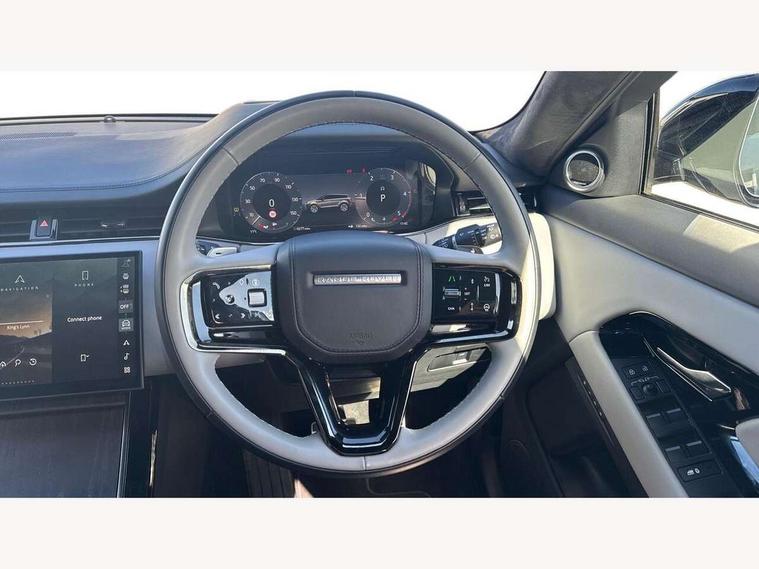 11.4" touch screen, 3D 360 degree surround camera with wade sensing, Adaptive cruise control, Android Auto, Apple car play, Blind spot assist, Bluetooth connectivity, Brake pad wear indicator warning light, Driver condition monitor, eCall emergency system, Eco mode, Electronic power assisted steering (EPAS), Front and rear parking aid, Head up Display, InControl remote, Interactive driver display, Land Rover InControl apps, Lane keep assist, Pivi pro connected includes diamond pivi variant, smart settings, connected navigation pro, nuance speech licence, Powered tailgate/boot lid, Rear collision monitor, Rear traffic monitor, Traffic sign recognition with adaptive speed limiter, Voice control system, Wireless device charging, Adaptive dynamics, All terrain progress control, Configurable dynamics, Diesel exhaust fluid (DEF) large tank, Efficient Driveline, Large fuel tank, Terrain Response 2, Digital Audio Broadcast radio-DAB, Steering wheel mounted controls, Acoustic laminated windscreen, Auto headlights, Automatic headlight levelling, ClearSight interior rear view mirror, Electric windows with one touch open/close and anti trap, Flush deployable exterior door handles, Front and rear recovery eyes, Front fog lights, Heated rear window with timer, Heated washer jets, Heated windscreen, Pixel LED headlights with signature DRL and LED tail Lights, Power fold, auto-dimming, heated door mirrors with approach lights and auto dimming driver side, Rain sensing windscreen wipers, Range rover branding illuminated metal tread plates in loadspace and row 1 with brand name script and metal in row 2, Rear animated directional indicators, Rear fog lights, Rear side wing doors, Rear wiper, Side repeater indicators in mirror, Sliding panoramic roof with powered sunblind, Tailgate spoiler, Third brake light, Winter wiper park position, 14 way driver memory electric front seats with 2 way manual headrests + 4 way lumbar support, bolsters, 40:20:40 split folding rear seats with centre headrest and armrest, Ambient interior lighting, Bright metal pedals, Cabin Air Purification plus, Configurable cabin lighting, Customer configurable single point entry, Electrically adjustable steering column with memory function and easy entry/exit, Front and rear cupholders, Heated and cooled front seats, Heated rear seats, Heated steering wheel, Isofix system on outer rear seats, Overhead lighting console, Overhead stowage for sunglasses, Passive front head restraints, Premium carpet mats, Rear air vents, Rear head restraints, Satin chrome gearshift paddles, Single passenger seat, Sunvisors with illuminated vanity mirrors, Twin sliding front centre armrest, Online pack with data plan - Evoque, Power socket pack 2 - Evoque, 3 rear 3 point seatbelts, Anti-lock braking system (ABS), Brake hold function, Customer configurable autolock, DSC - Dynamic Stability Control, Electronic brake force distribution, Electronic parking brake, Electronic traction control, Emergency braking, Front and rear seatbelt reminder, Hill descent control, Hill launch assist, Low traction launch, Occupant protection assist, Passenger seat occupant detector, Power operated child locks, Roll stability control, Six airbags - Driver and passenger airbags/driver knee airbag/front side airbag and curtain airbags, Torque vectoring brake, Tyre pressure monitoring system, Alarm, Immobiliser, Intrusion sensor, Keyless entry, Locking wheel nuts, All season tyres,