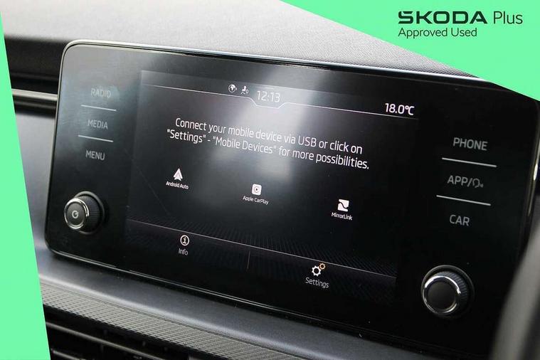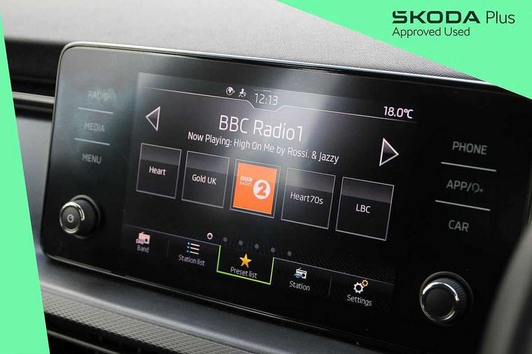 Bluetooth system, E-call, Front assist system, PAS, Service indicator, Speed limiter, Wireless Smartlink for Apple CarPlay (wired for Android Auto), 8 Speakers, Auxiliary input socket, DAB Digital radio, Body colour bumpers, Body colour door mirrors and handles, Chrome grille surround, Dimming rear view mirror with black surround, Electrically adjustable and heated door mirrors, Front and rear electric windows, Headlight range control, Heated rear window, LED rear lights - low functionality, LED third brake light, Light sensors, Rain sensor, Rear fog lights, Rear side wing doors, Rear wiper, 12V Accessory socket in centre console, 3 seat bench in 2nd row, Chrome inner door handles, Cloth upholstery, Front head restraints, Glove compartment with illumination, Ice scraper, Isofix child seat fittings on outer rear seats, ISOFIX on front passenger seat, Manual lumbar support for front seats, Rake/reach adjustable steering wheel, Reading lights, Single front passenger seat, Sun visors with illumination on front passenger, Textile floor mats, Third rear headrest, Top tether for front passenger seat, Umbrella in driver's door, 3x3 point rear seatbelts, Airbags - driver and front passenger, ESP, Front passenger airbag deactivation switch, Front side airbags with curtain airbags, Hill hold control, Manual parking brake, Manual rear child locks, One tone horn, Rear disc brakes, Seatbelt reminder for driver an co-driver, Traction control, Tyre pressure monitor, Anti-theft alarm system with interior monitoring, backup horn, towing protection and remote central locking with SAFE system, Anti-theft wheel bolts, Electronic engine immobilizer,