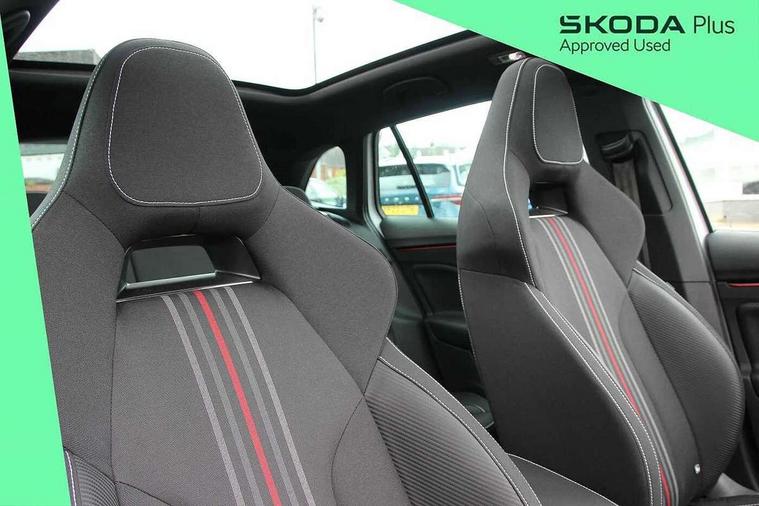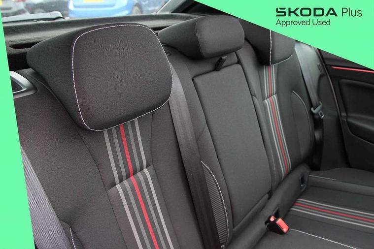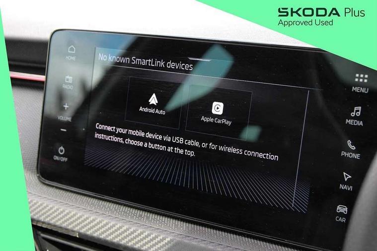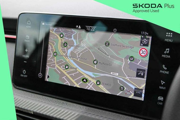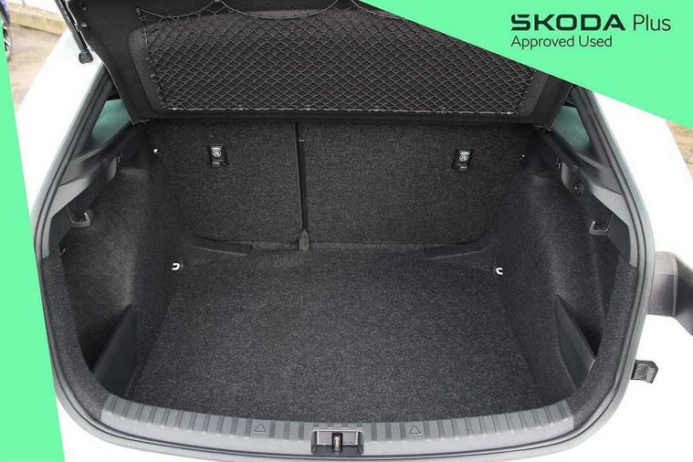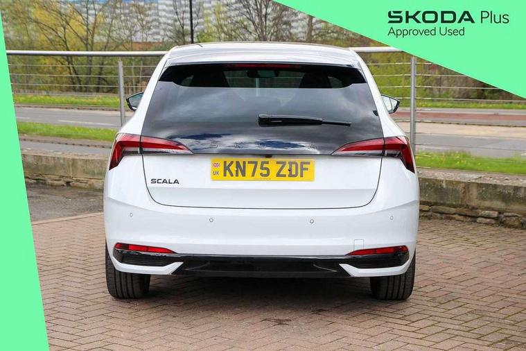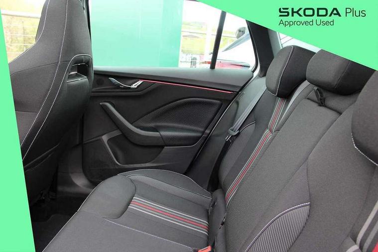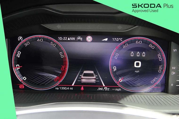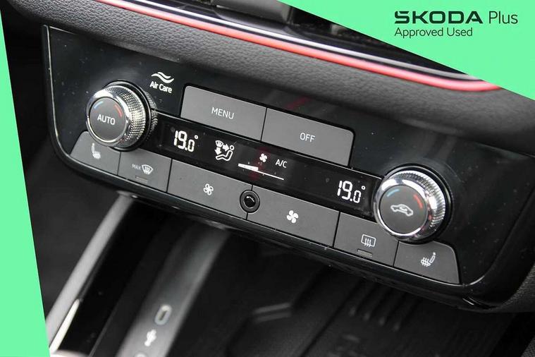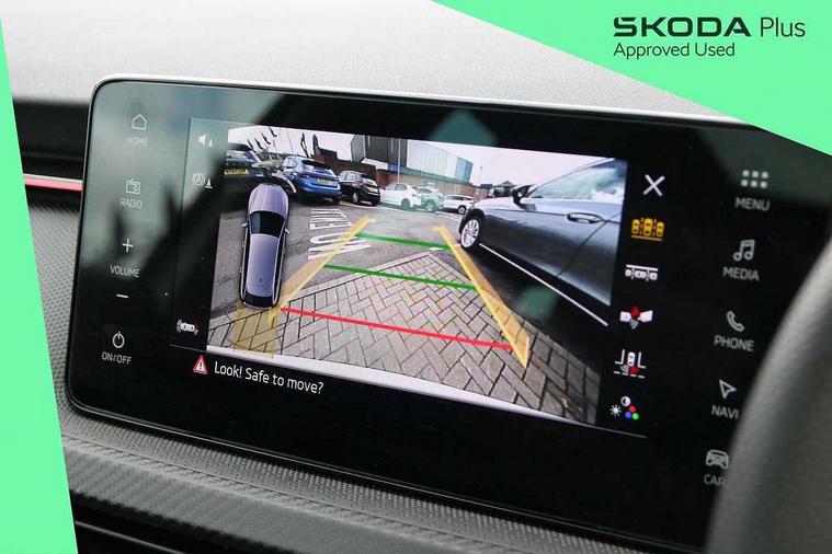 Advanced driver attention and drowsiness monitor, Bluetooth, e-Call (emergency call), Front assist system, PAS, Rear parking sensors, Rear view camera, Speed limiter, Tailgate, Traffic sign recognition, Virtual Cockpit - 10.25" digital display, Voice control system, Wireless smartlink, Drive mode select with Sport Chassis Control and ECO mode, 4 USB C ports, 8 Speakers, 9.2" Skoda navigation display, DAB radio, Auto dimming rear view mirror, Automatic headlight control with manual coming and leaving home feature, Automatic intermittent wipers, Black door mirrors, Black lettering on boot lid, Black radiator grille, Black rear diffuser, Black roof spoiler, Black window frames, Body colour bumpers, Body colour door handles, Extended tailgate glass, Front and rear electric windows, Heated rear window, LED 3rd brake light, LED daytime running lights, LED high beam, LED low beam, Light sensors, Monte carlo plaque, Panoramic glass roof, Privacy glass, Rear LED fog light, Rear side wing doors, Rear wiper, Tinted windows, Unique dark chrome design logo on alloy wheels, 12V socket in luggage compartment, 3 seat bench in 2nd row, Aluminium pedals, Ambient lighting in white/red, Black / White armrest stitching, Black roof headlining, Cargo elements, Chrome inner door handles, Door inserts in art.leather carbon, Driver and passenger sun visors with vanity mirror, Dual zone climate control, Front and rear roof lights, Front centre armrest, Front head restraints, Height adjustable driver seat, Height adjustable passenger seat, Ice scraper, Illuminated glove compartment, Inner circulation control with pollen filter, ISOFIX for front passenger seat, Isofix preparation for back seats, Leather gearknob and handbrake lever, Luggage net under rear parcel shelf, Manual lumbar support for front seats, Monte Carlo cloth upholstery, Net package and top tether hooks in boot space, Pocket on the back of both front seats, incl. mobile phone pockets, Rear centre armrest, Red hotstamping, Single front passenger seat, Skoda lettering on steering wheel, Sport seats, Textile floor mats, Third rear headrest, Ticket holder, Top tether for front passenger seat, Umbrella in driver's door, Light and view plus pack - Scala, 3x3 point rear seatbelts, ABS, Child locks, Curtain airbags and front side airbags, Disc brakes, Driver and front passenger airbags, ESP, Hill hold control, Manual leather parking brake, One tone horn, Passenger airbag switch off function, Seatbelt reminder for driver and front passenger, Tyre pressure monitoring system, Anti theft alarm system with interior monitoring, backup horn and towing protection, Anti-theft wheel bolts, Remote central locking with 2 remote folding keys, SAFE function for remote central locking, Carbon effect decorative inserts, 18" Ursa black diamond cut alloy wheels,