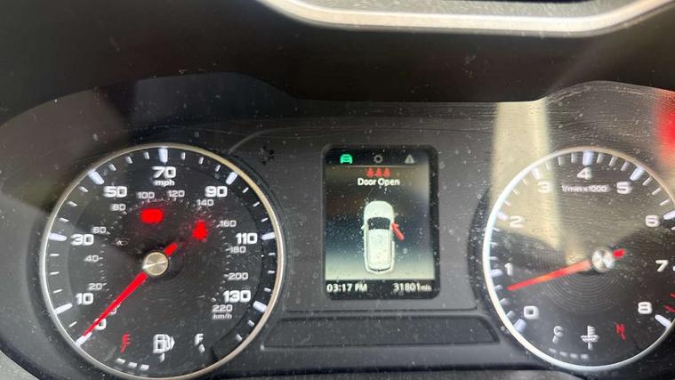 'Lights On' Reminder warning buzzer, 10.1" colour touchscreen, Android Auto, Apple CarPlay, Bluetooth connectivity, Cruise control with speed limiter, eCall emergency call system, PAS, Rear parking sensors, Trip computer, USB mobile phone charging function, 4 speaker audio system, DAB audio, Radio/MP3 player, USB/aux input socket, Auto headlights, Body colour bumpers, Body colour door handles, Body colour electric adjustable folding heated door mirrors, Chrome side window trim, Follow me home headlights, Front and rear aero wiper, Front and rear electric windows with driver's one-touch up/down, LED Bi-Function headlights, LED centre brake light, LED daytime running lights, Rear side wing doors, Rear spoiler, Rear wiper, Silver roof rails, 12V power sockets, 2nd row 60/40 split/fold, 3 rear headrests, 3 seat bench in 2nd row, 4 way manually adjustable passenger seat, 6-way manually adjustable driver's seat, Adjustable dual height boot floor, Air conditioning, Boot light, Driver's footrest, Front cupholders x 2, Front grab handles, Front headrests, Front reading lights, Front seat back map pockets, Glovebox, Houndstooth fabric upholstery, Illuminated switches and controls, Internal chrome door handles, ISOFIX restraints on outer rear seats x2, Leather steering wheel, Rake/reach adjustable steering wheel, Rear grab handle, Single front passenger seat, 3x3 point rear seatbelts, ABS/EBD, Anti rolling protection, Automatic unlocking of doors in case of impact, Dual front airbags, EBA, ESP, Front passenger airbag deactivation switch, Front seatbelts (3-point + pretensioner + load limiter), Front side airbags, Fuel cut off safety device, Hill launch assist, Rear door child safety locks, Rear passenger seatbelt alert, Seatbelt reminder for driver and front passenger, Side curtain airbags, Tyre pressure monitoring system, Alarm system and engine immobiliser, Automatic latching door, Remote central locking, Second remote key, Speed sensing door locks, Superlocking, 17" Typhoon diamond cut alloy wheels, Tyre repair kit,