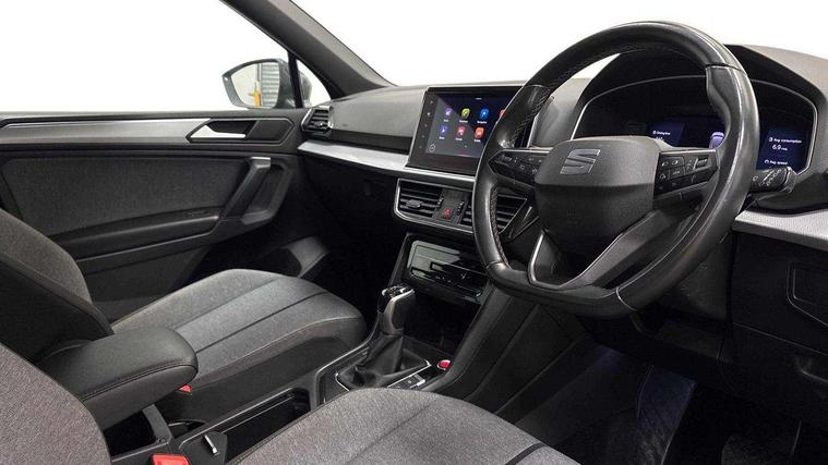 'Lights On' Reminder warning buzzer, 10.25" digital cockpit, Bluetooth audio streaming with handsfree system, Cruise control with speed limiter, Digital clock, Digital cockpit, e-Call (emergency call), Front assist city emergency braking and pedestrian protection, Full Link Wireless Smartphone Integration with Mirror Link, Apple Car Play, Lane assist, Low fuel warning light, Outside temperature gauge, Power assist steering, Rear parking sensor, RPM counter, Seat connect with safety, service, remote and online, SEAT Drive profile-4 different modes, progressive steering, 4Drive versions with off-road/snow, steering response, throttle response, gear shifts mode, Trip computer, Wash water level indicator, Comfort suspension, XDS electronic differential lock, Navigation system with 9.2" colour touchscreen with proximity sensor, 3D Map display, DAB, AM/FM Radio, 3 USB (type C), Aux-in, 8 speakers, SD card, Steering wheel mounted audio/telephone controls, USB (type C) cable for Apple and Android compatibility, Auto dimming rear view mirror, Auto headlights with automatic coming and leaving home function, Automatic headlight adjustment, Black bumpers, Black roof rails, Black window trims, Body colour door mirrors and handles, Chrome front grille frame, Coast to coast lighting, Dark tinted rear windows, Electric front/rear windows, Electrically adjustable and folding door mirrors, Exterior black mouldings, Front halogen fog lights with cornering function, Fuel door linked to central locking, Full LED headlights with LED rear lights, Heated door mirrors, Hidden exhaust pipe, LED daytime running lights, LED licence plate lighting, Rain sensing wipers, Rear fog lights, Rear wash/wipe, Welcome lighting, 3 zone climate control, Ambient spot lighting and front footwell illumination, Black interior roof, Centre armrest in front with air outlet in rear, Comfort front seats, Driver and passenger sunvisor with covered and illuminated mirror, Driver/passenger lumbar adjustment, Easy fold rear seat system - second and third row, Folding table on front seat backrests, Forward and backward adjustable seats 2nd row, Four cargo rings in the boot, Front cupholders, Front seat back storage pockets, Gear shift indicator, Height adjustable driver's seat, Height adjustable front headrests, Height adjustable passenger seat, Illuminated boot, Illuminated glovebox, Instrument lighting with brightness control, ISOFIX points in outer 2nd row seats and front passenger seat with top tether anchorage points, Leather gear knob, Leather wrapped multifunction steering wheel, Luggage compartment floor with split function, Olot cloth upholstery, Rear armrest and easy back seat release mechanism from boot, Rear head restraints, Sliding boot cover, Storage compartment in roof console for sunglasses, Storage draw under front passenger seat, Three 12V sockets, White ambient lighting in front and rear door panels + LED lights in interior door handles, 3x3 point rear seatbelts, ABS, Active front head restraints, Driver/front passenger airbag, Drivers knee airbag, Electronic parking brake with auto hold, Electronic stability control, Front passenger airbag deactivation, Front side airbags, Hill hold control, Seatbelt reminders for all seats, Tiredness recognition system, Traction control, Two curtain airbags, Tyre pressure monitoring system, Alarm, Central locking, Keyless entry and go, Locking wheel bolts, Power locking and remote control with two foldable keys and opening boot selector, Chrome interior detailing - door and dashboard decorative inserts, 18" Performance machined alloy wheels 37/1, Tool kit,