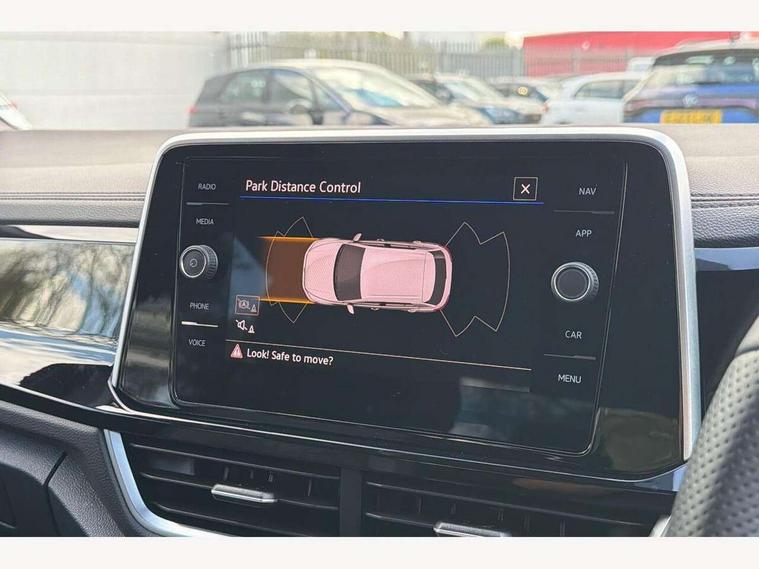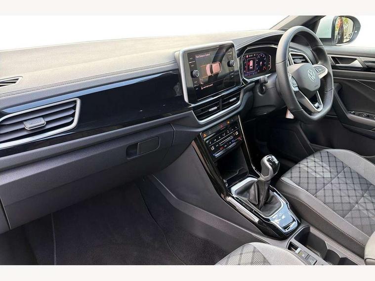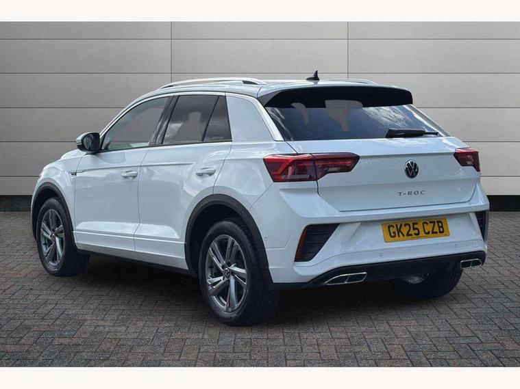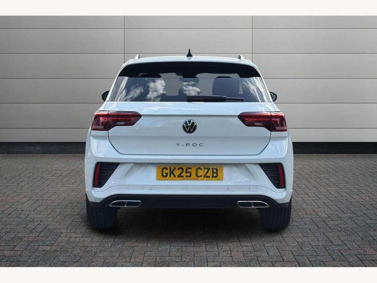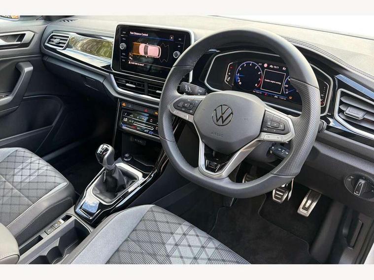 10.25" Digital cockpit pro, Advanced driver attention and drowsiness monitor, Emergency call service, Lane keeping system Lane Assist, Mobile phone interface, Modified key software - reduce switch off time for key status change to Long no motion, Online services, Park assist including front and rear parking sensors, Service interval indicator, Tailgate/trunk lid release from outside, Think blue trainer driver tips and journey analysis, Warning sound and light for front seatbelts unfastened, Wireless app connect, Battery regeneration during braking, Start/stop function with battery regeneration, DAB Digital radio, Diversity antenna for FM reception, Front and rear 6 speakers, Music playback - MP3, WMA and AAC files, Premium USB cable in choice of either Apple or Android smartphone compatibility, SD card slot, Simultaneous pairing of 2 compatible mobile devices, Title and cover art display, We Connect and We Connect Plus functionality, Auto dimming interior rear view mirror, Automatic hazard lights activation under emergency braking, Automatic headlight control with LED separate daytime running lights with coming/leaving home function, Body coloured exterior mirror housings and door handles, Electrically adjustable and heated door mirrors, Extended roof spoiler, Exterior mirrors aspherical on driver side, convex on front passenger side, External USB type C socket and charging sockets, Front windscreen wiper with intermittent wipe and 4 position delay, Heated rear window, LED 3rd brake light, LED rear combination lamps, LED rear number plate lights, Power windows with comfort operation and circuit breaker, Privacy glass for rear side windows and rear window, R-Line design body coloured bumpers, Rain sensor, Rear exhaust tailpipe, Rear fog light on one side and reversing lights on both sides, Rear side wing doors, Rear wash/wipe with intermittent wipe setting, Remote electrically foldable door mirrors, puddle lights and reverse activated passenger's door mirror, 12V power socket in centre console, 3 rear head restraints, 3 seat bench in 2nd row, 4 load lashing points in luggage compartment, Air care climatronic air conditoning system with active combination filter and 2-zone temperature control, Black roof lining, Chrome plated decorative trims, Chrome plated radiator grille inserts, air vent surrounds and light switch surrounds, Door and side trim panel with leatherette insert, Front + rear carpet mats, Front centre armrest, Front cupholders x 2, Front footwell illumination, Front reading light, Front scuff plates with R Line logo, Front seat back storage pockets, Glove compartment door with light, Instrument lighting, white adjustable panel illumination, Interior ambient lighting and surround lighting, Interior light delay, Isofix child seat preparation, Leather gearshift handle, Load-through provision with cup holder when folded down ('Unsplit rear seat bench, split folding backrest, with centre armrest), Luggage compartment lighting, Single front passenger seat, Stainless steel pedals, Storage compartment in left and right luggage area, Storage compartment in rear doors, Storage compartments in driver and front passenger doors, Sunvisors with illuminated vanity mirrors, Variable boot floor, height adjustable and removable, Driver assistance pack without proactive passenger protection - T-Roc, 3 point height adj front seatbelts + pretensioners, 3 point seatbelts in outer rear with ECE label, ABS, Child locks on rear doors, City emergency braking and pedestrian monitoring, Driver and front passenger airbag with front passenger airbag deactivation, Driver and front passenger safety-optimised head restraints, Drivers seatbelt reminder, Electronic parking brake, Electronic Stability Control (ESC) inc EDL (Electronic Differential Lock) and ASR (Traction Control), Front and rear passengers curtain airbag system including front side airbags, Hill start assist, Predictive pedestrian protection, Rear disc brakes, Two tone horn, Tyre pressure loss indicator, Volkswagen roadside assistance, Piano black decorative inserts in dashboard and front door trim panels, Trims for alloy wheels,