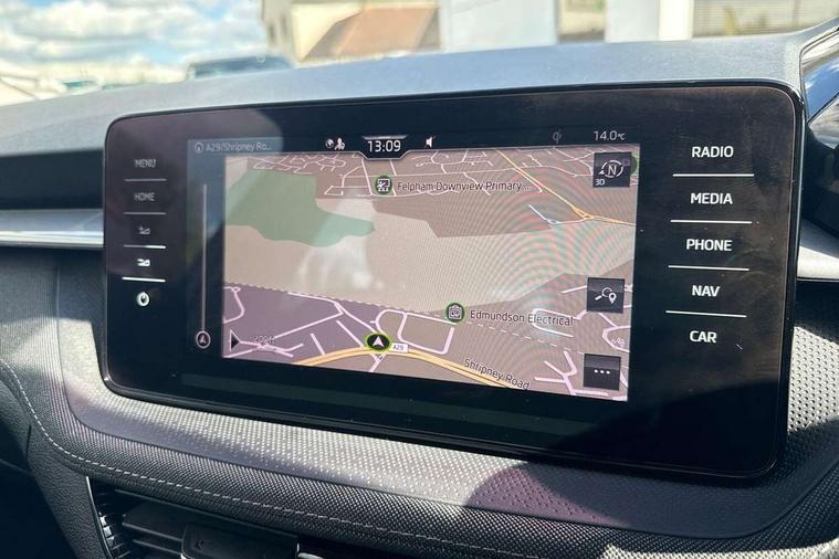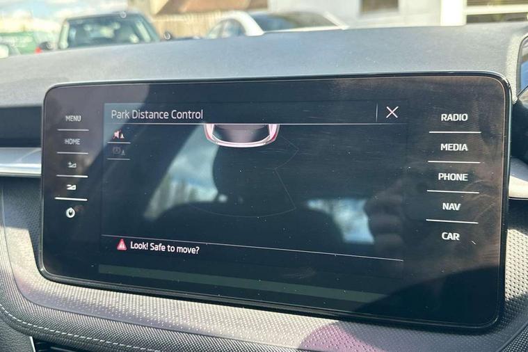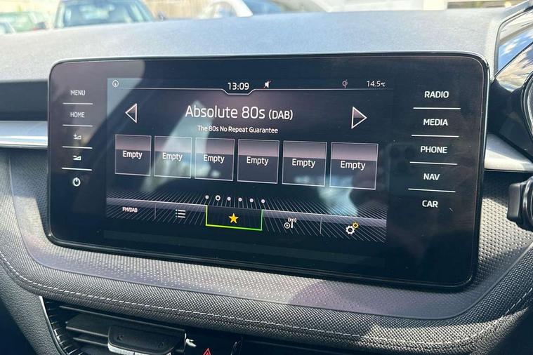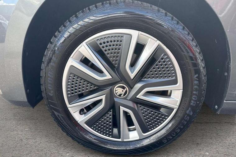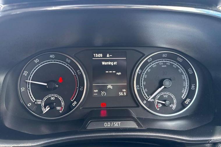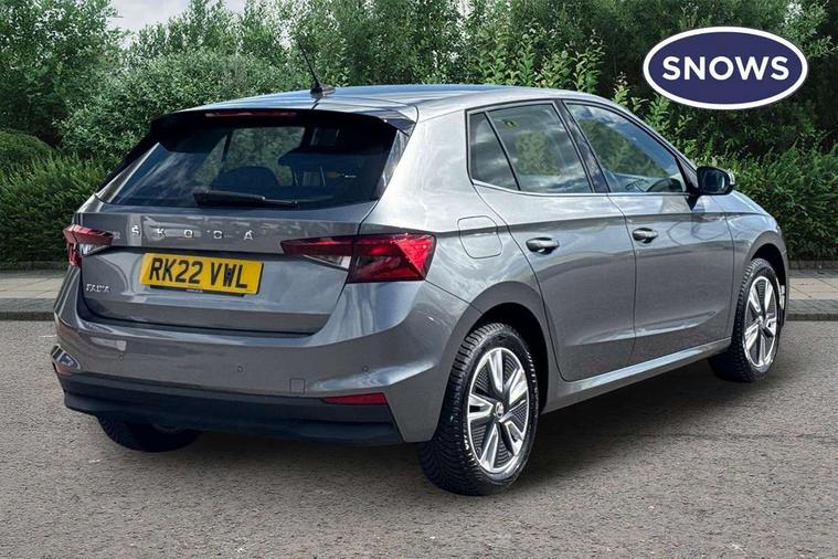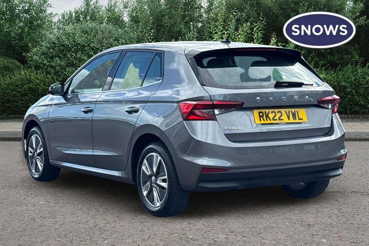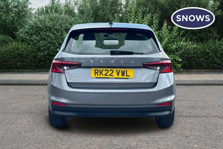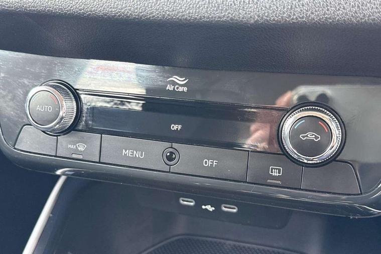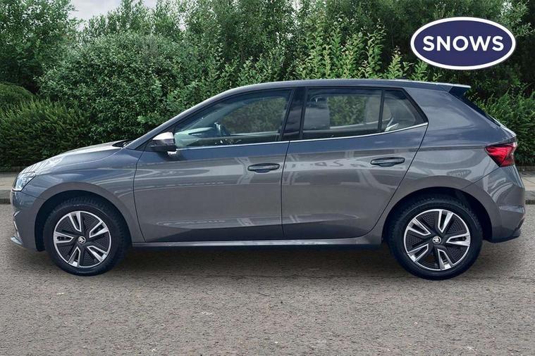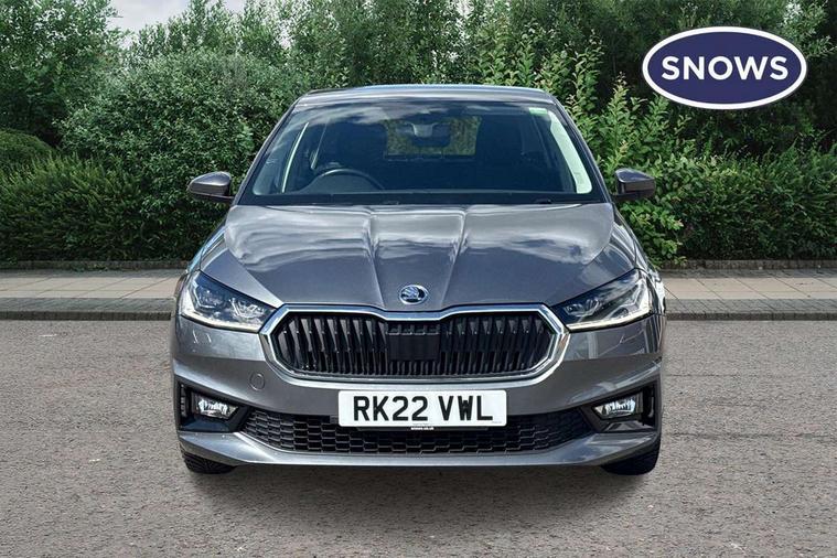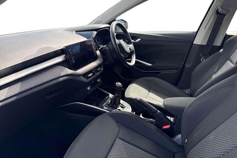 Bluetooth connection, Driver alert system - DAS, Electromechanical power steering, Exterior temperature gauge, Service interval indicator, 2x USB-C in the front (for data transmission and charging), 6 Speakers (4 in front and 2 in rear), Auxiliary socket for external MP3 player, DAB digital radio reception, Web radio, Auto dimming rear view mirror, Basic rear light, Body colour door mirrors, Body coloured bumpers, Chrome window surround, Door mirror integrated indicators, Electrically adjustable and heated door mirrors, Front and rear electric windows, Front window wiper intermittent control, Headlight range control - Automatic, Ice scraper in fuel cap, LED daytime running lights with coming and leaving home feature, Rear LED fog light, Rear side wing doors, Rear window wiper with washing nozzles, Roof mounted spoiler, SKODA tailgate lettering in chrome, Third brake light, 3 rear headrests, Backrest split and folding, Central console with fixed cup holder and storage box, Chrome handbrake release button, Comfort seats, Fabric upholstery, Front centre armrest, Gearshift knob/handle in leather, Hand brake lever handle in leather, Height adjustable front headrests, Height adjustable front seats, Height adjustable steering wheel, ISOFIX and TopTether anchorage points to the outer rear seats, ISOFIX and TopTether on the front passenger seat, Luggage compartment lighting, Manually adjustable lumbar support in front seats, Pollen filter, Rear seat bench unsplit, Removable cup holder, Single front passenger seat, Storm grey headlining, Sun visors with mirror and airbag label on passenger side, Textile floor mats, Ticket holder, Umbrella in drivers door, Ambient lighting pack 2 - Fabia Hatchback, 3-point height adjustable front seats belts with pretensioner and force limiter, Automatic warning lights in case of crash, Driver and passengers airbag with switch off function, e-Call+, ESC including ABS, MSR, ASR, EDS, HBA and XDS, Front and rear seat belt warning, FRONT ASSIST (AEB City and AEB Inter Urban), Front side airbags, Head airbags, One tone horn, Pedestrian protection, Three rear 3-points safety seat belts with pretensioner and force limiter including stop function for outer rear seat belts, Tyre pressure monitoring system, Anti-theft alarm system including immobiliser, interior monitoring, backup horn, and towing protection, Chrome edged air vents, Satin black door and side trim panel in front, Anti-theft wheel bolts protection, Super-low rolling resistance tyres,