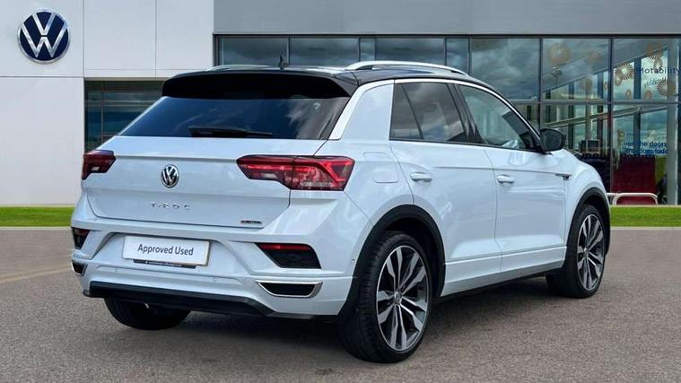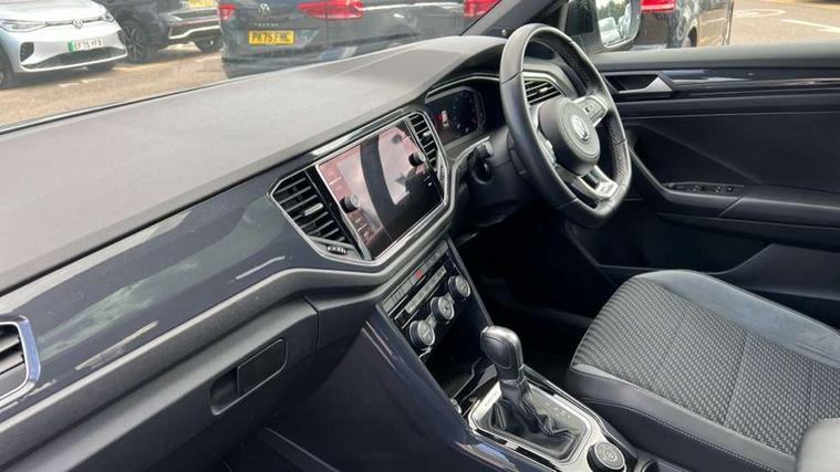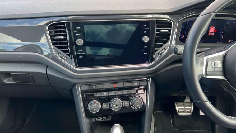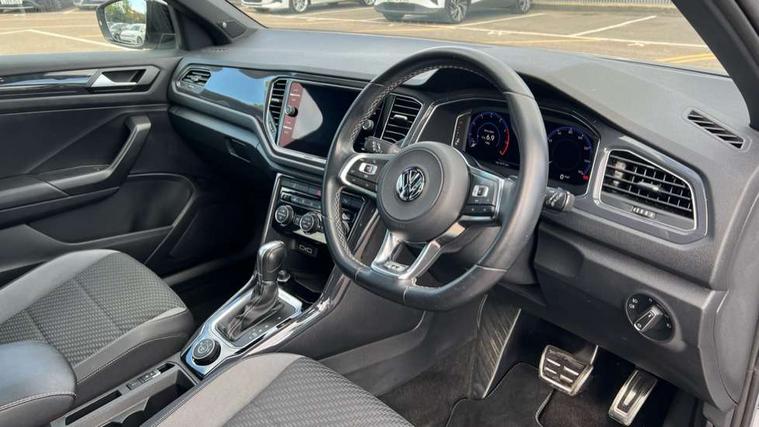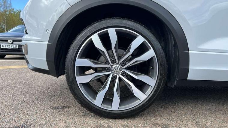 'Lights On' Reminder warning buzzer, 8" touch screen, ACC - Adaptive cruise control with front assist, forward collision warning, distance monitoring, city emergency brake and speed limiter, Active information display, App-Connect, Bluetooth hands free telephone connection, Discover navigation + European map data, Door/tailgate open warning lights, Driver alert system, Infotainment system, Instrument cluster in white, Lane assist, Multifunction computer, Progressive power assisted steering, Voice control system, Warning buzzer and light for front seatbelts unfastened, Four wheel drive, 6 speakers, CD/MP3/WMA, USB and SD card reader, Composition media system, DAB Digital radio, Auto dimming rear view mirror, Automatic activation of hazard warning lights, Automatic headlights, Black wheel arch extensions, Body colour bumpers, Body colour door handles, Body colour door mirrors, Body colour rear roof spoiler, Body colour side skirt, Chrome grille surround, Coming/leaving home lighting function, Electric folding door mirrors, Electrically adjustable and heated door mirrors, Front and rear electric windows, Front fog lights with static cornering function, Front wash/wipe with interval delay, Heated rear windscreen, LED daytime running lights, LED rear lights, Rain sensor, Range adjustable headlights, Rear tinted windows from B pillar back, Rear windscreen washer and wiper with interval delay, Reverse activated kerb-view adjustment on passenger's door mirror, Silver roof rails, Trailer Stability Programme, Twin trapezoid chrome exhaust pipes, 12V power socket in centre console, 3 rear headrests, 60/40 split folding rear seat, Air conditioning - 2 zone electronic climate control, Aluminium pedals, Ambient lighting, Black headlining, Boot lashing points, Chrome door sill trims, Courtesy light delay, Drawer under drivers seat, Driver/front passenger seat height adjustment, Dust/pollen filter, Footwell lights, Front + rear carpet mats, Front centre armrest with storage box and rear air vents, Front cupholders x 2, Front seat back storage pockets, Front sport seats, Glovebox, Height/reach adjust steering wheel, Illuminated vanity mirrors, Isofix preparation for 2 rear child seats, LED reading lights, Load through provision with rear centre armrest and cupholders x2, Luggage compartment cover, removable, Luggage compartment lighting, Storage box in luggage compartment, Storage compartments in doors, USB charging point, Variable boot floor, height adjustable and removable, Winter pack - T-Roc, 3 point height adj front seatbelts + pretensioners, 3 rear 3 point seatbelts, ABS, Driver/Front Passenger airbags, Driver/Passenger whiplash optimised head restraints, DTC - Drag torque control, Electronic parking brake with auto hold, ESC - Electronic Stability Control + traction control, ESP with EDL + ASR, Front and rear curtain airbags, Front assist including city emergency braking, Front passenger airbag deactivation, Front side airbags, Predictive pedestrian protection, Tyre pressure monitor, Alarm with interior protection, Anti-theft wheel bolts, Electronic engine immobiliser, Remote central locking with 2 remote folding keys, Dark grey decorative inserts in dash and door panel, 19" Suzuka alloy wheels, Steel space saver spare wheel,