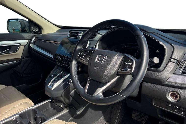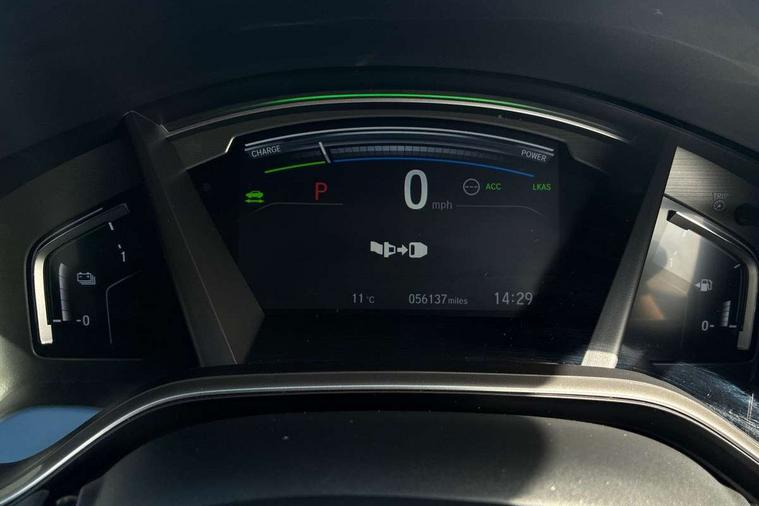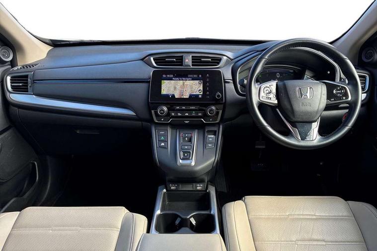 Adaptive cruise control, Agile handling assist, BLIS (Blind Spot Information System) with dual power heated blind spot mirrors, Bluetooth hands free telephone connection, E-call, Economy mode, Electric power steering, Emergency stop signalling system, Forward collision warning, Front parking sensors, Honda CONNECT with GARMIN Navigation + 7" touchscreen, DAB radio, Apple CarPlay, Android Auto, Aha app integration and internet browsing, Intelligent multi info display, Lane departure warning system, Lane keep assist system, Low speed following, Rear parking sensors, Rear view camera, Road departure mitigation, Speed limiter, Traffic sign recognition, Vehicle stability assist, 2 USB sockets in rear, 2x USB sockets in front, 9 speakers, DAB Digital radio, Dashboard centre speaker, Front tweeters, Steering wheel mounted controls, Subwoofer, Aspheric door mirrors, Auto dimming rear view mirror, Automatic headlights with dusk sensor, Body colour bumpers, Body colour door handles, Cornering light, Door mirrors tilt when reversing, Electric front windows/one touch facility, Electric rear windows + one touch facility, Electrically adjustable and heated door mirrors, Electrically retractable door mirrors, Front windscreen de-icer, High beam assist, LED daytime running lights, LED front fog lights, LED Headlights, LED rear lights, Rain sensor, Rear privacy glass, Rear side wing doors, Rear wiper, Roof rails, Shark fin roof aerial, Tailgate spoiler, Third brake light, Welcome home function, 3 seat bench in 2nd row, 60/40 split folding rear seat, Accessory sockets, Ambient interior lighting, AWD emblem rear, Cargo hooks, Courtesy lights, Driver's electric adjustable lumbar support, Driver/passenger front seatback pockets, Driver/passenger sunvisors with illuminated vanity mirrors, Dual zone automatic climate control, Electric lumbar adjustment on passenger's seat, Footwell ambient lighting, Front centre armrest, Front map lights, Front passenger seat height adjust, Heated front seats, Height adjustable driver's seat, Hybrid emblem, Illuminated glovebox, Instrument panel with garnish wood film, Isofix child seat preparation, Leather steering wheel, Leather upholstery, Paddle shift controls, Rear air vents, Rear centre armrest, Rear headrests, Rear reading lights, Rear seat conversation mirror, Silver interior door handles, Single front passenger seat, Sunglasses holder with mirror, Tilt/telescopic adjustable steering wheel, Tonneau cover, Trunk light, 5 x 3 point seatbelts, ABS/EBD, Anti-whiplash front headrests, Brake assist function, Collision mitigation braking system, Deflation detection system, Driver airbag, Electronic parking brake with auto hold, Front and rear curtain airbags, Front and rear seat belts with emergency locking retractor (ELR), Front side airbags, Hill start assist, Manual child lock in rear doors, Passenger airbag deactivate switch, Honda super locks, Immobiliser, Security alarm, Smart entry + Smart start, Ultrasonic security sensor, Tyre repair kit,