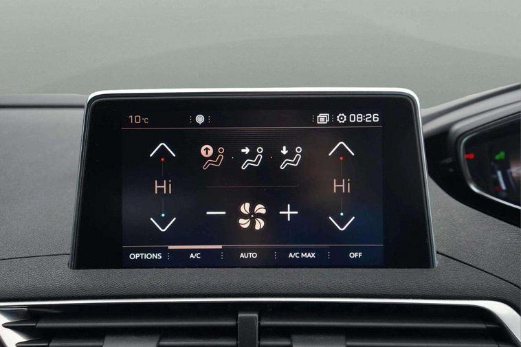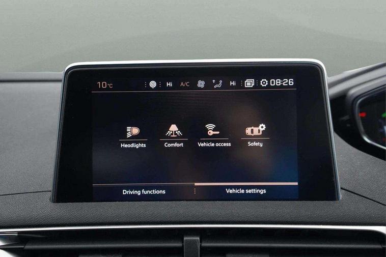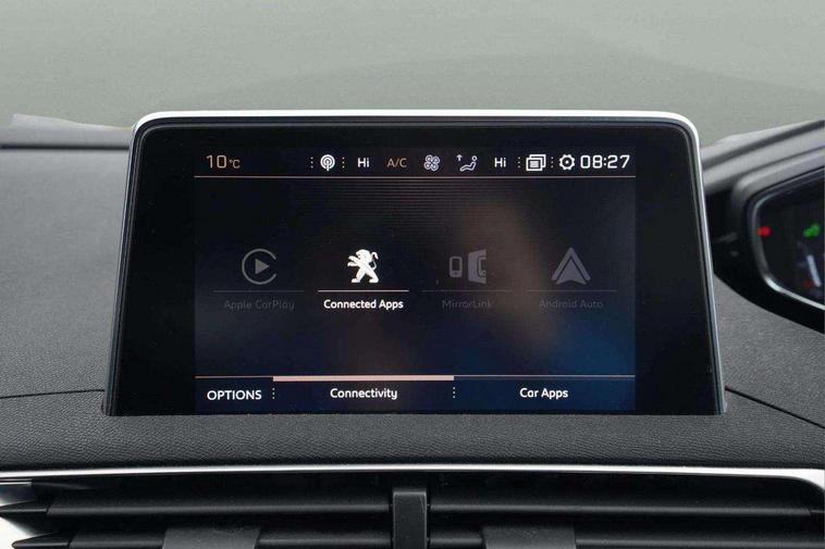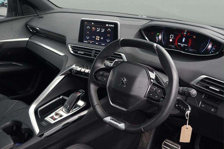 'Lights On' Reminder warning buzzer, 3D connected navigation + voice control + Peugeot connect SOS and assistance, Bluetooth telephone facility, Digital clock, Exterior temperature indicator with ice warning, Front and rear parking sensors, Lane departure warning system, Mirror screen with mirror link, apple carplay and android auto, Multi function trip computer, PEUGEOT i-Cockpit with 8.0" capacitive touchscreen in centre console, PEUGEOT i-Cockpit with amplify (choice of two configurable interior ambiences), PEUGEOT i-Cockpit with compact sports steering wheel, PEUGEOT i-Cockpit with configurable 12.3" Head-up digital instrument panel, Smartphone charging plate, Speed limit recognition and recommendation, Sports button, Diesel particulate filter, Dynamic stability control and electronic anti-skid system, DAB Digital radio, Steering column mounted multifunction controls, USB socket, 2 X Rear number plate lights, Aluminium longitudinal roof bars, Automatic hazard light activation upon heavy brake application, Automatic triggered rear windscreen wiper in reverse gear, Black and chrome front wing trim, Black bumper protection plate, Body colour door handles, Body colour rear spoiler with stainless steel edging trim, Body coloured bumpers, Body protectors (bottom of front and rear bumpers + wheel arches + protection at bottom of doors) in black, Chrome bumper inserts, Chrome front fog light trim, Chrome radiator grille and surround, Chrome rear bumper facia, Chrome side window trim, Dark tinted rear side windows + tailgate window, Door mirror mounted LED Peugeot lion approach lights, Electric operated/heated door mirrors, Front windscreen wiper with magic wash cleaning system, Full LED headlights with LED fog lights with static cornering function, sports front bumper and grille, Gloss black finish B and C pillar, Gloss black rear cluster connecting strip, Gloss black windscreen surround, GT Line emblem in satin copper, Headlights left on audible warning, Heated rear windscreen with integrated antenna, LED daytime running lights, LED sequential scrolling front indicators, LED side indicator lights integrated into door mirrors, Lion grey front bumper scuff plate, Nera black door mirrors, One touch electric front/rear windows with pinch protection, Power folding door mirrors with blind spot detection indicator and auto dipping function in reverse gear, Radiator grille in chrome edge trim with chequered design and black 'PEUGEOT' lettering, Rear LED Peugeot signature 'Claw Effect' lights, Sports front bumper, Stainless steel roof arches, Twin exhaust tailpipe, 1/3 to 2/3 split folding rear seats, 12V Sockets in dashboard, rear cabin and load area, 2 cupholders in front centre console, 2 rear reading spotlights, 2x Rear coat hooks, 3x Isofix child seat fittings in the front passenger and outer rear seats, 4 Grab handles retractable and damped, 4 Lashing eyes in boot, Aikinite stitching in armrest, gear lever and dashboard facia, Automatic gear lever in satin chrome, Blue ambient lighting for connecting zone, Blue ambient lighting to front door panels, central storage and cupholders, Blue ambient lighting to head up instrument panel, Centre front armrest with butterfly wing opening and illuminated storage compartment, Driver and front passenger seat height adjustment, Driver seat manual adjustment, Dual zone automatic climate control, Electric power steering with reach and rake adjustable steering column, Fixing rings 4 in load compartment, Flocked front door pocket interior with blue ambient lighting, Flocked glovebox interior, Fold flat front passenger seat with picnic table, Footwell illumination, Front headrests, Front interior light with 2 reading spotlights and rear interior light with timer, Front seat back map pockets, Gear shift indicator, Height adjustable headrests, Illuminated glovebox, Illuminated vanity mirrors, LED interior lighting in storage spaces and load area, Mistral floor mats with Aikinite contrast stitching, Mistral full grain perforated leather steering wheel with aikinite stitch detail and satin chrome 'GT Line' emblem, Rear armrest with ski flap and two cup holders, Rear centre console ventilation system, Rear headrests, Reclining front seats, Roof LED interior lighting, Roof lining - Mistral black, Satin chrome dashboard trim, Satin chrome digital instrument panel and touchscreen trim, Satin chrome front door panel recess trim, Satin chrome interior door handles, Satin chrome scorpion's tail and toggle switch trim, Seatbelt not fastened audible and visual alert for front seats, Seatbelt unfastened on the move audible and visual alert for front and rear seats, Stainless Steel Scuff Plates, Two position boot floor, Safety pack - 3008, Safety Plus Pack - 3008, Visibility pack - 3008, 3x Rear three-point retractable seatbelts with force limiters in the outer rear seats, Adaptive driver and front passenger airbags with passenger airbag deactivation function, Anti-lock braking system with electronic braking distribution and emergency braking assistance, Auto city emergency braking, Driver and front passenger side airbags, Driver SMART airbag, Electric child locking functionality on rear windows and doors, Electric parking brake, ESP with ASR, Front and rear curtain airbags, Front optimised safety headrests and 3 x rear retractable headrests with height adjustable, Front passenger SMART airbag with deactivate switch, Front three point retractable seatbelts with pre tensioners and force limiters, Front ventilated disc brakes and rear disc brakes, Height adjustable front seatbelts, Hill start assist, Tyre pressure sensor, Anti theft alarm, Automatic door lock/re-lock after 30 seconds, Central locking button on dash, Deadlocks, Electronic immobiliser, Locking wheel bolts, Remote control central locking with two plip keys, Brumeo fabric Dashboard, front and rear door panel finish, Satin chrome dash trim, Satin chrome instrument dial surrounds,
