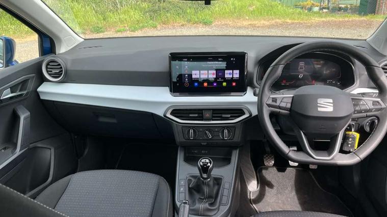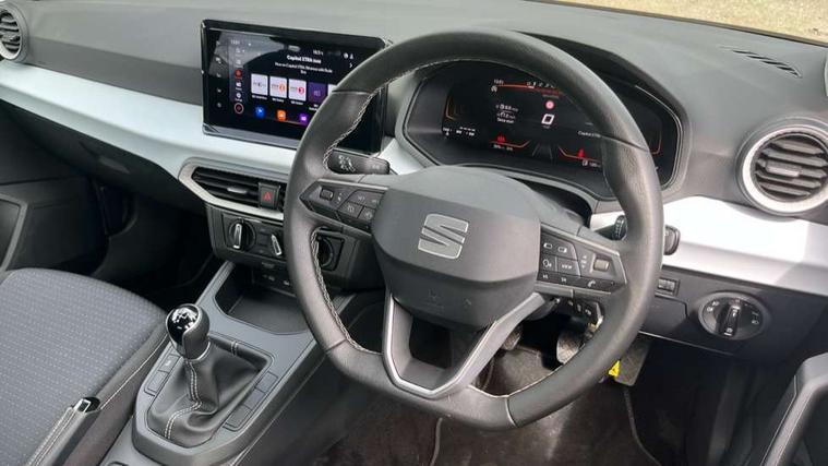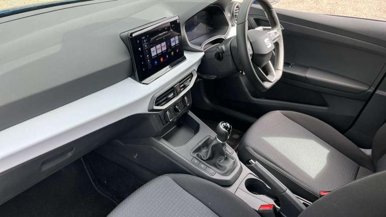 'Lights On' Reminder warning buzzer, 8" Digital cockpit, 9.2" touchscreen navigation system with type C USB socket, Voice control and DAB/AM/FM radio, Auto start and stop system, Bluetooth audio streaming with handsfree system, Cruise control, Digital clock, E-call, Full link smartphone integration with mirror link, wireless apple carplay, Google android auto + USB Type C cable for apple and android devices, Lane assist, Low fuel warning light, Outside temperature gauge, Power Steering, Rear parking sensor, Seat connect plus with safety, service, remote and online, SEAT logo boot release, Speed limiter, Traffic sign recognition, Trip computer, Comfort suspension, Auxiliary input socket, Radio/MP3 player, SD card slot, Steering wheel mounted controls, Anti theft roof antenna, Body colour bumpers, Body colour door handles, Body colour door mirror caps, Dimming interior rear view mirror, ECO LED automatic headlights and LED daytime running lights, Electric front windows, Electric headlight adjustment, Electrically adjustable door mirrors, Front/rear fog lights, LED tail lights, Rain sensor, Rear side wing doors, Rear wiper, Third brake light, 3 seat bench in 2nd row, 60/40 split folding rear seat, Air conditioning with dust and pollen filter, Chrome interior detailing and grey headlining, Cloth upholstery, Comfort seats, Front courtesy lights, Front cupholders x 2, Front reading lights, Gear shift indicator, Glovebox, Grey interior air vents, Height adjustable front and rear headrests (five), Height adjustable front seats, Height/reach adjust steering wheel, Illuminated boot, Instrument lighting with brightness control, Isofix, Leather multifunction flat bottomed sports steering wheel, Passenger sunvisor, Single front passenger seat, Sunvisors with mirror and driver side card holder, Safety and driving pack (S) - Ibiza, 3 point seatbelts on all 3 rear seats, ABS, Active front headrests, Child locks on rear doors, Electronic stability control, Energy recovery system, Front assist forward collision warning and autonomous emergency braking, Front driver and passenger side airbags with curtain airbag and front passenger airbag deactivation, Hill hold control, Multi-Collision braking, Seat belt reminder for front and rear seats, Tiredness recognition system, Tyre pressure monitoring system, Electronic engine immobiliser, Locking wheel bolts, Remote central locking + deadlocks, 16" Design machined alloy wheels in Nuclear grey,