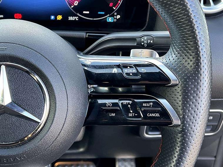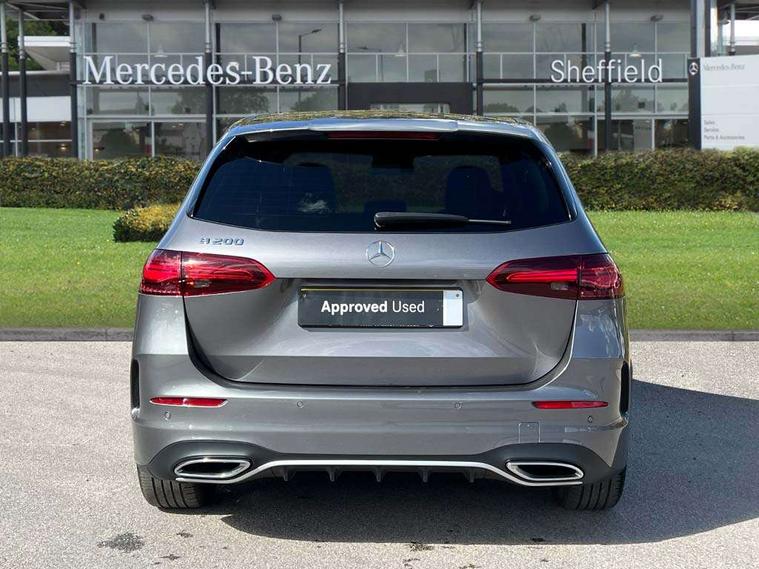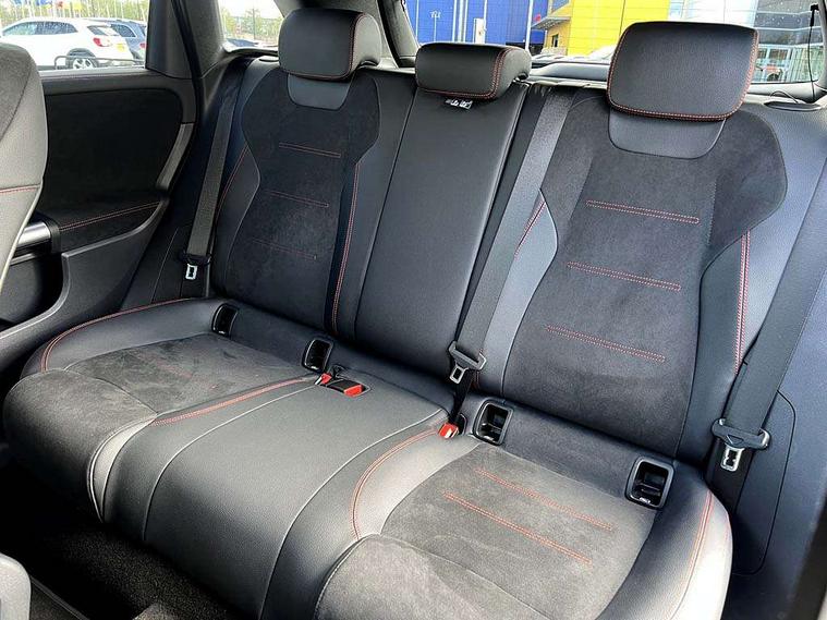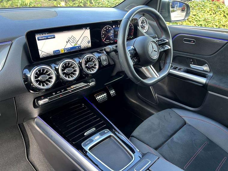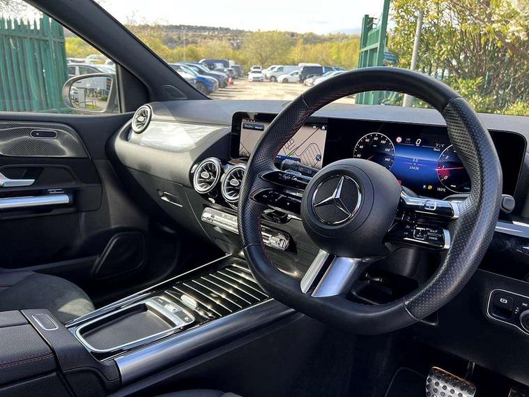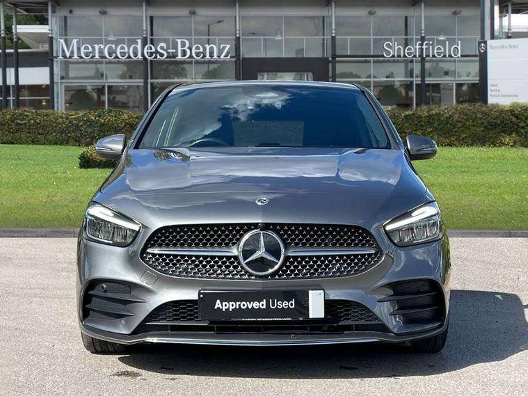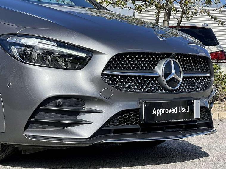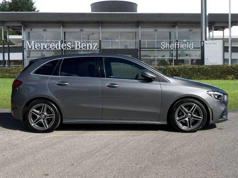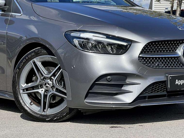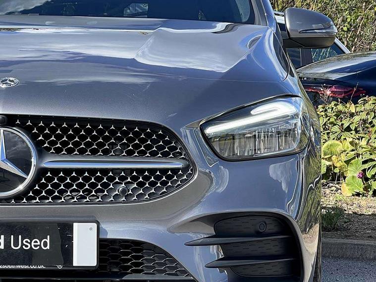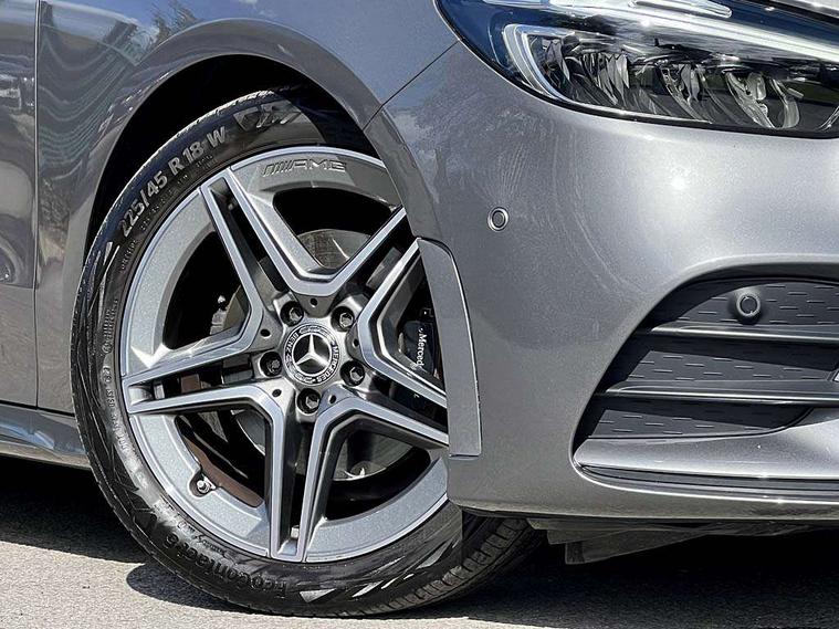 10.25 inch touchscreen central media display, 10.25" Digital instrument cluster display screen, Attention assist - Monitors steering behaviour and long journey fatigue, Brake pad wear indicator warning light, Cruise control + speed limiter, Direct steer system, Dual bluetooth interfaces, DYNAMIC SELECT with a choice of driving modes (ECO, Comfort, Sport and Individual), ECO start/stop function, Engine start/stop button, Fluid level warning indicator for fuel, oil, coolant and washer fluid, GPS aerial, Hard disk navigation, Hey Mercedes Voice activation, Lamp failure indicator, Lane keeping assistant (LKA), Live traffic information, Mercedes me connect including emergency call system, accident recovery, breakdown and maintenance management, Mercedes me remote services, Outside temperature gauge, Owners manual and service booklet in English, Pre-installation for private car sharing, Preinstallation for Mercedes Benz link, Remote boot closing, Service indicator (ASSYST), Smartphone integration with Apple CarPlay and Android auto, Speed limit assist, Speed sensitive power steering, Trip computer in multifunction display with current consumption indicator, Wireless charging, Lowered comfort suspension, DAB digital radio tuner, MBUX multimedia system, Mercedes Benz sound system (100 W) with 6 speakers, 4 Electric Front and Rear windows, Adaptive brake lights, Adaptive high beam assist, AMG body styling - AMG front apron with front splitter and AMG rear apron and visible exhaust tailpipe trim elements, Body coloured bumpers, Body coloured door handles, Body coloured side skirts, Car wash function, Chrome window line, Diamond radiator grille with pins in fine star pattern, Electric adjustable and heated door mirrors with integrated LED side indicators, Exhaust system with 2 Visible tailpipe trim elements and rear apron with trim in chrome, Headlamp assist automatic headlamp activation, Heat insulating dark tinted rear and rear side windows, Heated glass rear windscreen + timer control, High level LED third brake light, Interior mirror with black reading lamps and frameless, LED high performance headlamps with integrated LED daytime running lights, LED tail lamp, Privacy glass, Rain sensing windscreen wipers with two sensitivity settings, Rear fog lamp, Rear side wing doors, Rear windscreen wiper, 3 seat rear bench, 3 spoke multifunction sports steering wheel in nappa leather with flattened bottom and perforated grip area, 4 way lumbar support, 40:20:40 split folding rear seat backrests, Air conditioning - air vents with silver chrome surround, Air conditioning - One zone THERMATIC automatic climate control with automatically controlled air distribution, Artico man-made leather/ MICROCUT microfiber upholstery with contrast topstitching, Automatic child seat recognition sensor, Black roof lining, Brushed stainless steel sports pedals with rubber studs, Floor mats with black top stitching embroidered edition logo and piping in light grey, Folding rear armrest, Freight packaging without tie-down hooks, Front centre armrest with stowage, Front door sills with Mercedes Benz lettering, Front sports seats with adjustable head restraints, Galvanished gear shift paddles on steering wheel, Heated front seats, Illuminated glove compartment stowage, Interior lighting - 64 colour Ambient lighting, Luggage net on driver/front passenger seat backrest, Manually adjustable front seats, Manually height and reach adjustable steering column, Rear headrests, Seat occupancy sensor for front passenger seat, Single front passenger seat, Stowage compartment in centre console with retractable cover, Sunvisors with illuminated vanity mirrors, Twin front cupholders, Two outer rear seat isofix and top tether child seat fixing points, 360 degree guard vehicle protection pack - B Class, Interior lighting with light and sight pack - B Class, Keyless Go Comfort pack - B Class, Mirror package with self dimming mirror - B Class, Parking pack - B Class, Seat comfort pack - B Class, USB plus pack - B Class, 3 rear three point seatbelts, Active bonnet pedestrian safety measure which detects an impact and raises bonnet, Active brake assist includes forward collision warning system with autonomous braking, Adaptive brake assist with hold function and hill start assist, Airbags - kneebag for driver, Anti-lock braking system (ABS), Black seat belts, Brake assist, Childproof locks manually operated for rear doors and electrically operated for rear power windows, Crash responsive emergency lighting, Curve dynamic assist, Driver and front passenger head and sidebags, Driver and front passenger windowbags, Dual stage driver/passenger airbags, Electric parking brake, Electronic stability programme with acceleration skid control, Front and rear seatbelt reminder, Front passenger airbag deactivation, Tyre pressure monitoring system, Warning triangle and first aid kit, Alarm system with immobiliser and interior protection -Thatcham category 1, Remote central locking and crash sensor with emergency opening function, Carbon structure trim, 18" AMG 5 twin spoke light alloy wheels, aerodynamically optimised, painted in termolite grey with high sheen finish, Summer tyres, Tirefit tyre sealant kit,