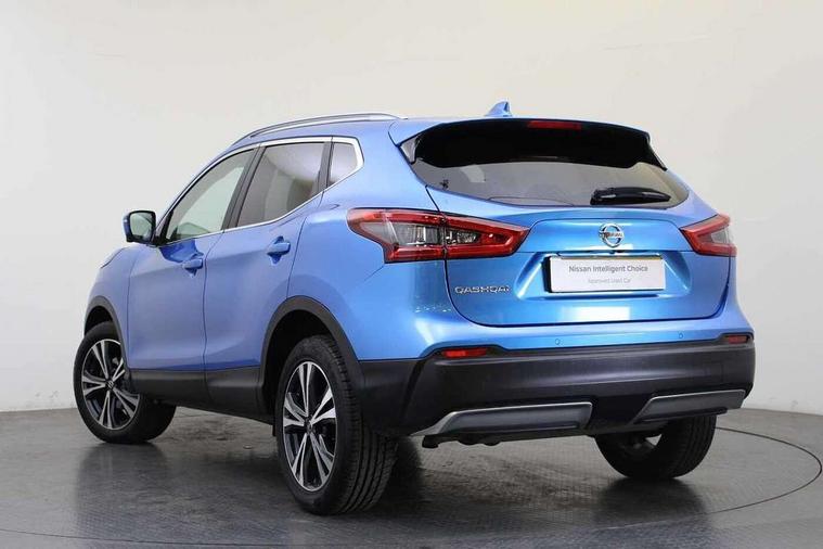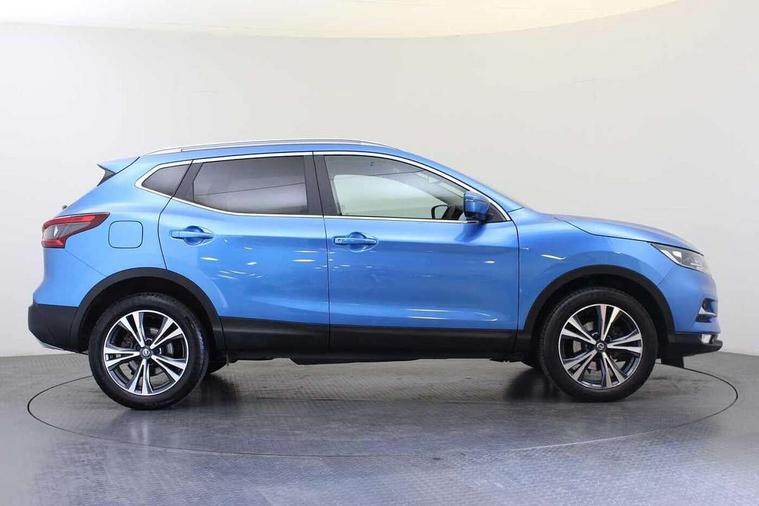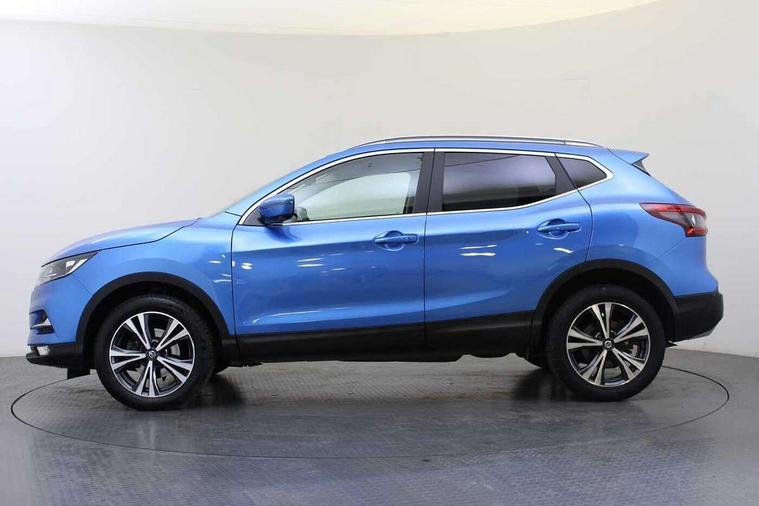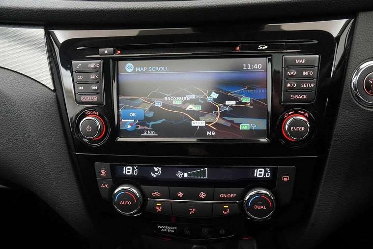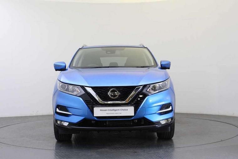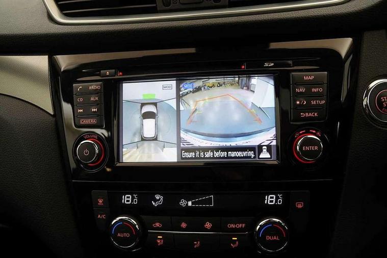 5" TFT driver information centre, Around View Monitor, Bluetooth phone integration system, Cruise control, Electric speed sensitive power steering, Front and rear parking sensors, Lane departure warning system, Nissan connect sat nav system, Outside temperature display, Push button starter, Rear view camera, Service interval indicator, Speed limiter, Traffic sign recognition, Trip computer, 'Shark fin' mobile antenna, 6 speakers, DAB Digital radio, Radio/CD, Smartphone apps, Steering wheel mounted audio controls, USB/aux input socket, Automatic headlamp activation, Body colour bumpers, Body colour door handles, Body colour door mirrors, Chrome window surround, Electric folding and heated door mirrors, Front fog lights, High beam assist, Interior mirror with auto anti dazzle, LED indicators in door mirrors, Matt silver roof rails, One touch electric front/rear windows, Privacy glass, Rain sensor windscreen wipers, Rear roof spoiler, Rear wiper, 2 X front 12v power sockets, 60/40 split folding rear seat, Ambient interior lighting, Centre console with armrest, Chrome interior door handles, Cloth upholstery, Configurable luggage board system, Driver + front passenger lumbar support, Dual zone climate control, Front and rear door pockets with bottle holders, Front headrests, Front seat belt pre-tensioners with load limiters, Height adjustable driver's seat, Height adjustable passenger seat, Illuminated electric window switch, Isofix child seat preparation, Leather gearknob, Leather interior door handles, Leather knee rest, Leather steering wheel, Luggage compartment lighting, Parcel shelf, Pollen filter, Rake/reach adjustable steering wheel, Rear armrest with 2 cupholders, Rear headrests, ABS, brake assist and EBD, Child locks on rear doors, Curtain airbags, Driver/front passenger airbag, Electronic parking brake, ESP + traction control, Forward emergency braking, Front passenger airbag deactivation, Height adjustable front seatbelts, Hill start assist, Seatbelt warning, Side airbags, Three 3 point rear seatbelts, Tyre pressure monitoring system, Alarm, Immobiliser, Intelligent Key, Remote central locking, Piano black interior trim, 18" Bi-colour alloy wheels, Tyre puncture repair kit,