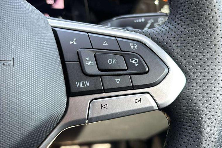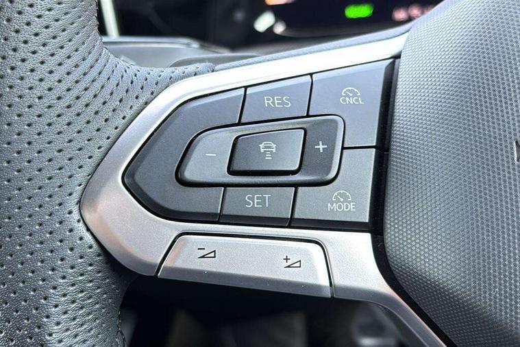 Activated carbon canister, Adaptive cruise control (ACC), Advanced driver attention and drowsiness monitor, Dynamic road sign display, Dynamic steering, E-Sim card for online connectivity, eCall emergency call system, Multi-color Digital cockpit pro, selection of different info profile possible, Multifunction front facing camera for distance control, Navigation system, Oncoming vehicle braking when turning including swerve support, Speed limiter, Speedo, rev counter, electronic odometer, trip, service interval display, exterior temperature and fuel gauge, Traffic jam assist, Voice enhancer and voice control, Warning signal and warning light for front and rear seatbelts not fastened, We connect plus preparation, We connect preparation, Wireless app connect, Hybrid propulsion system, Petrol Particulate Filter, Start-stop system with battery regeneration (recuperation - energy recovery during braking), XDS electronic differential lock for improved traction and handling, 2 USB C ports in front, 2 USB charging sockets on the centre console in the rear charging capacity upto 45W, Digital radio reception (DAB), Diversity antenna for FM reception, Gaming platform via car app, Infotainment system with 12.9" display, Mobile phone interface with inductive charging feature, 3rd brake light, Automatic headlamp activation with Coming home and Leaving home feature, Body colored bumpers in R-Line style, Body colour door handles, Exterior mirrors convex on the left and aspherical on the right, Front and rear electric windows, Heat insulating windshield made of laminated glass, LED separate daytime running light, Rear exhaust tailpipe, Rear fog light on one side and reversing lights on both sides, Rear side wing doors, Rear windscreen washer and wiper with interval delay, Remote electrically foldable door mirrors, puddle lights and reverse activated passenger's door mirror, Welcome light with surround lighting, 12V socket in front centre console, 12V socket in luggage compartment, 3 rear head restraints, 3 seat bench in 2nd row, Ambient lighting with 30 colour including LED light unit in front footwell with selectable light colour, Black roof lining, Brushed stainless steel pedals, Chrome plated radiator grille inserts, air vent surrounds and light switch surrounds, Door insert, side trim panel and arm support in leatherette, Front + rear black carpet mats, Front centre armrest, Front seat lumbar support adjuster, Integrated front head restraints, ISOFIX anchors for child seats on outer rear bench seats and on front passanger seat compatible for i-Size, Luggage compartment lighting, Manual height adjustable front passenger seat, Manually height adjustable driver seat, Plastic gear knob, Premium sports seats in front, Rear cupholder and loadthough, Sardegna cloth upholstery with front and outer rear seats Art Velour inner sides of bolsters, Single front passenger seat, Split folding backrest with centre armrest and unsplit rear seat bench, Sun visors with illuminated vanity mirrors, Titanium black instrument panel, 3 point height adj front seatbelts + pretensioners, 3 rear three point seatbelts, ABS, Autonomous emergency braking front assist with pedestrian and cyclist monitoring, Child locks on rear doors, Driver and front passenger airbag with front passenger airbag deactivation, Electronic parking brake with auto hold, ESC (Electronic Stability Control), Extended pedestrian protection measures, Hill start assist, Rear disc brakes, Two tone horn, Tyre pressure loss indicator, Volkswagen roadside assistance, Anti theft wheel bolts, Preparation for alcohol interlock, Decorative inserts carbon grey for dashboard and front door trim panels, Tool kit for tyre mobility set, Tyre mobility kit Includes 12V compressor and tyre sealant,