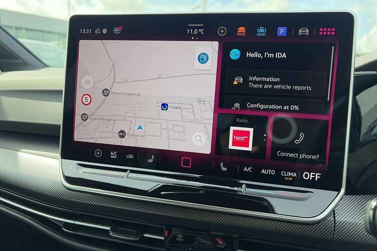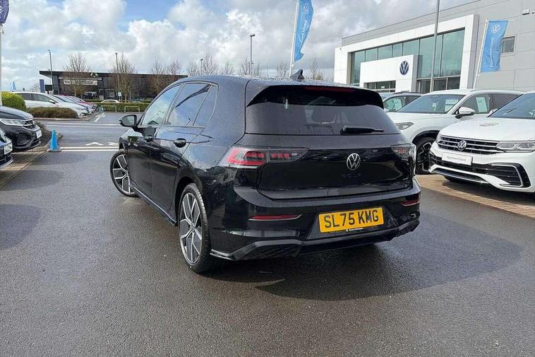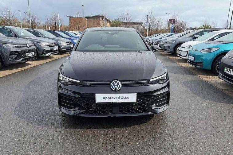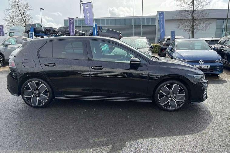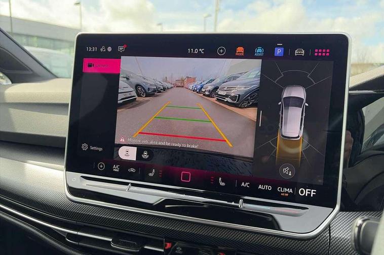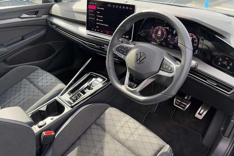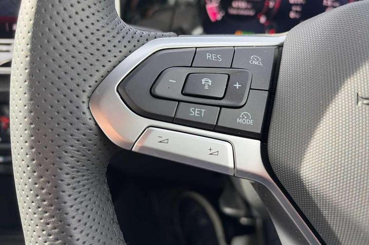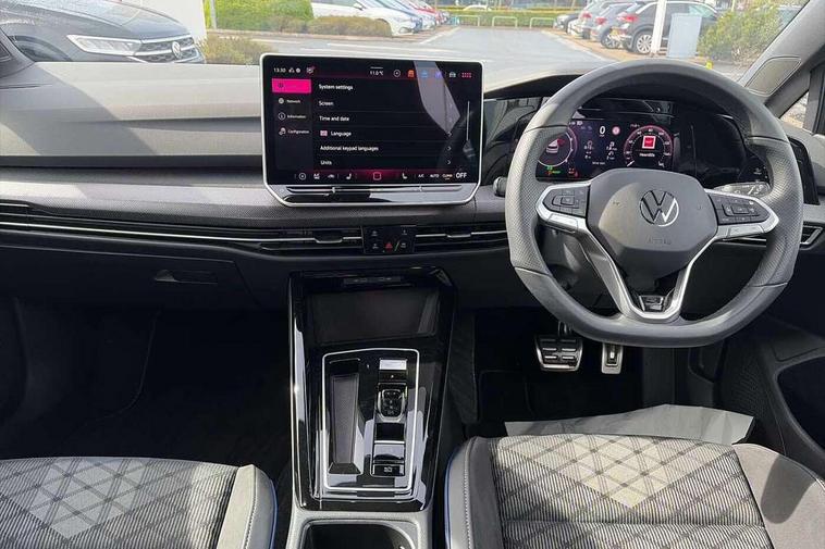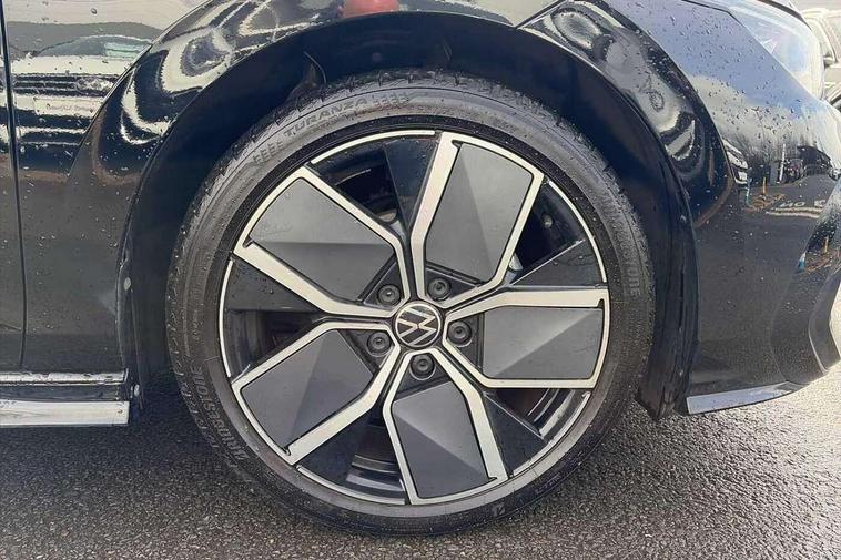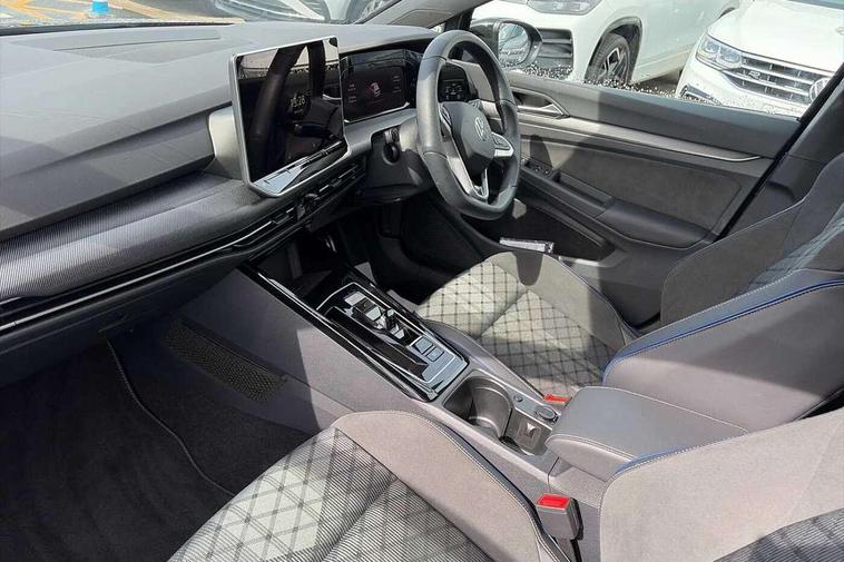 Activated carbon canister, Adaptive cruise control (ACC), Advanced driver attention and drowsiness monitor, Dynamic road sign display, Dynamic steering, E-Sim card for online connectivity, eCall emergency call system, Multi-color Digital cockpit pro, selection of different info profile possible, Multifunction front facing camera for distance control, Navigation system, Oncoming vehicle braking when turning including swerve support, Speed limiter, Speedo, rev counter, electronic odometer, trip, service interval display, exterior temperature and fuel gauge, Traffic jam assist, Voice enhancer and voice control, Warning signal and warning light for front and rear seatbelts not fastened, We connect plus preparation, We connect preparation, Wireless app connect, Hybrid propulsion system, Petrol Particulate Filter, Start-stop system with battery regeneration (recuperation - energy recovery during braking), XDS electronic differential lock for improved traction and handling, 2 USB C ports in front, 2 USB charging sockets on the centre console in the rear charging capacity upto 45W, Digital radio reception (DAB), Diversity antenna for FM reception, Gaming platform via car app, Infotainment system with 12.9" display, Mobile phone interface with inductive charging feature, 3rd brake light, Auto dimming rear view mirror, Automatic headlamp activation with Coming home and Leaving home feature, Body colored bumpers in R-Line style, Body colour door handles, Exterior ambient lighting, Exterior mirrors convex on the left and aspherical on the right, Front and rear electric windows, Heat insulating windshield made of laminated glass, LED separate daytime running light, Rain sensor, Rear exhaust tailpipe, Rear fog light on one side and reversing lights on both sides, Rear side wing doors, Rear windscreen washer and wiper with interval delay, Remote electrically foldable door mirrors, puddle lights and reverse activated passenger's door mirror, Volkswagen logo in front, illuminated lighting animation with wake up/goodbye scenario and illuminated door handles, Welcome light with surround lighting, 12V socket in front centre console, 12V socket in luggage compartment, 3 rear head restraints, 3 seat bench in 2nd row, Ambient lighting with 30 colour including LED light unit in front footwell with selectable light colour, Black roof lining, Brushed stainless steel pedals, Chrome plated radiator grille inserts, air vent surrounds and light switch surrounds, Door insert, side trim panel and arm support in leatherette, Front + rear black carpet mats, Front centre armrest, Front seat lumbar support adjuster, Integrated front head restraints, ISOFIX anchors for child seats on outer rear bench seats and on front passanger seat compatible for i-Size, Luggage compartment lighting, Manual height adjustable front passenger seat, Manually height adjustable driver seat, Plastic gear knob, Premium sports seats in front, Rear cupholder and loadthough, Sardegna cloth upholstery with front and outer rear seats Art Velour inner sides of bolsters, Single front passenger seat, Split folding backrest with centre armrest and unsplit rear seat bench, Sun visors with illuminated vanity mirrors, Titanium black instrument panel, Black exterior Styling package with Matrix LED headlights - Golf, Winter package - Golf DSG Estate/Hatchback, 3 point height adj front seatbelts + pretensioners, 3 rear three point seatbelts, ABS, Autonomous emergency braking front assist with pedestrian and cyclist monitoring, Child locks on rear doors, Driver and front passenger airbag with front passenger airbag deactivation, Electronic parking brake with auto hold, ESC (Electronic Stability Control), Extended pedestrian protection measures, Hill start assist, Rear disc brakes, Two tone horn, Tyre pressure loss indicator, Volkswagen roadside assistance, Anti theft wheel bolts, Preparation for alcohol interlock, Decorative inserts carbon grey for dashboard and front door trim panels, 18" Leeds alloy wheels, Tool kit for tyre mobility set, Tyre mobility kit Includes 12V compressor and tyre sealant,