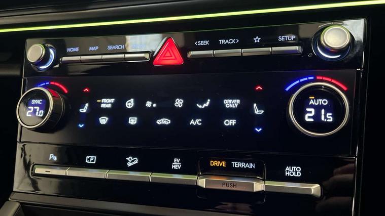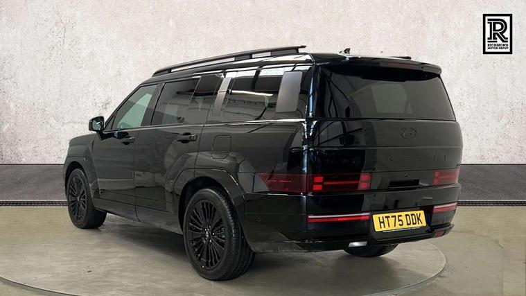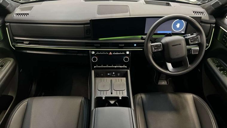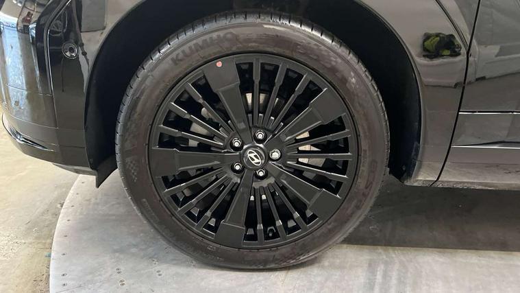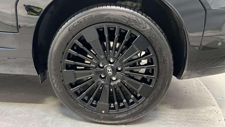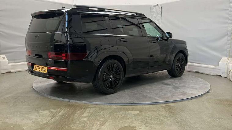 12.3" Drivers supervision instrument cluster with LCD display, 360 degree parking sensors, Blind spot collision avoidance assist (BCA), Blind spot view monitor (BVM), Bluelink and Wireless Apple Carplay/Android Auto, Bluetooth connectivity with voice recognition, Drive mode selector, Driver status monitor (DSM), Dual wireless phone charging pad, Emergency services call system, Forward collision avoidance assist (FCA 2.0), Head up Display, Highway drive assist 2 (HDA 2), Intelligent speed limit assist (ISLA), Lane departure warning system (LDW), Lane Follow Assist 2 (LFA 2), Lane keeping assist (LKA), Low washer fluid warning, Navigation based smart adaptive cruise control with stop and go, Over the air software updates (OTA), Parking Collision Avoidance Assist-Reverse (PCA-R), Power assisted steering, Remote smart parking assist, Safe exist assist (SEA), Smart electric tailgate with hand's free opening function, Surround view monitor, Self levelling suspension, Shift by Wire Gear Selector (SBW), 12.3" Touchscreen display with satellite navigation, 2nd Row USB C Ports x2 Charging, 3rd Row USB C Ports x2 Charging, Front USB C port 1 charging and 1 data/charging, Premium BOSE sound system with 12 speakers and subwoofer, Steering wheel audio, phone and cruise controls, Automatic headlights with dusk sensor, Automatic windscreen wipers with rain sensor, Black Styling (Skid plate, Fender upper garnish, Door side garnish, C/D pillars, Rear bumper moulding, DLO), Body colour bumpers, Digital centre mirror, Dynamic welcome lights, Electric adjustable/heated/auto power folding door mirrors, Front and rear electric windows, Heated rear window, Hidden C pillar assist handle, Hidden rear wiper, High beam assist, LED daytime running lights, LED Headlights, LED indicator lights, LED indicators in door mirrors, LED positioning lights, LED taillights, LED third brake light, Manual rear door blinds, Rear side wing doors, Rear windows and tailgate privacy glass, Roof rails, Solar glass windscreen and front windows, Windscreen acoustic film, Windscreen auto defog function, 2nd and 3rd row center armrest with cupholder, 3rd row head restraints, Centre rear head restraint, Driver and front passenger premium relaxation seats, Dual zone climate control air conditioning, Electrically adjustable front seats with 2 way electric lumbar support, Front head restraints, Front seats with memory, Heated front seats, Heated rear seats, Height and reach electrically adjustable steering column, Leather wrapped heated steering wheel, Luggage cover, Luggage hooks, Luggage net, Multi colour LED ambient lighting, Nappa leather upholstery, Rear head restraints, Single front passenger seat, Split folding (50/50) third row seats, Split folding (60/40), sliding and reclining second row seats, Sun Visors with driver and passenger illuminated vanity mirrors, Two front cup holders, UV-C Tray, Ventilated front seats, Trailer wiring pack - Santa Fe, 3 point seatbelts on all seats, Adjustable regenerative braking paddle shifters, Airbag - Front, front side, curtain and centre front airbags, Anti-lock brake system (ABS), Dynamic brake control, Electric parking brake with auto hold function, Electronic Stability Control (ESC), Hill start assist control (HAC), Manual child lock in rear doors, TSA (Trailer Stability Assist), Tyre pressure monitoring system, Immobiliser, Smart Key - Keyless entry with Power On/Off button, Black ink interior decals, 20" Black calligraphy alloy wheels, Tyre mobility kit,