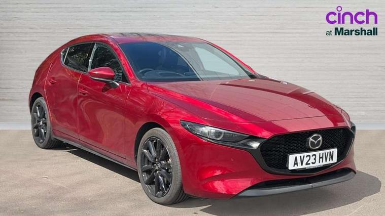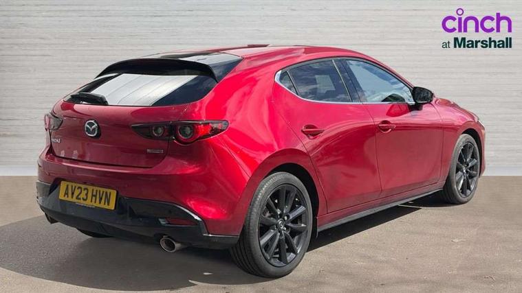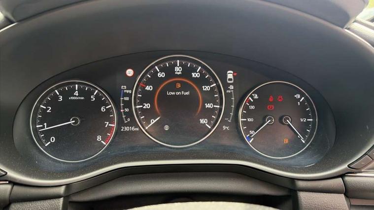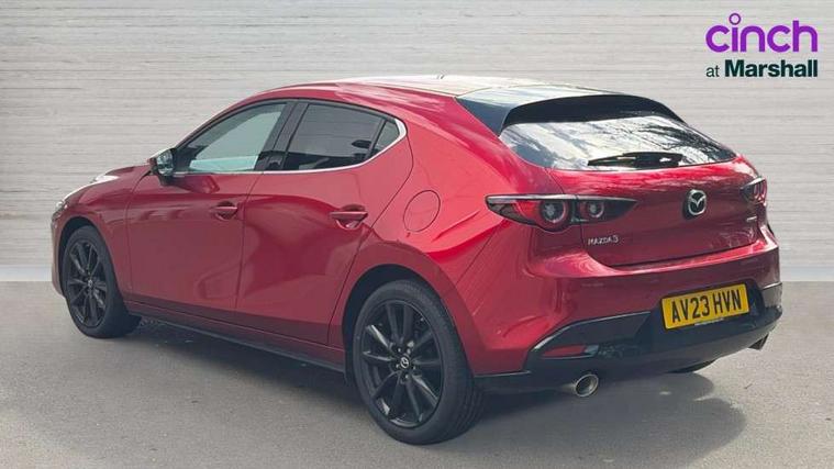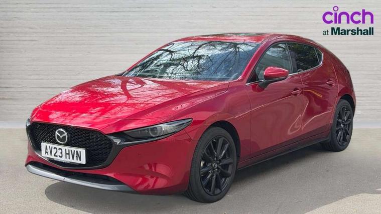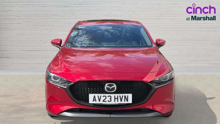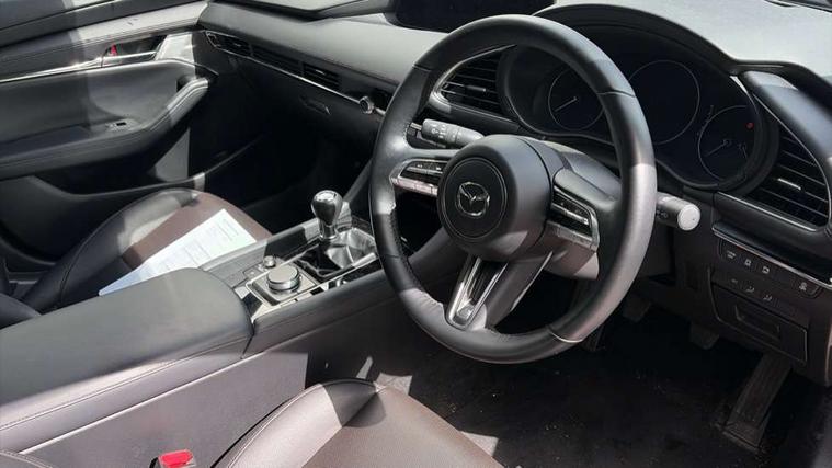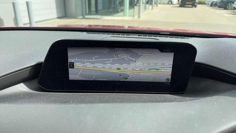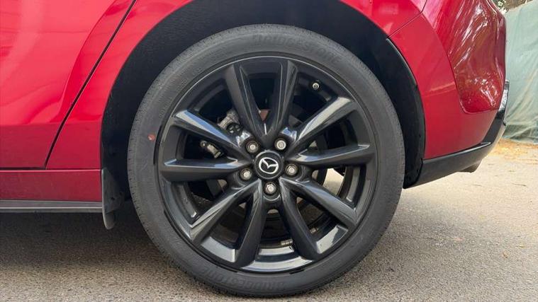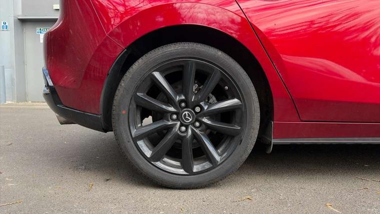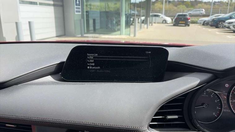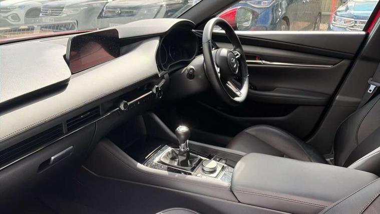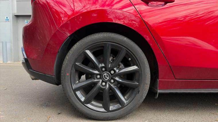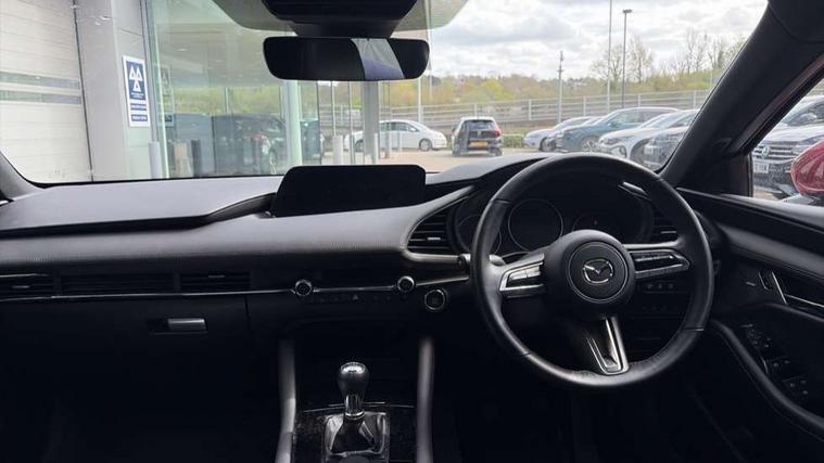 7" colour TFT display, 8.8" Colour centre touch screen display with Mazda Connect infotainment, Apple car play/Android Auto, Audio transfer from bluetooth devices, Blind spot monitoring with rear cross traffic alert, Colour active driving display inc Windscreen projected, Traffic Sign Recognition, turn-by- turn navigation and Mazda Radar Cruise Control information, Digital instrument cluster, Driver attention alert system, E-call with GPS, Emergency stop signalling system, Engine start/stop button, Front and rear parking sensor with audible and visual warning, Head up Display, Integrated bluetooth with steering wheel mounted controls, Intelligent speed assist, Lane keep assist system (LAS) with Lane departure warning system (LDWS), Mazda connected services, Mazda Navigation System with european mapping, Mazda Radar Cruise Control, Mobile App interface, Multimedia Commander, PAS, Reversing camera, Service indicator, Tailgate, Traffic sign recognition (TSR), Trip computer, i-stop, Mazda Multimedia System with AM / FM / DAB radio with 12 Speaker Bose sound system, bose centerpoint, bassmatch+audiopilot technology, Adaptive LED Headlights, Auto dimming driver's door mirrors, B-pillar garnish in piano black, Body coloured, electrically adjustable, heated auto power folding door mirrors with integrated indicators, Coming/leaving home lighting function, Dark metallic finish signature wing, Door mirrors with adjustable memory and tilt-down function when reversing, Dual chrome tailpipes tip, Dusk sensing headlights, Electric front/rear windows with one touch/auto up/down, Frameless auto dimming interior rear view mirror, Front body coloured bumper with black lower bezel, Front kodo turn signal, Gloss black finish front grille, Gloss black rear roof spoiler, LED indicator lights, LED third brake light, Power tilt and slide sunroof, Privacy glass with dark tinting on rear side windows and rear window, Rain sensing front wipers with adjustable sensitivity and speed, Rear colour coded bumper with gloss black lower moulding, Rear fog lights, Rear side wing doors, Signature LED daytime running lights, Signature LED rear combination lights, Speed adjustable rear wash wiper with intermittent wipe, 12v electrical power outlet, 3 seat bench in 2nd row, 60/40 split fold down rear seats, Chrome interior trim accents with steering wheel centre bezel, surround of engine start / stop button and glove box handle, Dark roof headlining, ceiling and pillars, Dark vinyl leather door panel inserts, Driver seat power slide, recline, height and lumbar adjustment with driver door mirror memory, Driver, front passenger and two rear door pockets, Driver, Front passenger and two rear grab handles with coathooks, Driver/passenger sunvisors + vanity mirrors (drivers side with ticket holder), Dual zone climate control air conditioning, Folding rear centre armrest with two cup holders, Front and rear courtesy lamps, Front armrest, Front centre storage with two cupholders, Front head restraints, Front passenger seatback pocket, Front passengers seat manual slide, recline and height adjustment, Gear shift indicator, Heated front seats with 3 stage setting, Heated steering wheel, Illuminated glovebox, Interior colouration dashboard and doorcards in black with dark stitching, ISOFIX child seat anchorage points attached on outer rear seats, Leather upholstery, Leather wrapped gear shift knob, Leather wrapped steering wheel, LED interior light, Luggage compartment light, Power outlet in luggage compartment, Roof mounted sunglasses holder, Single front passenger seat, Three height adjustable rear head restraints, Tilt/height adjustable steering wheel, USB input, 3 point ELR front seatbelts with pretensioners, 3 rear 3 point seatbelts with ELR, Anti-lock braking system (ABS), Drivers knee airbag, DSC - Dynamic Stability Control, Dual stage driver and single stage passenger airbags, EBD - Electronic brakeforce distribution, Electronic parking brake with auto disengage function and auto hold function, Front and rear curtain airbags, Front passenger airbag cut-off switch, Front side airbags, Front smart city brake support, G-Vectoring control plus, Hill launch assist, Intelligent Traction Control system, Manual child lock in rear doors, Mild Hybrid system with regenerative braking, Seatbelt reminder for driver/front passenger and rear seats, Tyre pressure monitoring system (TPMS), Auto door lock when driving, Remote central locking + deadlocks, Smart keyless entry, Thatcham accredited alarm and immobiliser, 18" Black alloy wheels, Emergency tyre repair kit,