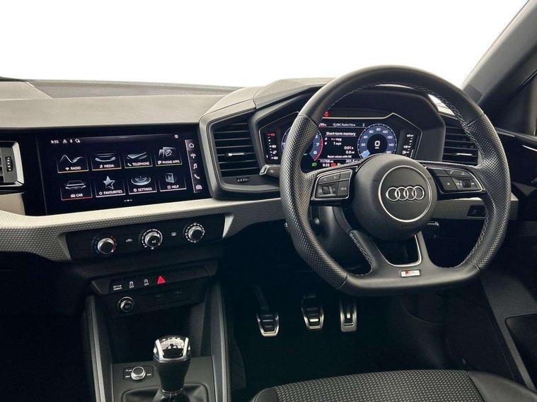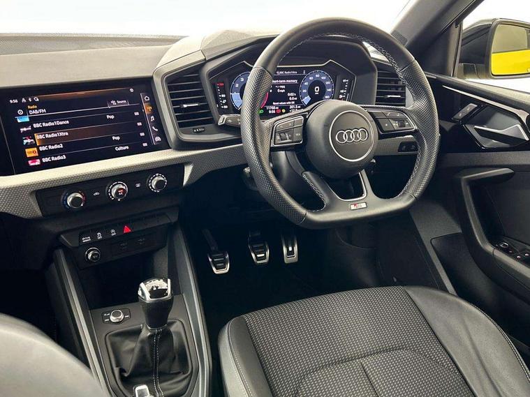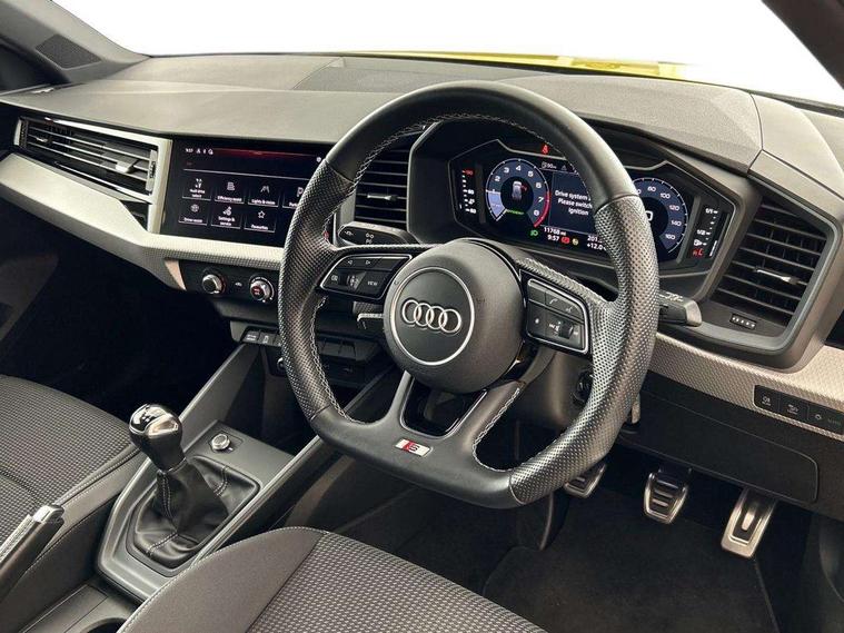 10.25" Digital instrument cluster display classis style instrument dials + speed, odometer, time, outside temperature, telephone menu + fuel level warning, Audi drive select - power steering assistance + engine, Audi smartphone interface with connect compatible smartphone via USB directly MMI display + Nav, music, third party apps controlled via MMI controller, Automatic start/stop system, Bluetooth interface, Cruise control, Driver's information system, Electromechanical power steering, Emergency e-call, Emergency services call system, Lane departure warning system, Service interval indicator, Speed limiter, Voice control system, Washer fluid level indicator, Sports suspension, 1 x SDXC card reader, 2 x USB type C connection points, DAB Digital radio, MMI radio plus with 8.8" colour MMI display screen and MMI touch, Auto dimming rear view mirror, Black door mirrors, Black side skirts, Body coloured bumpers, Door sill trims with aluminium inlays and logo, Electric front and rear windows, Electrically adjustable, heated, folding door mirrors with integrated LED side indicator, Front side air inlets in grained matt black and C frame in anthracite black, Front wing badges, Heat insulating glass windscreen and side windows, Heated rear windscreen, High level LED brake light, LED headlights with LED rear lights + dynamic rear indicators + headlight adjustment and high beam, turning light + LED daytime running lights, Radiator protective grille frame in matt aluminium silver, Rain and light sensors, Rear diffuser strip in matt titanium black, Rear fog lights, Rear side wing doors, Rear wing door, Rear wiper, Side front spoiler lips in grained matt black, 12V socket in centre console with two cup holders, 3 rear seats with headrests, 3 seat bench in 2nd row, 3 spoke flat bottomed multi-function plus leather steering wheel with S badging, grips in preforated leather and contrast stitching, 40:60 Split folding rear seat or folded fully, Black cloth headlining, Driver and passenger seat with manual height adjust with forward and backwards adjustment, Front and rear black floor mats with contrast stitching in fine silver, Front head restraints, Front passenger seat, Height and reach adjustable steering wheel, ISOFIX child seat mounting for front passenger and outer rear seats including top tether attachment point of outer rear seats, Leather gear knob with aluminium trim, Luggage compartment light with front and rear reading lights, Manually adjustable lumbar support in front seats, Stainless steel pedals, Black styling pack - A1 Sportback Black Edition, LED interior lighting pack - A1, Luggage compartment pack - A1, 3x3 point rear seatbelts, Audi pre-sense front with pedestrain and cyclist recognition, Brake assist function, Driver and front passenger airbag with front side and head airbags, Electronic Stability Control including ABS, EBD, ASR and EDL, Front passenger airbag deactivation switch, Hill hold assist, Manual rear child locks, Seatbelt height adjustment for front seats, Seatbelt monitoring, Tyre pressure warning light, Warning triangle and first aid kit, Anti theft alarm, Anti theft wheel bolts and loose wheel warning, Immobiliser, Remote central locking with 2 foldaway keys, Aluminium trim for control switches, air vents and digital instrument cluster, Silver grey inlays polygon structure in diamond paint finish, Structured grey accent areas including air vents, door handle recesses and centre console in quartz paint finish, 18" 7 spoke rotor design alloy wheels in gloss anthracite black, diamond cut finish,