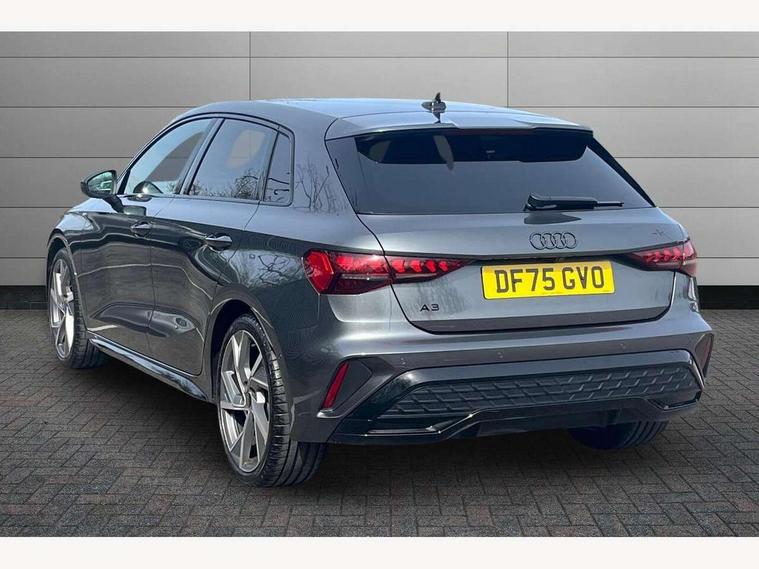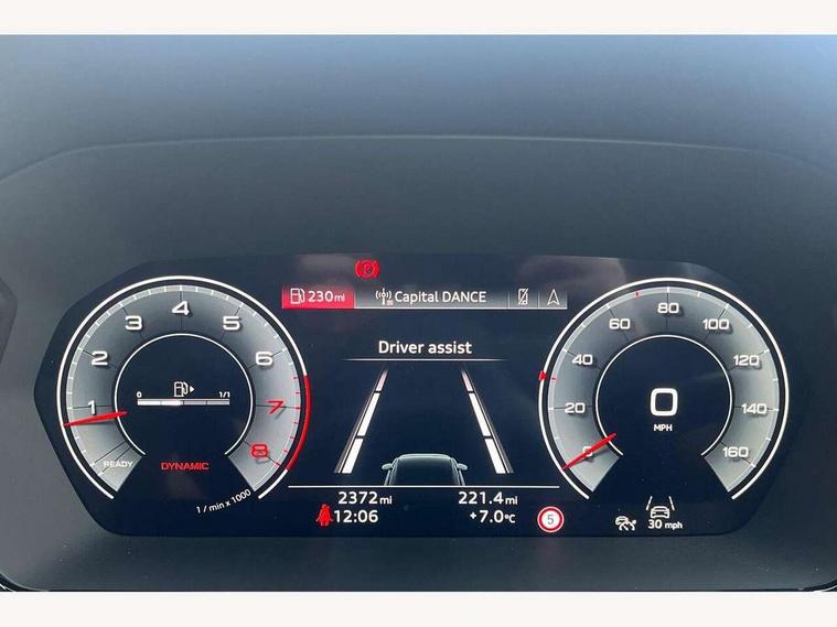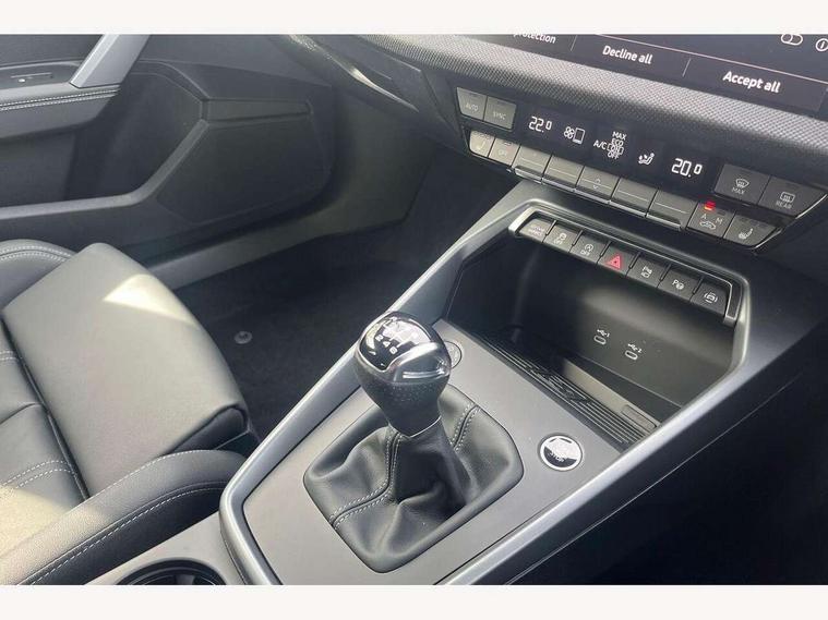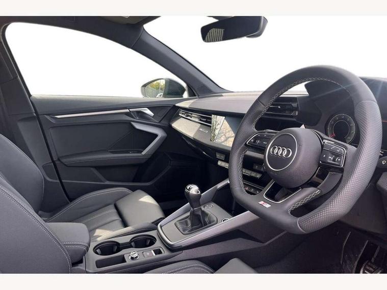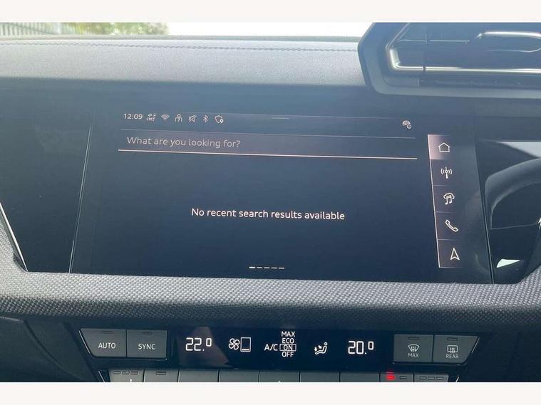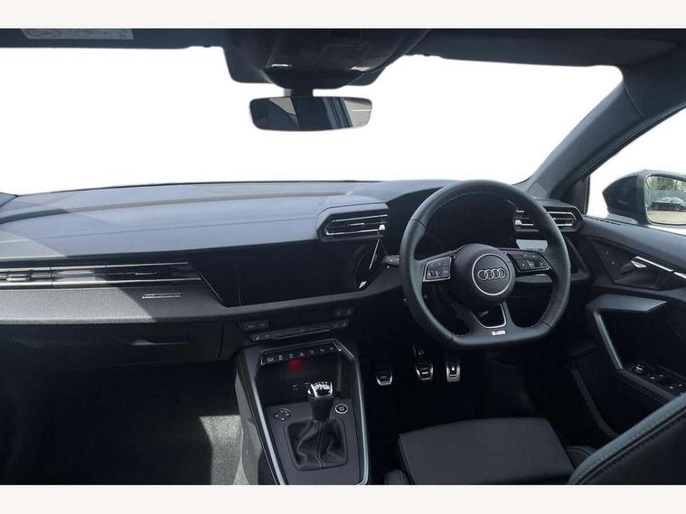 Adaptive cruise control (ACC), Adjustable speed limiter, Audi drive select (Auto, Comfort, Dynamic, Efficiency and Individual), Audi virtual cockpit plus - 12.3" full HD resolution dynamic digital instrument cluster, Automatic start/stop system with recuperation, Bluetooth interface, Camera based traffic sign recognition, Collision avoidance assistant, Driver attention and fatigue detection, e-Call (emergency call), Electromechanical power speed sensitive steering, Intersection assist, Lane departure warning system, MMI Navigation Plus with high resolution 10.1" colour touch screen display, Park Assist with parking system Plus, Reversing camera, Service indicator, Smartphone interface with app store includes wireless Apple carplay, Android auto and Amazon alexa integration, Trip computer, Voice control system with natural language interaction, Sports suspension, Audi Phonebox light with wireless charging, Audi sound system - 10 loudspeakers including centre loudspeaker and subwoofer, DAB Digital radio, USB ports with charging function in the rear, Acoustic glass windscreen, All weather light, Anthracite grey Audi rings (front and rear), Audi beam uses LEDs to project the Audi logo onto the ground as you exit your A3, Auto dimming frameless rear view mirror, Automatic dynamic range control, Black accents front and rear bumpers, Black accents in the area of the Audi single frame grille, Black accents window trims strips, Dipped beam, main beam, position light and turning light, Electrically adjustable/heated/folding/auto dimming door mirrors with integrated LED indications + kerb view function for passenger side, Exterior model badging, Front and rear side air inlets in grained matt black with dark liquid chrome frame, Front electric windows, Front radiator grill in high gloss dark chrome, Heat insulating glass windscreen, Illuminated door sills with aluminium inserts at the front with S logo, Intersection light, Invisible tailpipe, LED 3rd brake light, LED brake lights, LED daytime running x3, LED headlights with LED rear lights and dynamic rear indicators, LED rear number plate lights, LED reverse light, LED tail lights, Light and rain sensors, Manoeuvring light, Motorway light, Privacy glass - dark tinted rear window, rear door and side windows, Rear diffuser and grill in grained matt black with inlay in dark liquid chrome, Rear electric windows, Rear side wing doors, Rear wiper, S roof spoiler, Side sill trim in dark liquid chrome, Static cornering light, 12V socket and storage compartment in front centre console, 3 seat bench in 2nd row, 3 spoke flat bottomed multi-function leather sport steering wheel, 3-zone deluxe automatic air conditioning, 4 way electrically adjustable lumbar support for driver and front passenger, 40/20/40 split folding rear seat bench, Black cloth headlining, Black front and rear floor mats, Front and rear centre armrest in artificial leather with contrasting stitching on armrests and instrument panel, Front and rear headrests, Heated front seats, Height and reach adjustable steering wheel, i-Size child seat mounting on the front passenger side and outer rear seats, i-Size and top tether on the outer rear seats, Manual boot compartment lid, Manually adjustable front seats, Rear centre armrest with cupholder, S badging on the steering wheel, Seat side bolsters, Single front passenger seat, Stainless steel pedals and front footrest in black, Twin leather upholstery with front sports seats S embossed logo, Aluminium interior elements pack - A3, 3x3 point rear seat belts, Driver and front passenger airbag with passenger airbag deactivation, Electronic Stabilisation Control (ESC) including ABS, ASR and EDL, First aid kit with warning triangle and 2 safety vests, Front side airbags with head airbags and interaction airbag, Hill hold assist, Pre-sense front with pedestrian and cyclist detection, Seatbelt monitoring, Tyre pressure loss indicator, Anti theft alarm, Anti-theft wheel bolts, Electronically operated child locks, Immobiliser, Black dashboard,